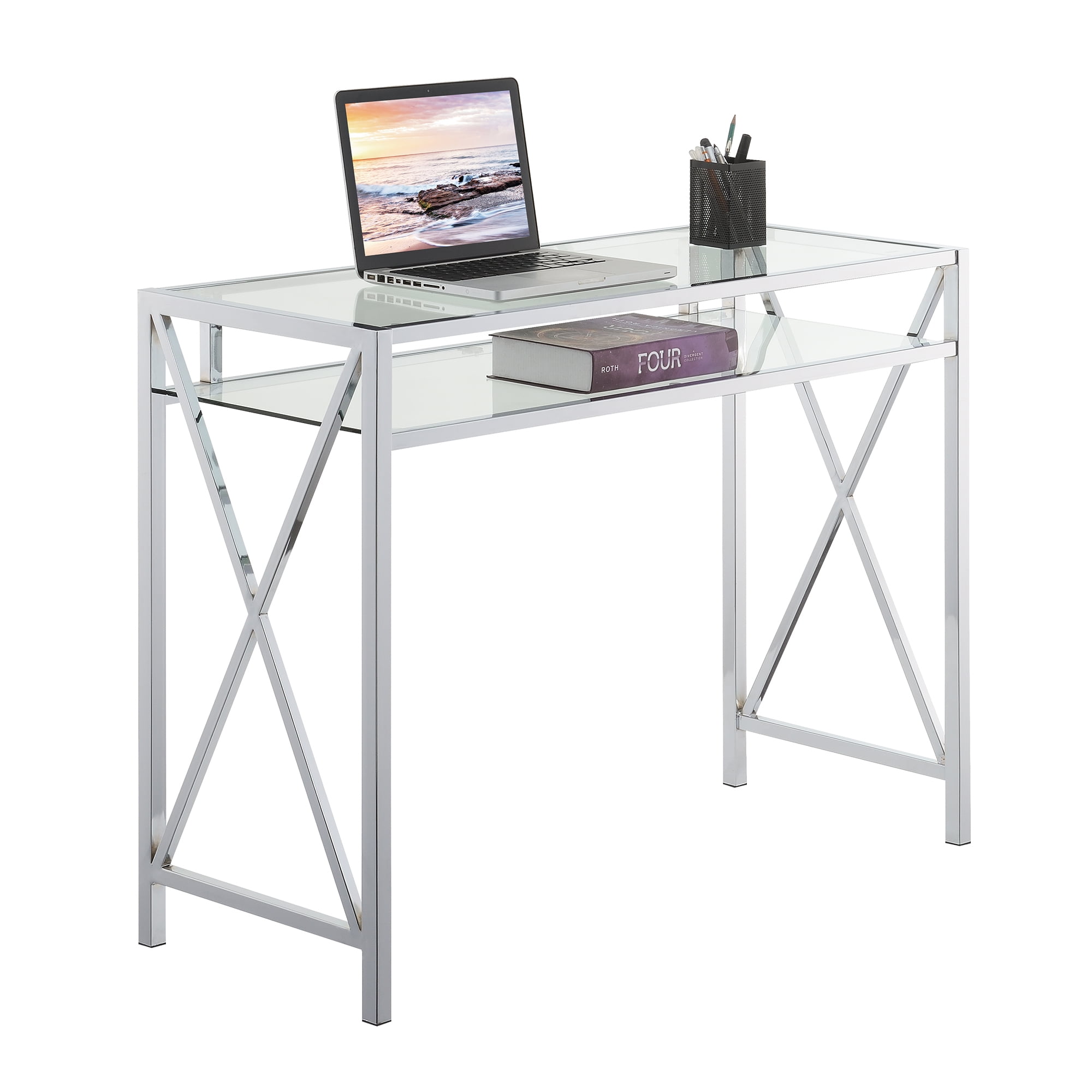 Convenience Concepts Oxford Chrome 42-inch Desk with Shelf, Glass/Chrome, All Ages