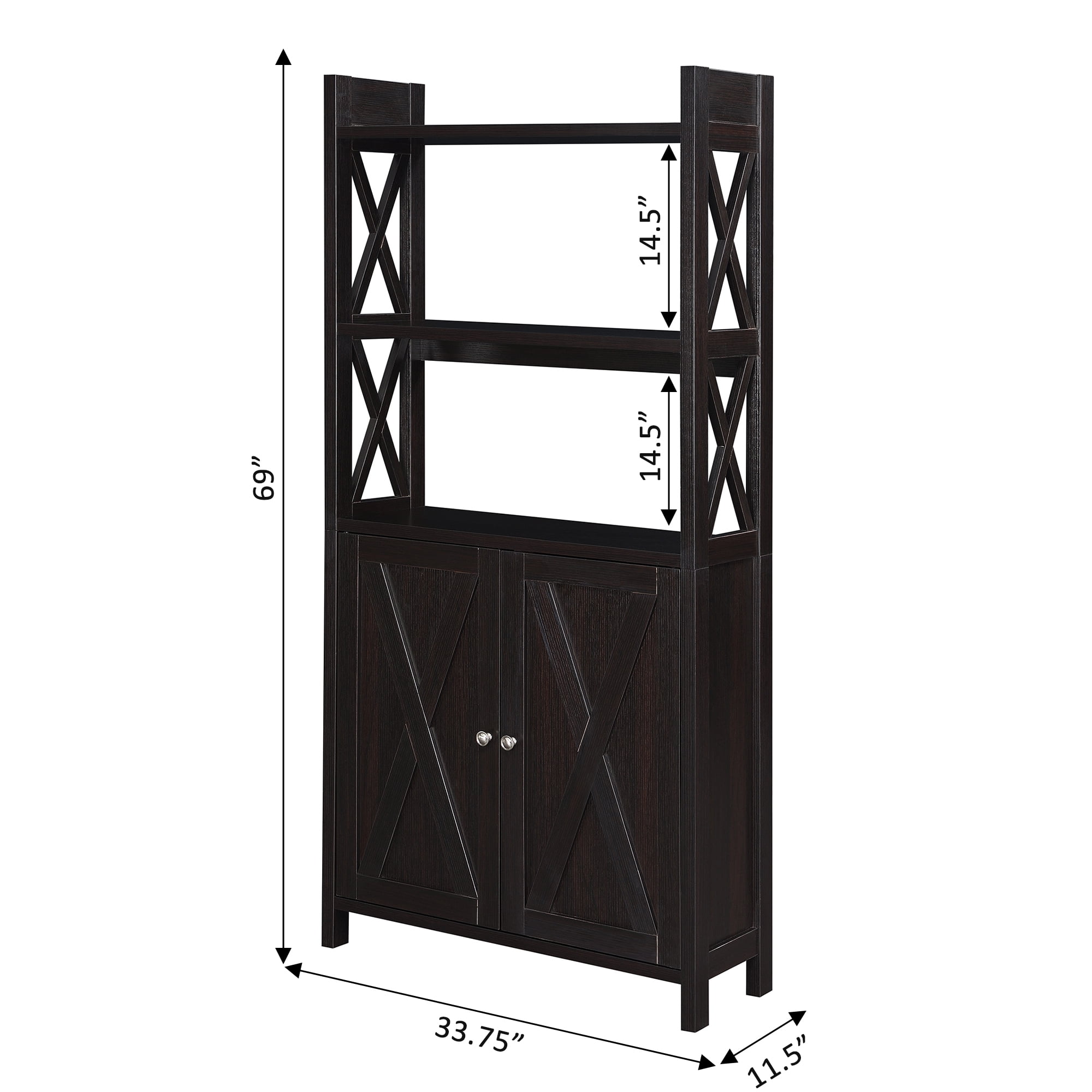 Convenience Concepts Oxford Kitchen Dining Storage Cabinet with Shelves, Espresso