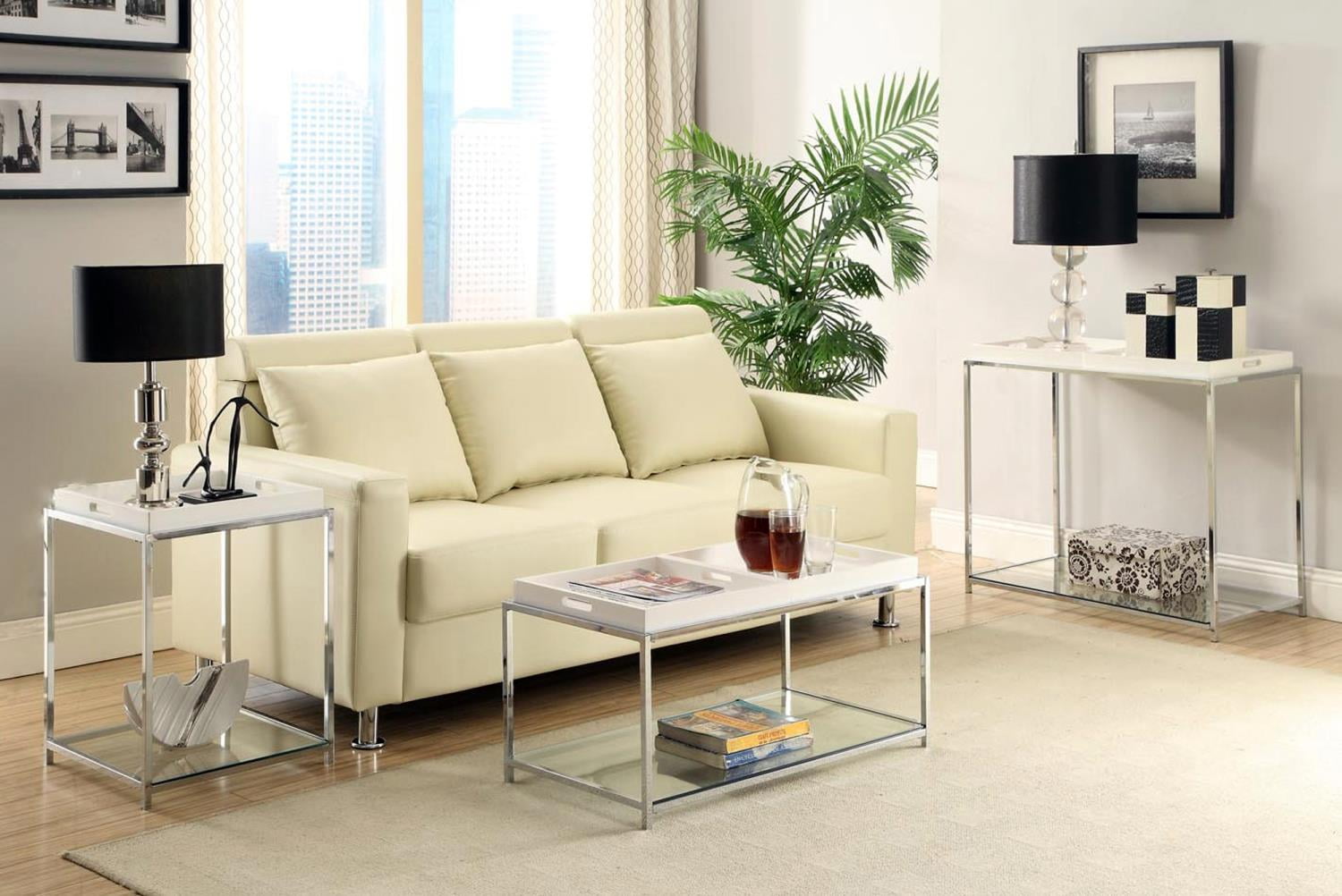 Convenience Concepts Palm Beach Clear Glass End Table With White Tray