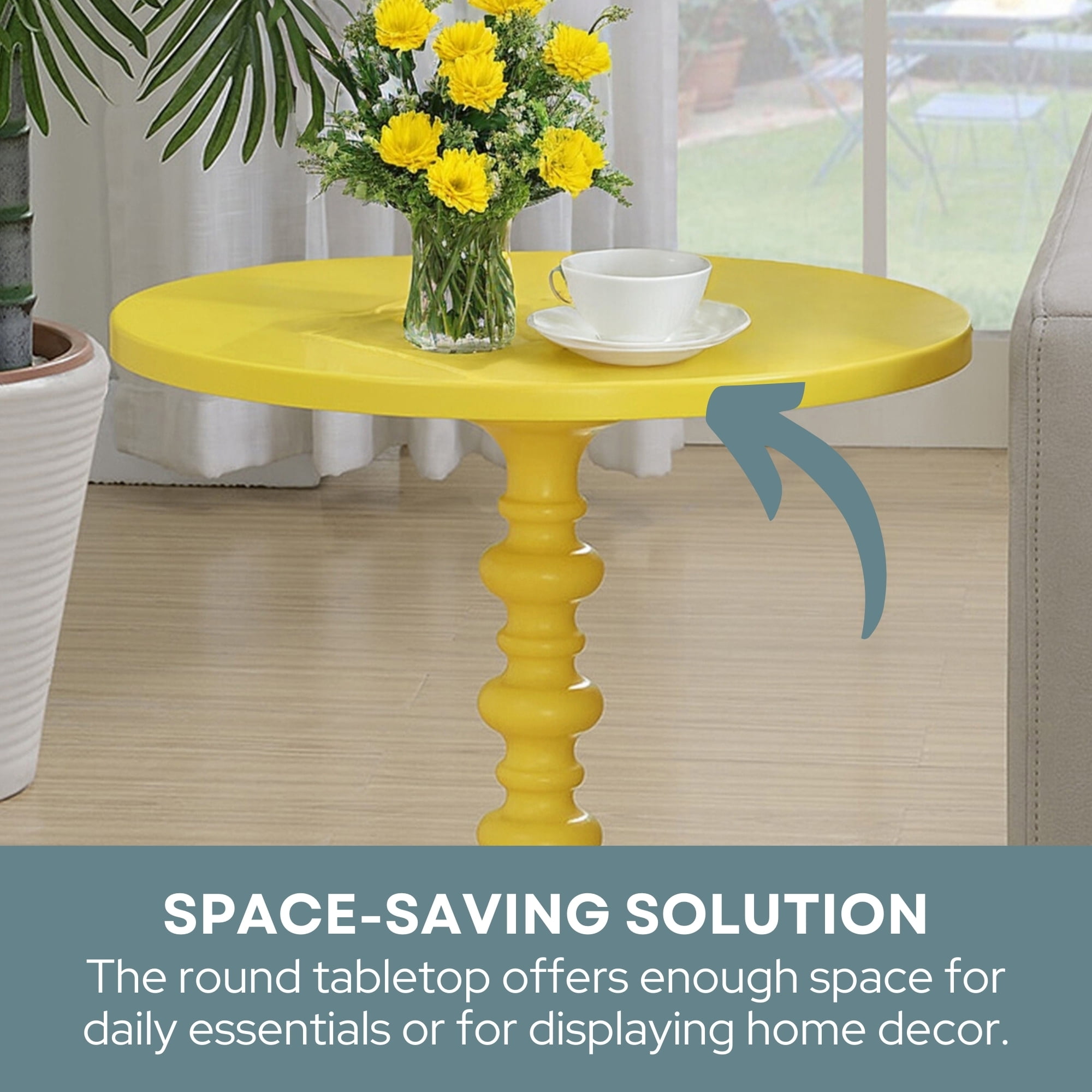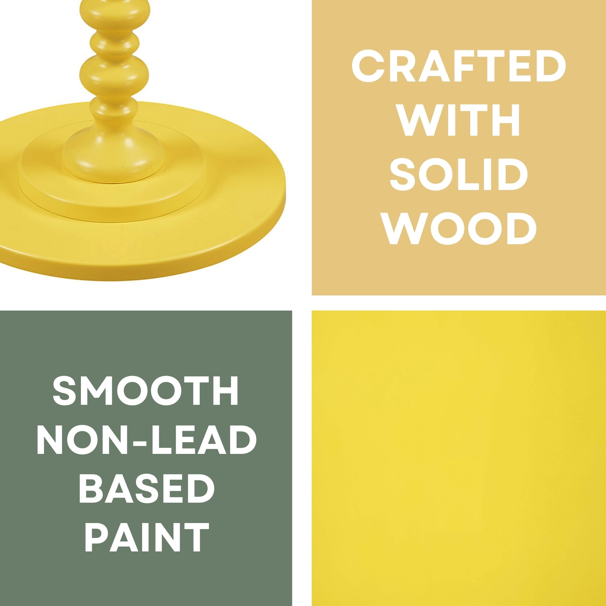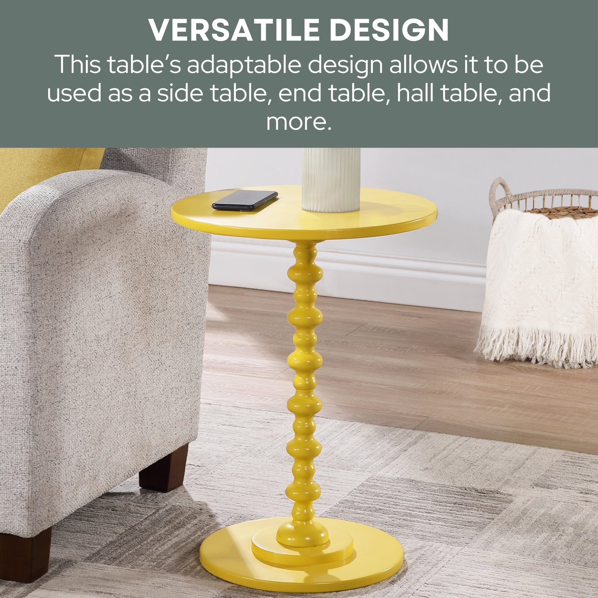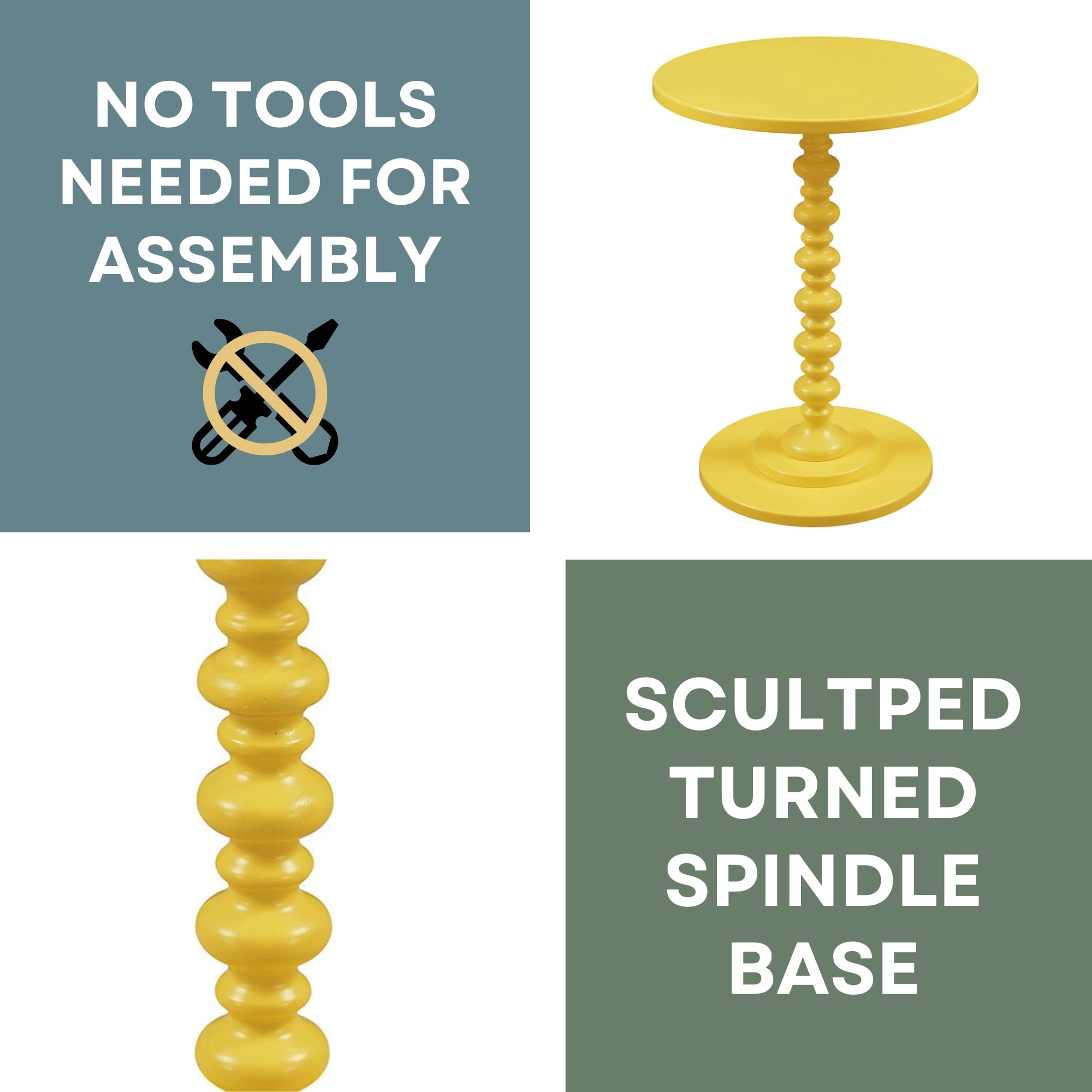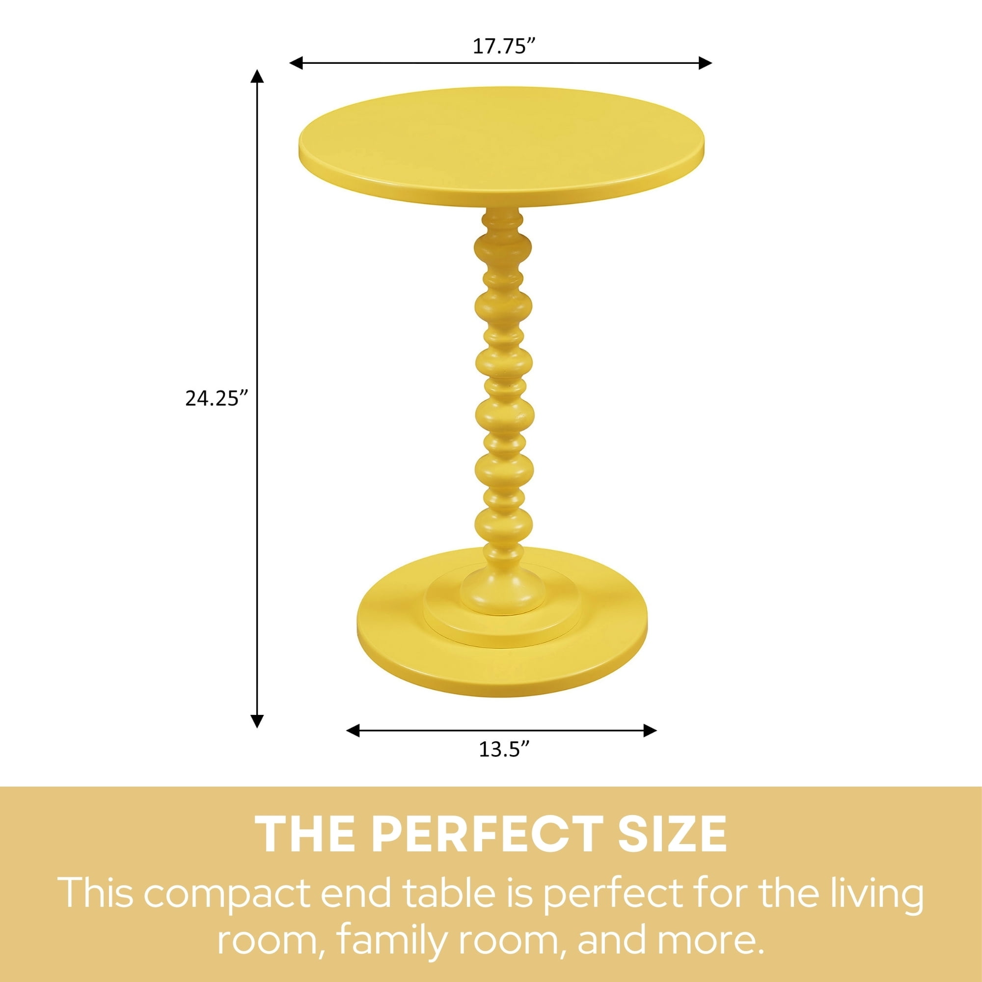 Part of Palm Beach Collection Scultped Turned Spindle Base & Round Tabletop Easy Assembly With No Tools Required Crafted from Solid and Manufactured Wood, Finished with Smooth Non-Lead-Based Paint (W) 17.75 in. x (D) 17.75 in. x (H) 24 in. Color May Vary Slightly Due to Photography Lighting or Monitors Display