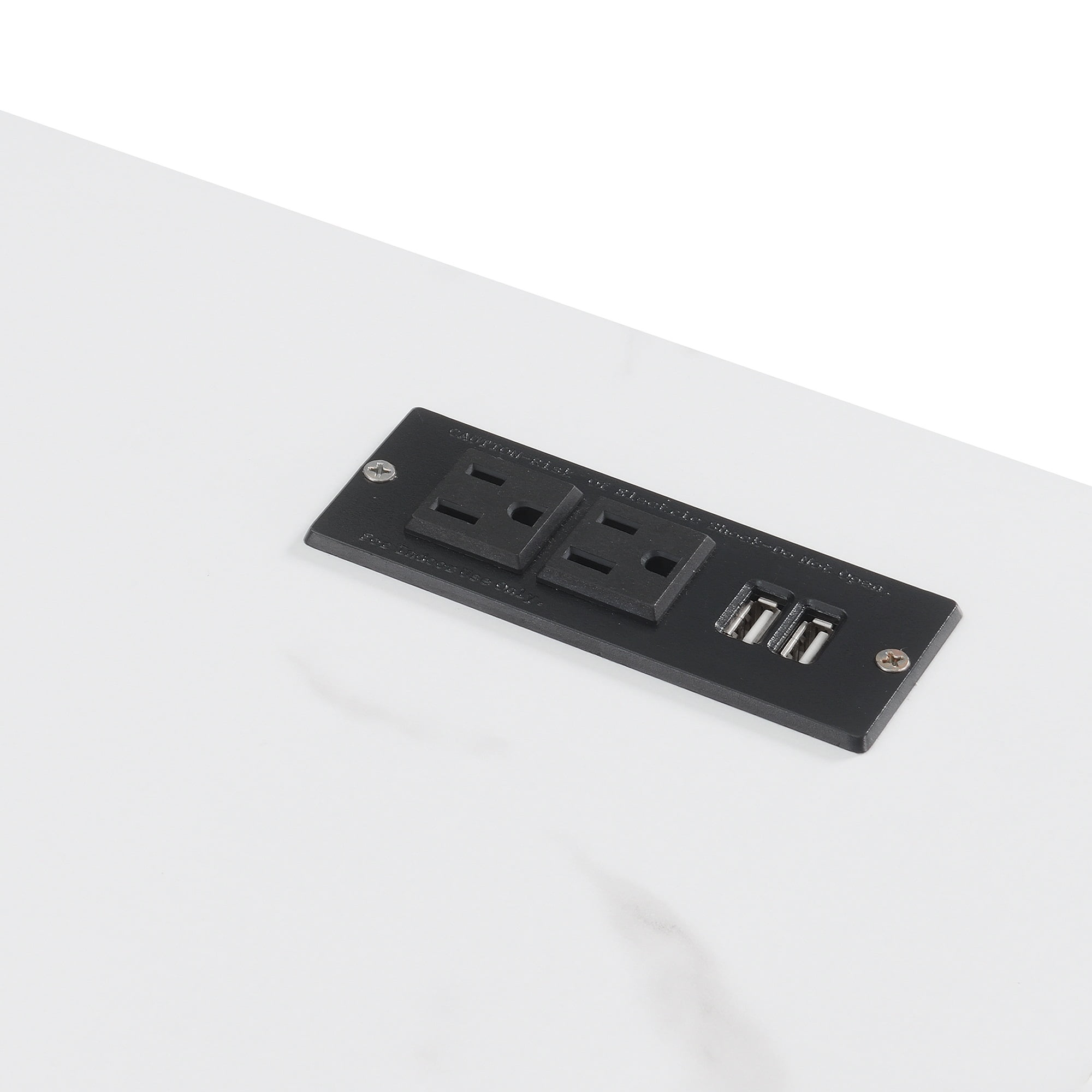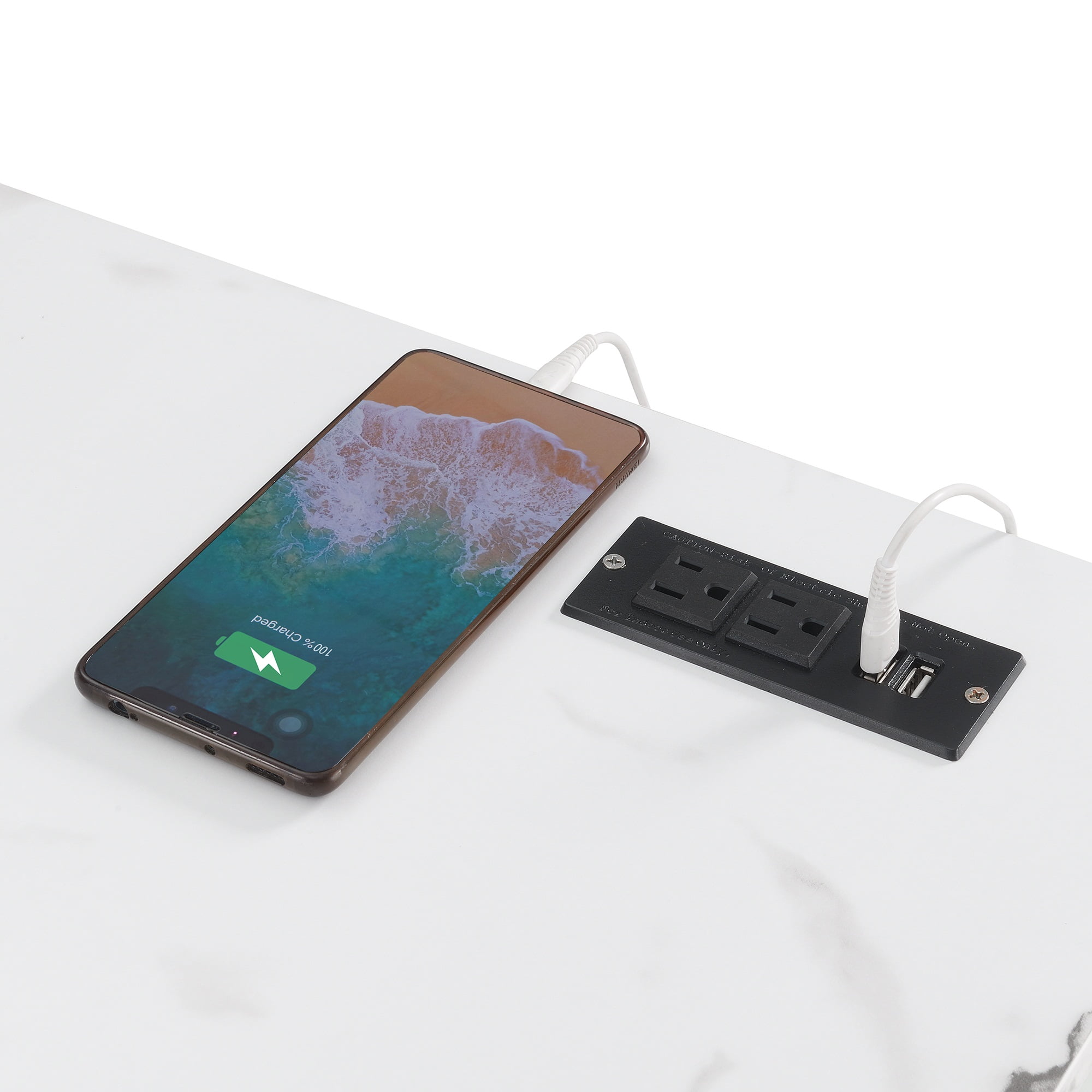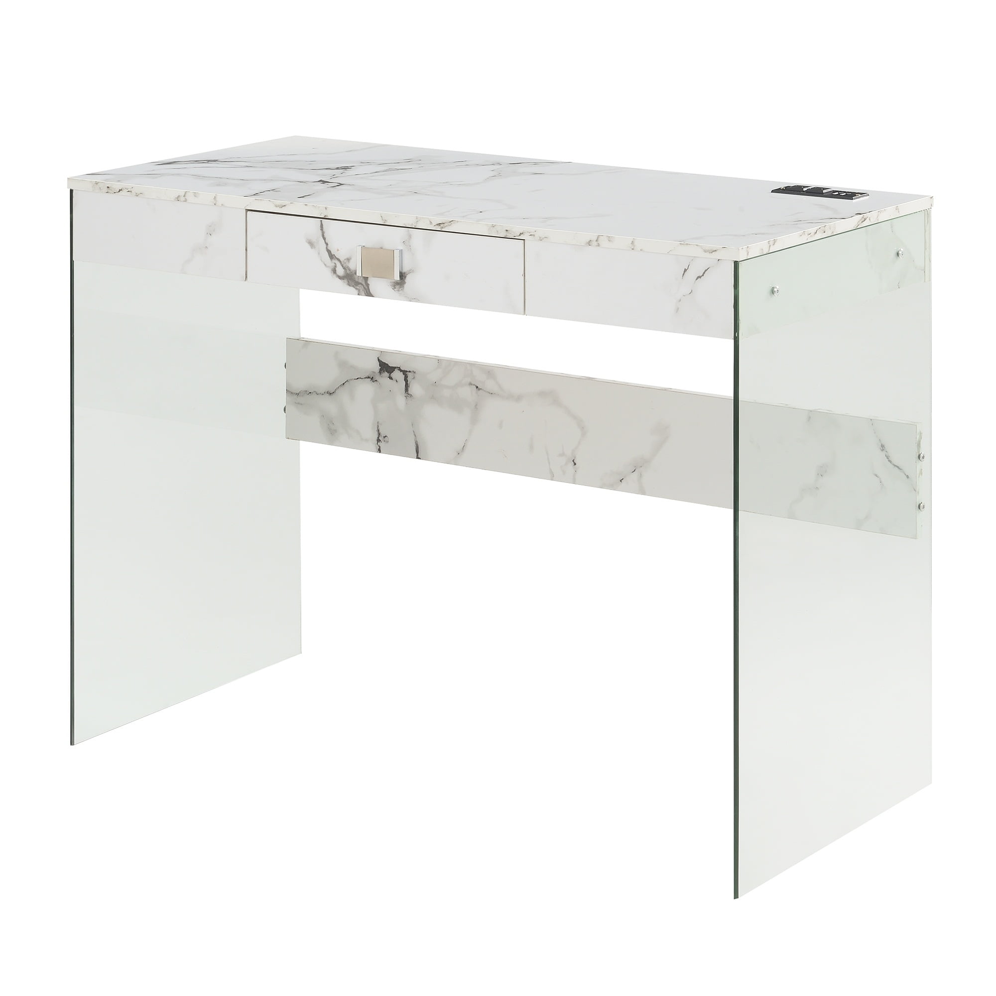 Convenience Concepts SoHo 30″H 42″ W Glass Desk with Charging Station, White Faux Marble/Glass