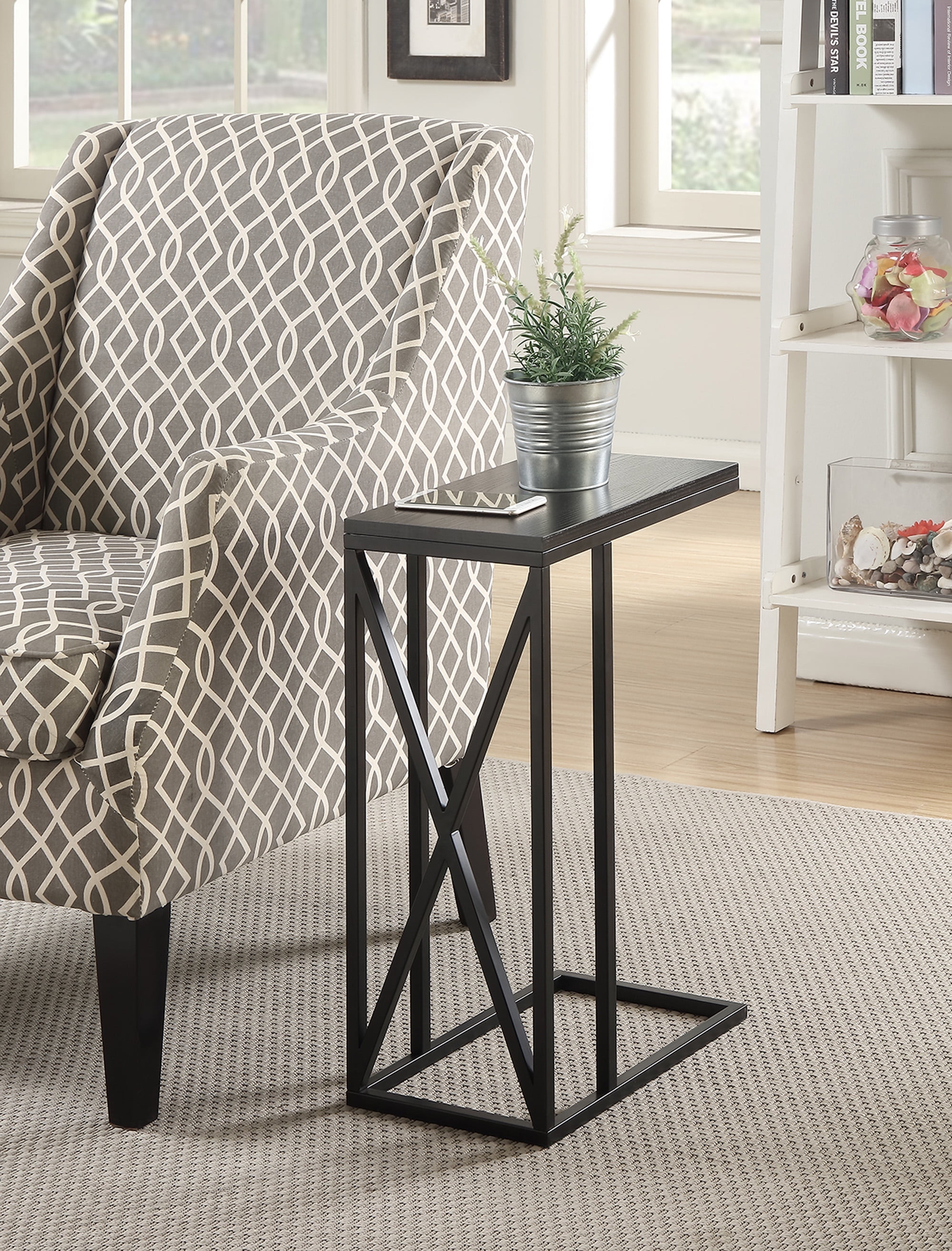 Convenience Concepts Tucson C End Table, Black Features: Part of the Tucson Collection by Convenience Concepts Modern style Available in multiple finishes Brings style and functionality to your home Has much versatility and can be used as an end table, chairside table or tray table Accessible and easy to move Crafted from particleboard and powder-coated metal Low maintenance, easy to clean, and built for durability Easy assembly with instructions provided Assembled product dimensions: (L) 15.75 in. X (W) 10 in. X (H) 24.25 in.