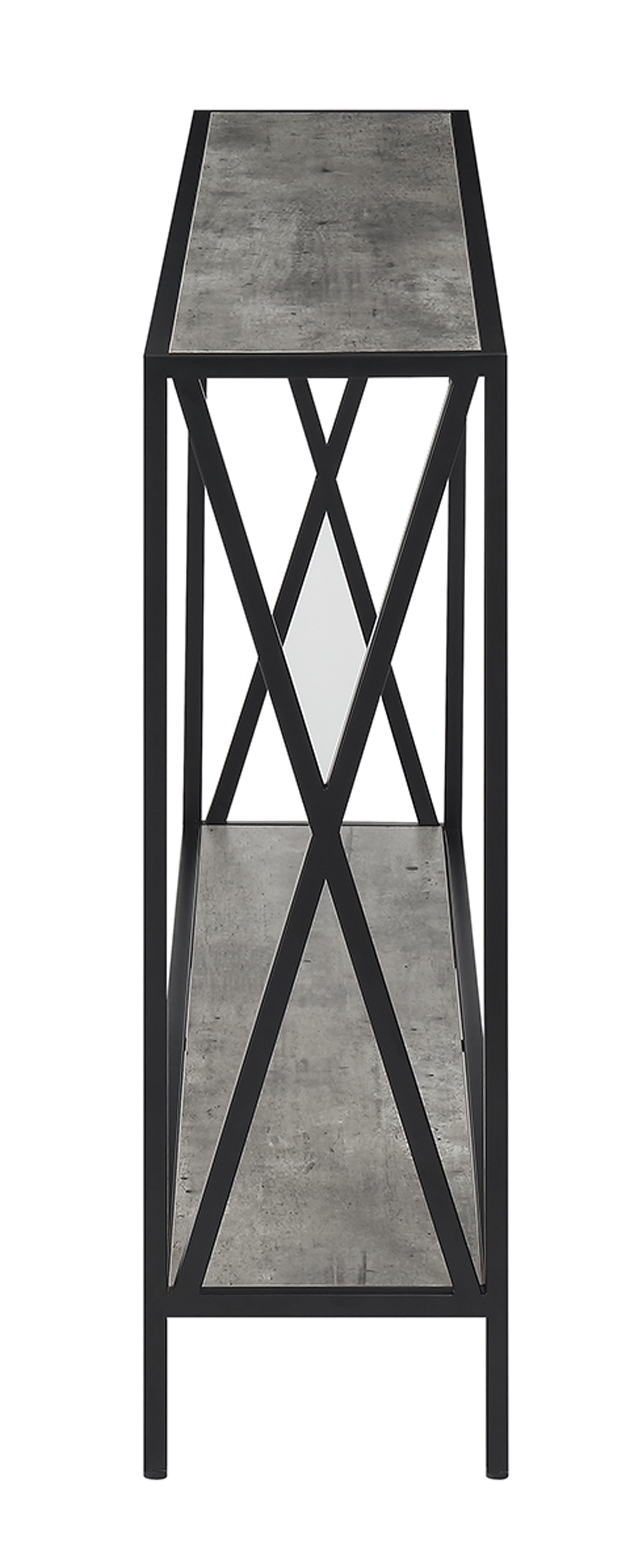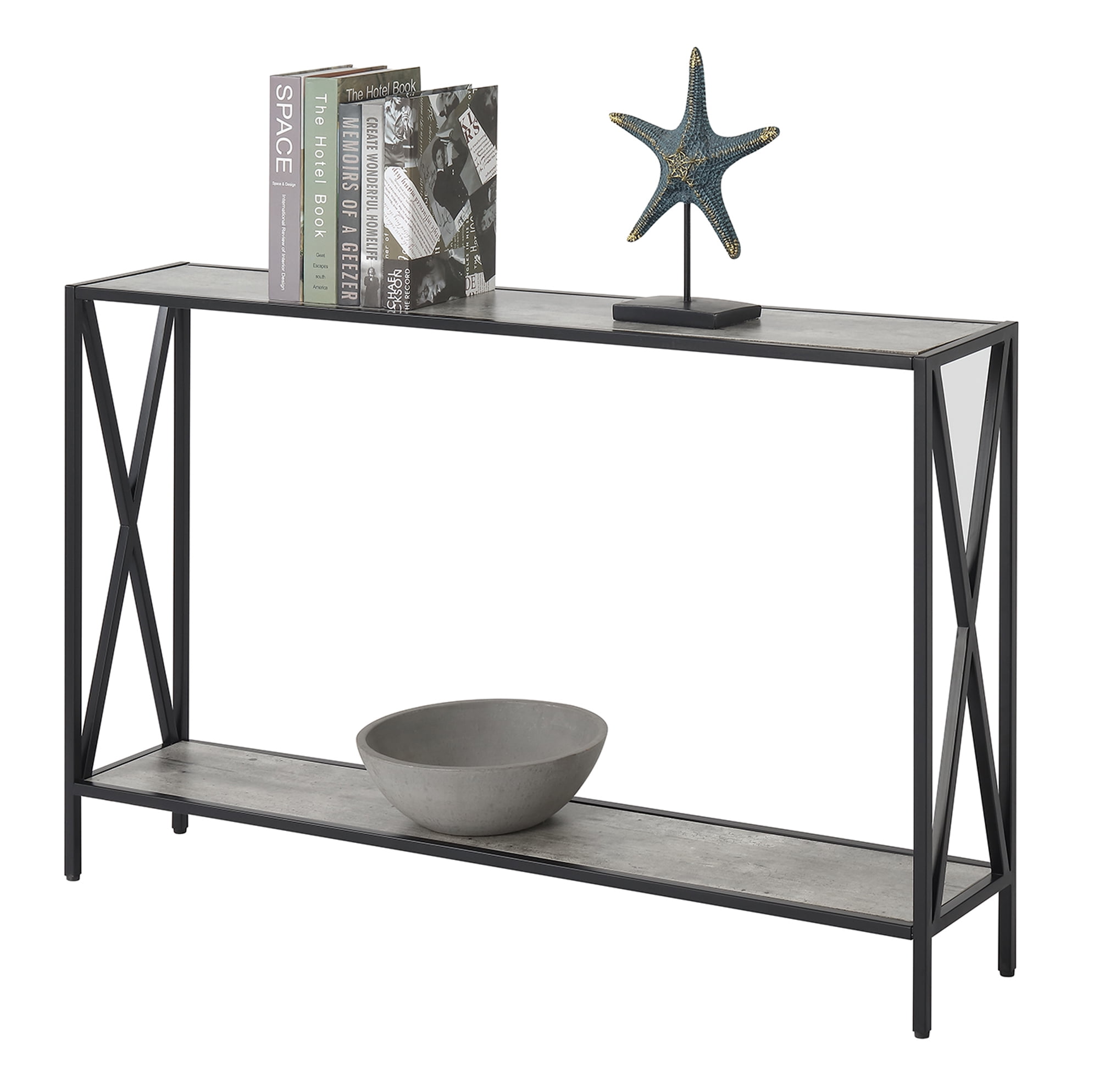 Convenience Concepts Tucson Console Table with Shelf, Faux Birch/Black Features: Part of the Tucson Collection by Convenience Concepts Modern Style Bottom Shelf for Additional Storage Crafted of Particleboard; Melamine; & Powder-Coated Metal Assembled Item Dimensions: (L) 47.25 in. x (W) 9 in. x (H) 29 in. Color May Vary Slightly Due to Photography Lighting or Monitors Display