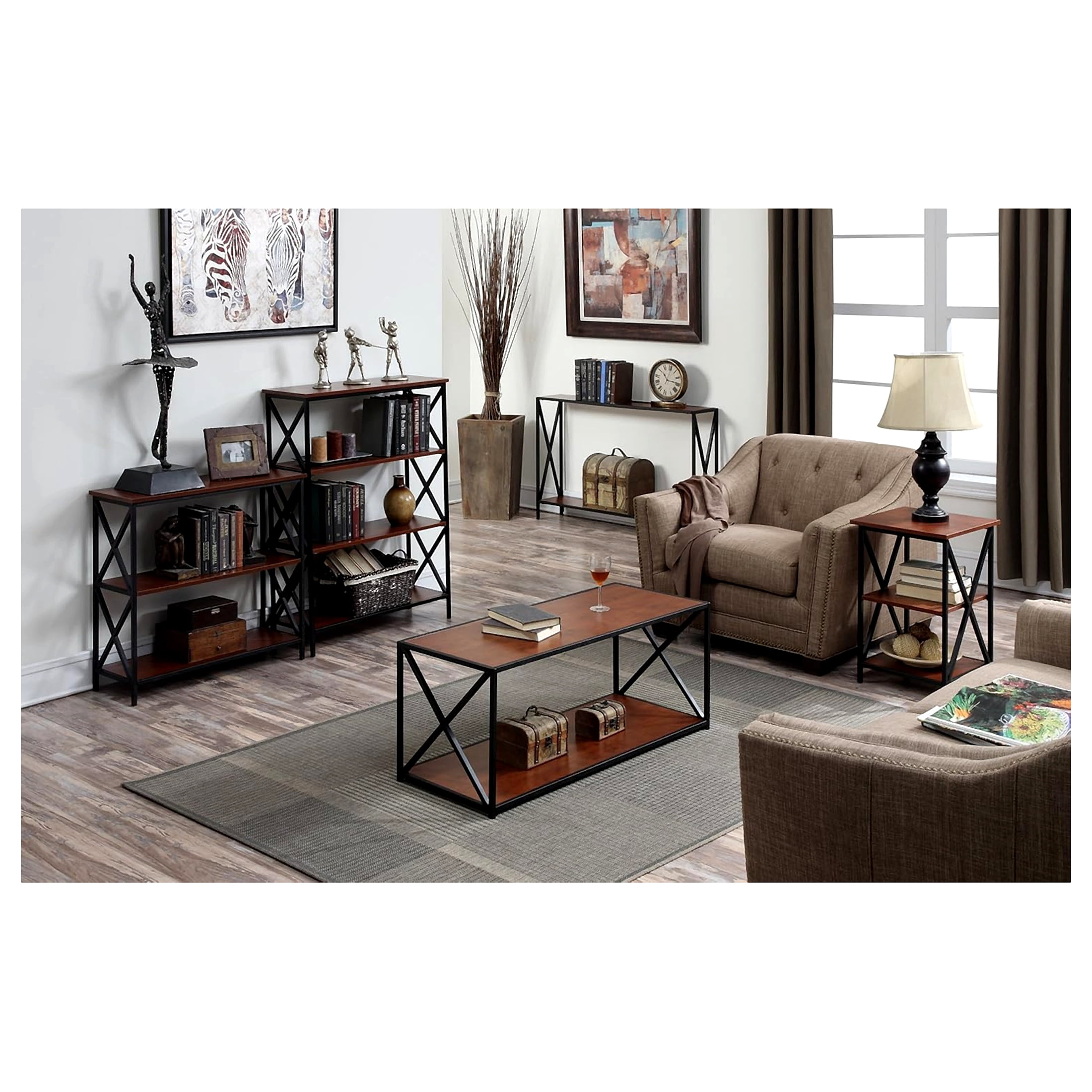 Able to display your favorite books with style, the Tucson Metal Five-Tier Corner Bookcase by Convenience Concepts offers a sleek, contemporary design to upgrade your home décor. With five tiers made of particle board and finished with a rich melamine paper, this bookshelf was made with easy maintenance and durability in mind. Its “X” signature frame design is crafted from powder coated metal and ensures enough support for all your books and collectibles. Place in your living room, home study or den and watch its endless versatility in action. This stylish etagere is available in multiple finishes. Enjoy right after delivery with its easy four-step assembly. Pair this storage unit with additional pieces from the Tucson Collection by Convenience Concepts. Each sold separately. Features: Part of the Tucson Collection by Convenience Concepts Boasts a sleek contemporary style for your home Particle board/Melamine paper/Powder coated metal Beautiful cherry wood finish Sturdy black metal frame (W) 13″ x (L) 13″ x (H) 53.5″ Specifications: Product Dimensions: (W) 13″ x (L) 13″ x (H) 53.5″ Product Weight: 30