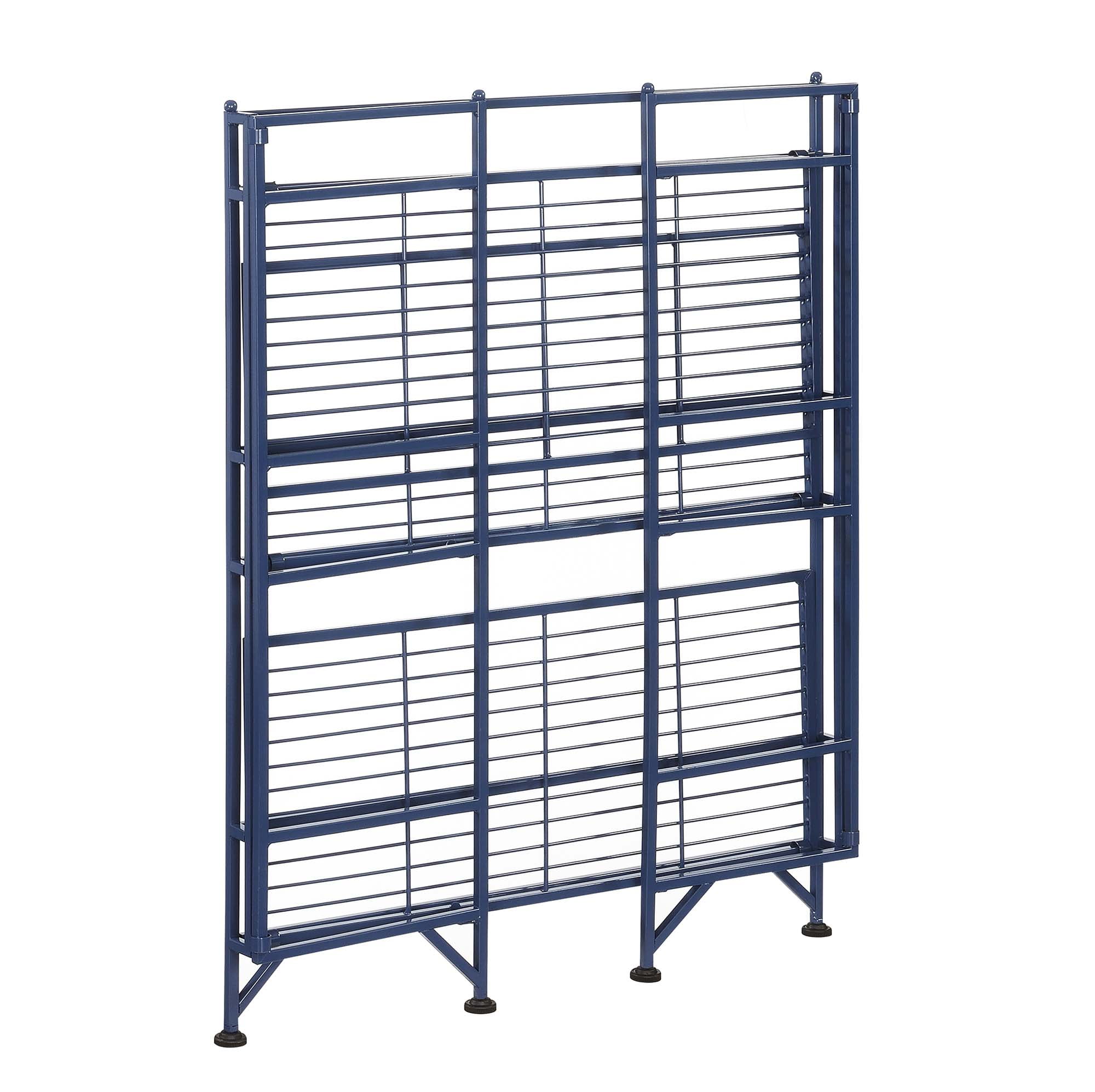 Convenience Concepts Xtra Storage 3 Tier Wide Folding Metal Shelf, Cobalt Blue