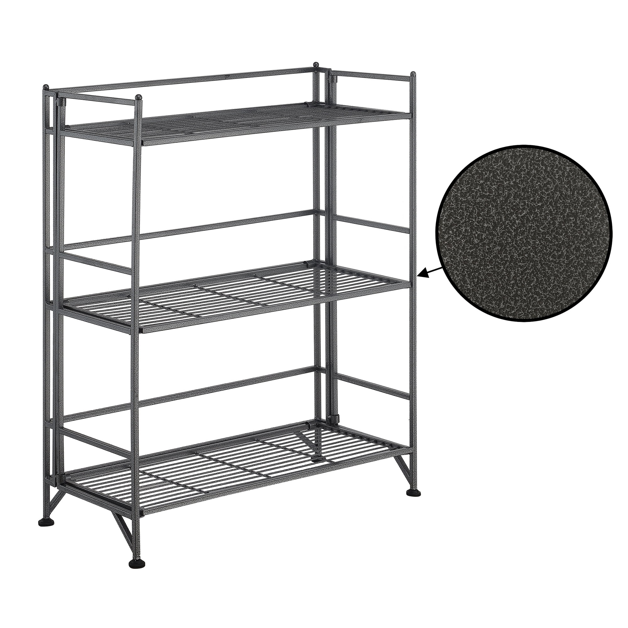 Convenience Concepts Xtra Storage 3 Tier Wide Folding Metal Shelf, Speckled Gray