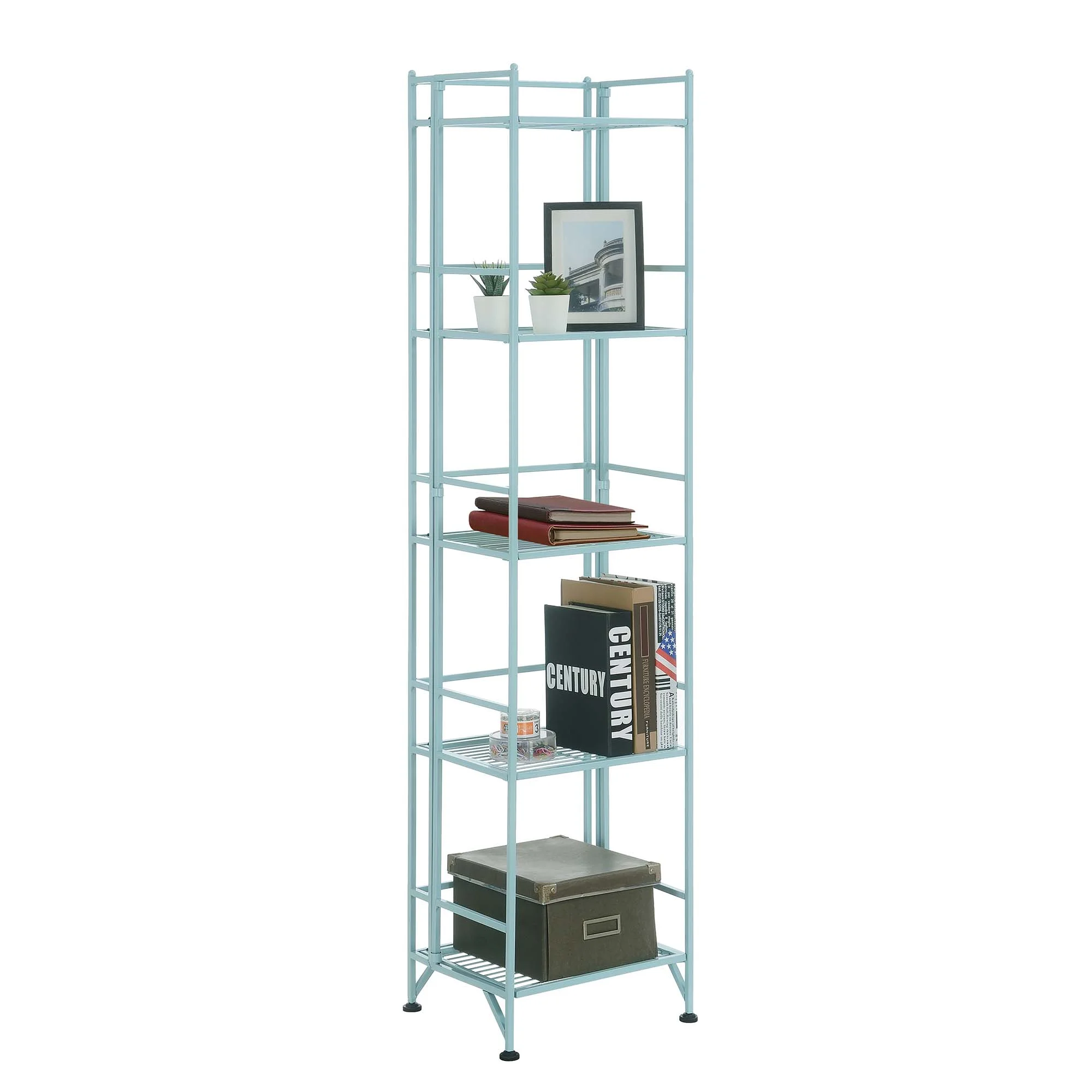 Convenience Concepts Xtra Storage 5 Tier Folding Metal Shelf, Seafoam Features: Part of the Xtra Storage Collection by Convenience Concepts Easy to Fold, Move, & Store When Not in Use 5 Tiers of Shelving Designed to Store Household Goods, Office Supplies, & More Sturdy Power-Coated Metal Frame & Adjustable Leveling Feet Compensate for Uneven Floors Easy Assembly with No Tools Required Powder Coated Metal To Maintain and Protect your Furniture, Regularly Wipe Down All Surfaces with a Soft Clean Dry Cloth Low Maintenance, Easy to Clean, & Built for Durability Maximum Weight Capacity per Shelf: 15 lbs. each Assembled Item Weight: 13 lbs. Assembled Item Dimensions:(L) 13 in. x (W) 11.25 in. x (H) 57.5 in. Color May Vary Slightly Due to Photography Lighting or Monitors Display