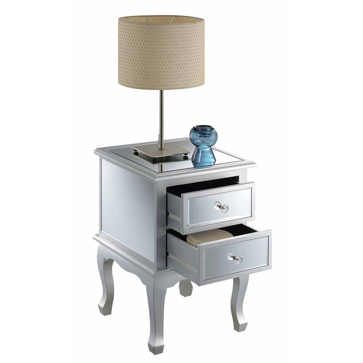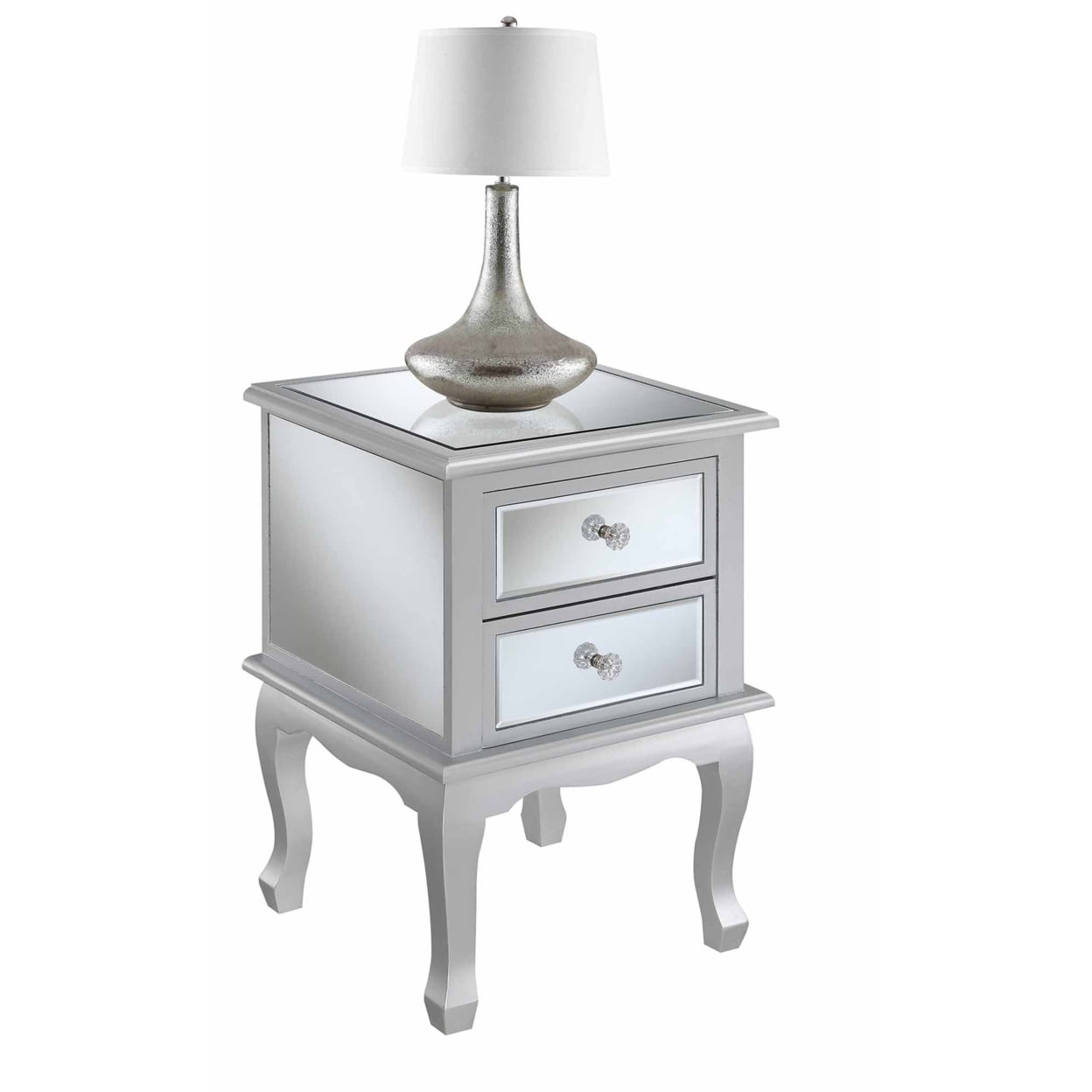Convenience Concepts Visually appealing; the Gold Coast Victoria Mirrored End Table by Convenience Concepts is a great accent table for any living space. Available in multiple finishes all paired with the mirrored accents make this piece easy on the eyes; and will be sure to catch the attention of visitors and guests. Featuring two drawers for concealed storage; you can hide away your books; or remotes or any other small odds and ends. Specifications: Mirrored Drawer faces and Table Top Available in Multiple Finishes No Assembly Required Easily Complements Any Decor Will Provide Years of Enjoyment