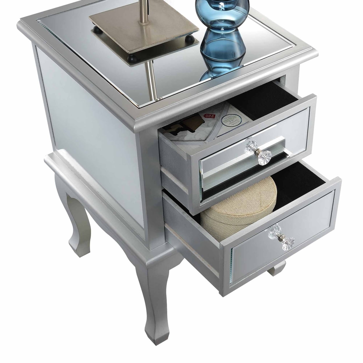 Mirrored Drawer faces and Table Top Available in Multiple Finishes No Assembly Required Easily Complements Any Decor Will Provide Years of Enjoyment