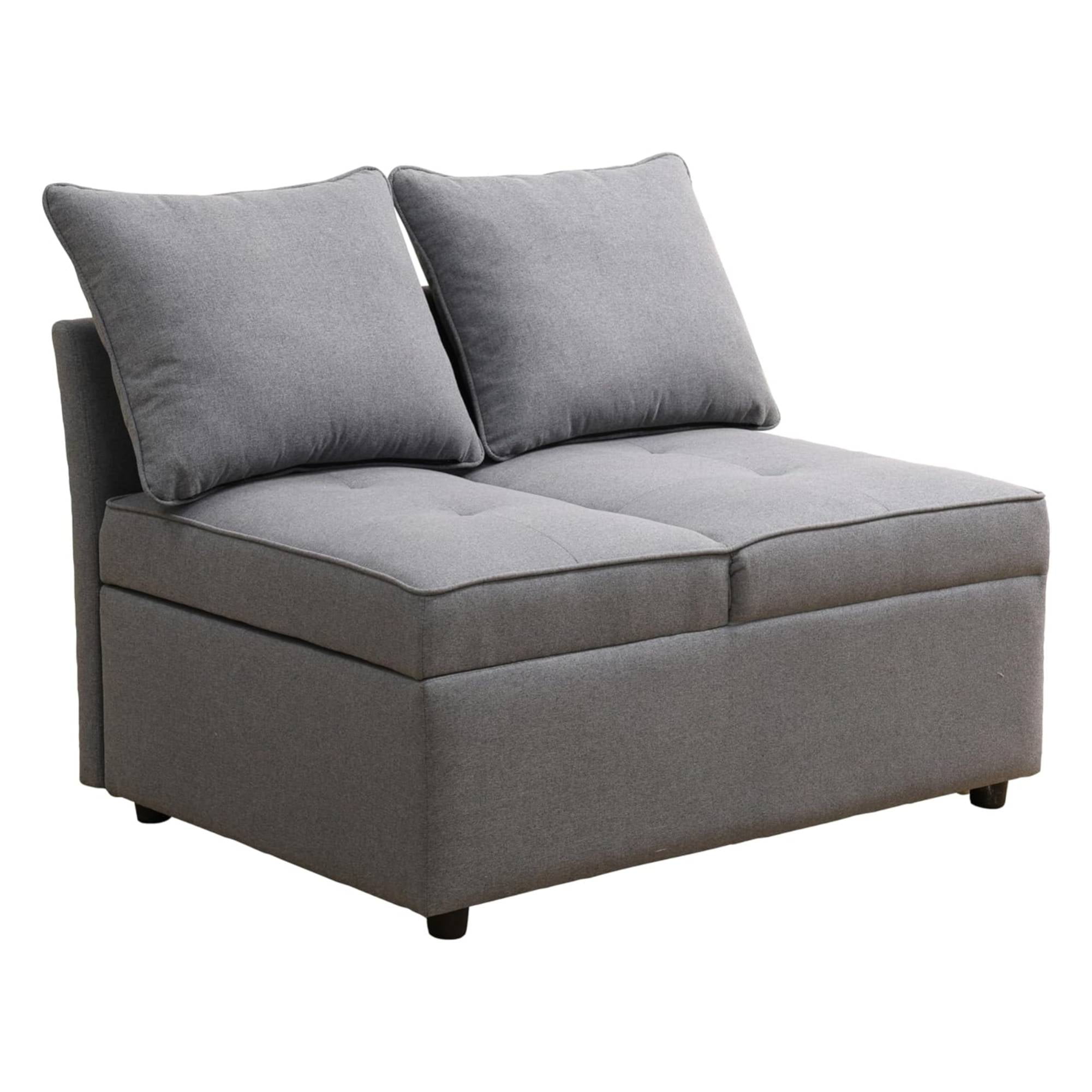 Convertible Ottoman Sofa with Storage, Modern Sackcloth Futon Couch with 2 Pillows or Home Living Room Dorms, Grey