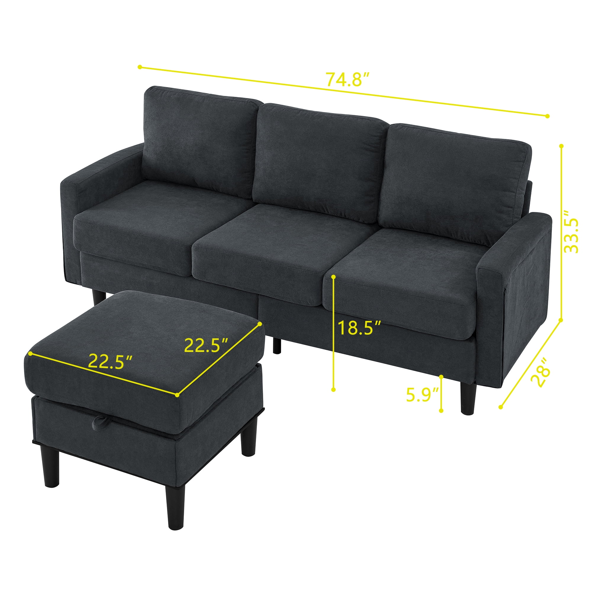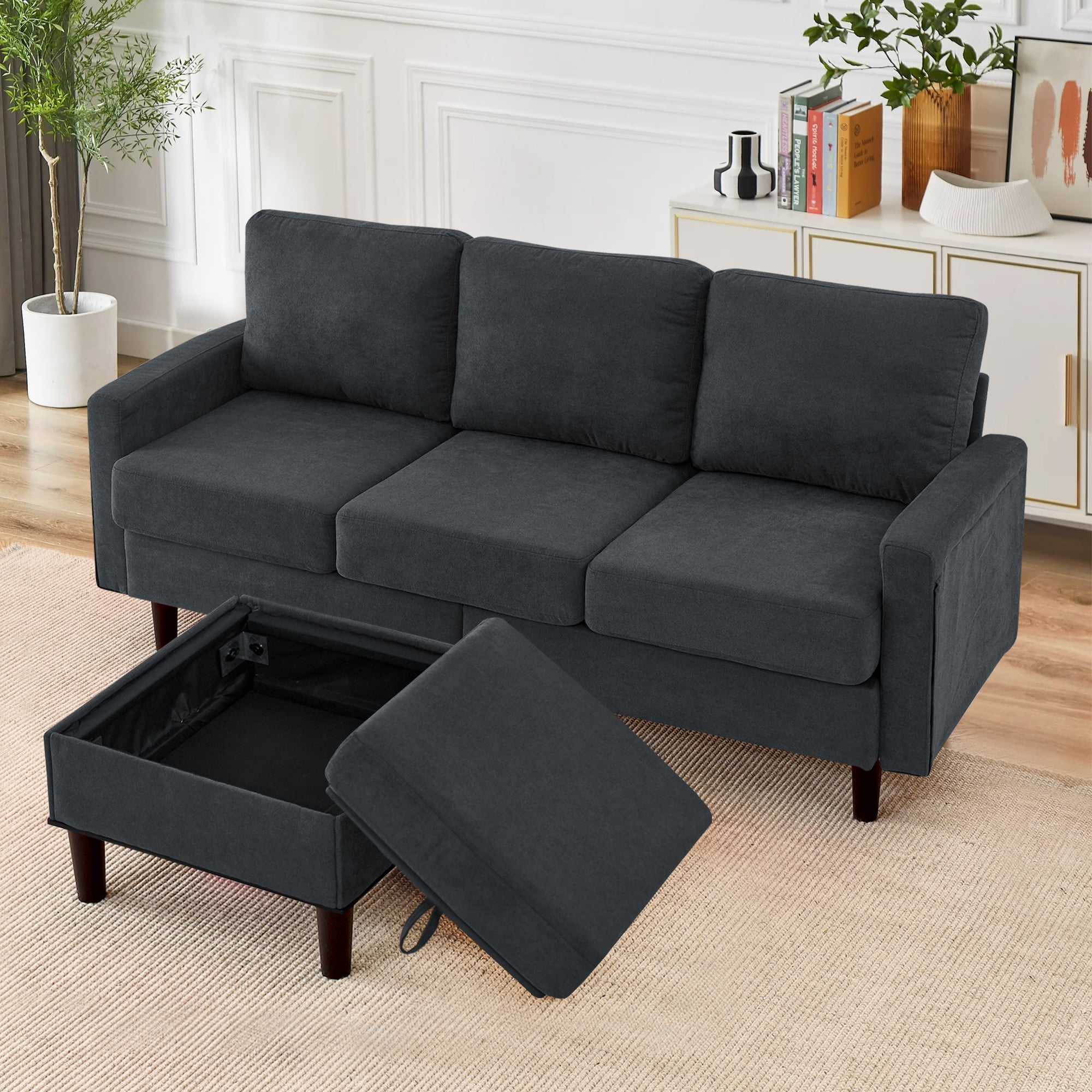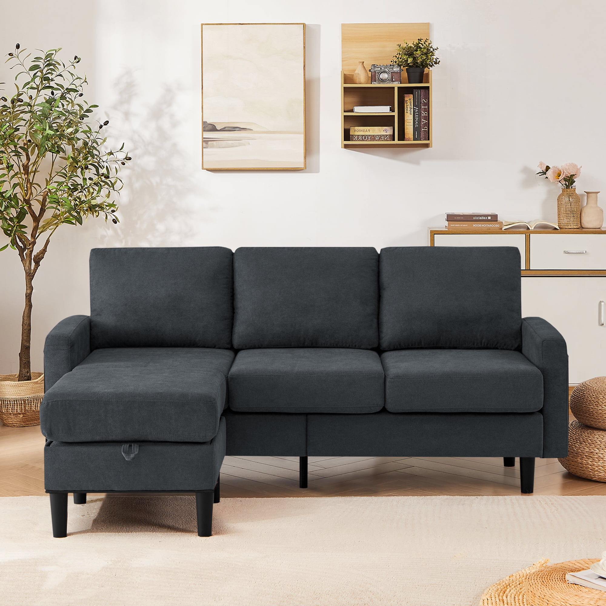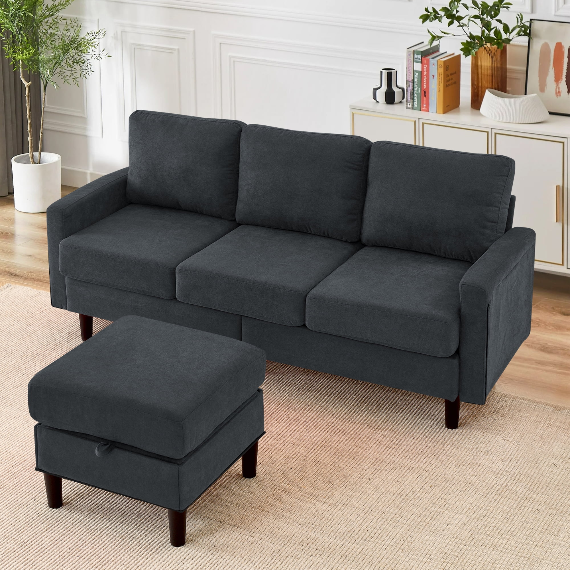 【Convertible & Flexible Couch】Create your own customized home living space with the sectional sofa. This couches is designed to accommodate any living space, thanks to its removable storage ottoman. You can easily configure it in various ways to fit your needs, whether you want a traditional sofa, a sectional, or a sofa bed. 【Comfort & Durable Sofa】Crafted from premium linen fabric, comfortable to the touch, our sectional sofa features a sturdy frame, soft cushions, and reinforced back seat, providing strong comfort. Plus, the fabric is easy to clean and maintain, making it perfect for homes with kids and pets. 【Bonus Storage Space】On a sectional couch, lifting the cushion on the ottoman opens up a storage space, a storage pocket on each side of the armrest. Whether it’s a TV remote control, magazines and books, or mobile phones and tablets, pillows. they can be placed in the storage space, which is practical and convenient. 【One Package Delivery】Crafted for convenient shipment and easy assembly. All parts are marked with either a letter or a number. You just need to follow the steps install the sofas for living room. You can assemble the sofas easily within 30 minutes. 【Wide Application】Couches for living room fits perfectly with any indoor decor, such as living room, apartment, office, college dorm and small place. Please confirm whether the product size meets your needs before purchasing.