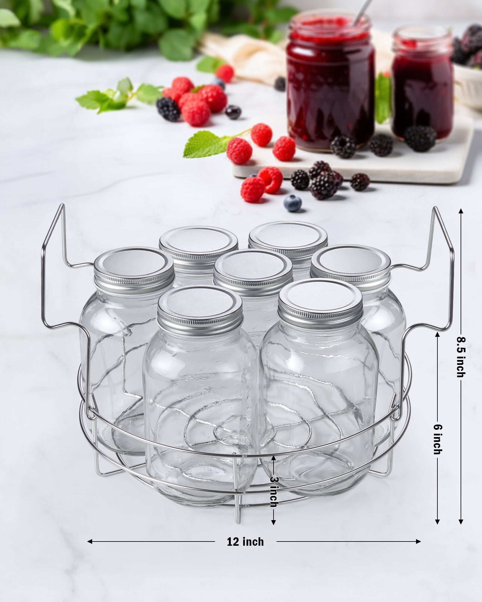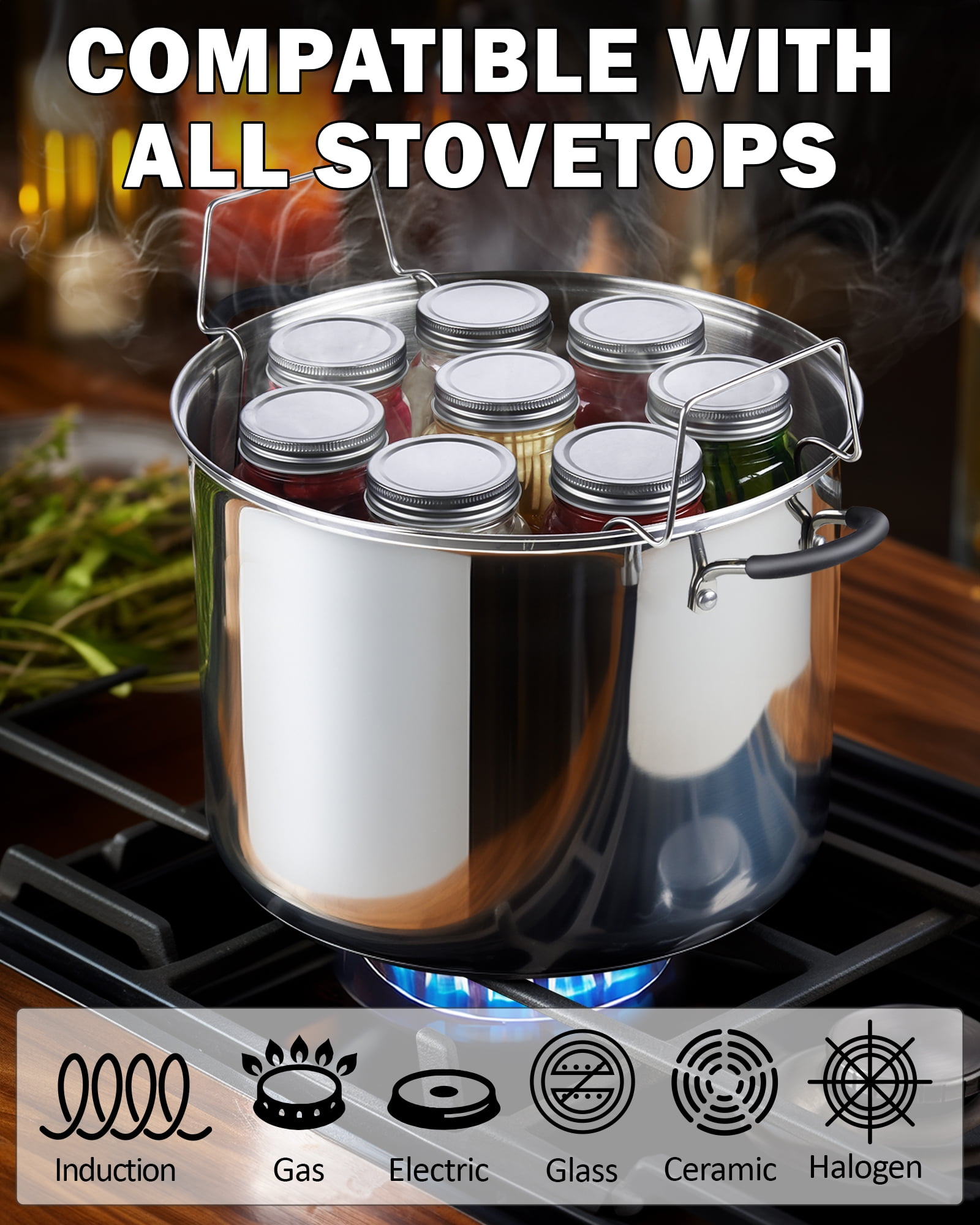 PROFESSIONAL STOCKPOT: Made of food-grade 18/10 stainless steel polished, well made and easy to clean, high temperature resistance, corrosion resistance, long service life, not easy to deform. Great for simmering stocks & soups or making sauces, canning, jarring, and so much more. DURABLE and EVEN HEATING: With impact bonding aluminum disc in bottom. The aluminum core ensures that heat is evenly distributed /quick and no hot spots, magnetic stainless bottom design for induction use. JAR RACK: Canning rack is made of high quality 304 Stainless Steel, thicker steel wire, it’s stronger, more durable, not rusty, not easy to deform. Extra thick 3.5 mm stainless steel wires holds jars securely in place. EASY TO HANDLE: The stainless steel canning rack with handles, any size canning jars mason jars, include regular mouth and wide mouth mason jars. Securely holds 8 Pint jars or 7 Quart jars.8 mason jars of 16 US Fl oz. VERSATILE and COMPATIBLE: 20-quart stockpot is induction compatible and works on gas, electric, glass, ceramic, and more. Dishwasher safety. Oven safe to 400℉, Lid up to 350℉.