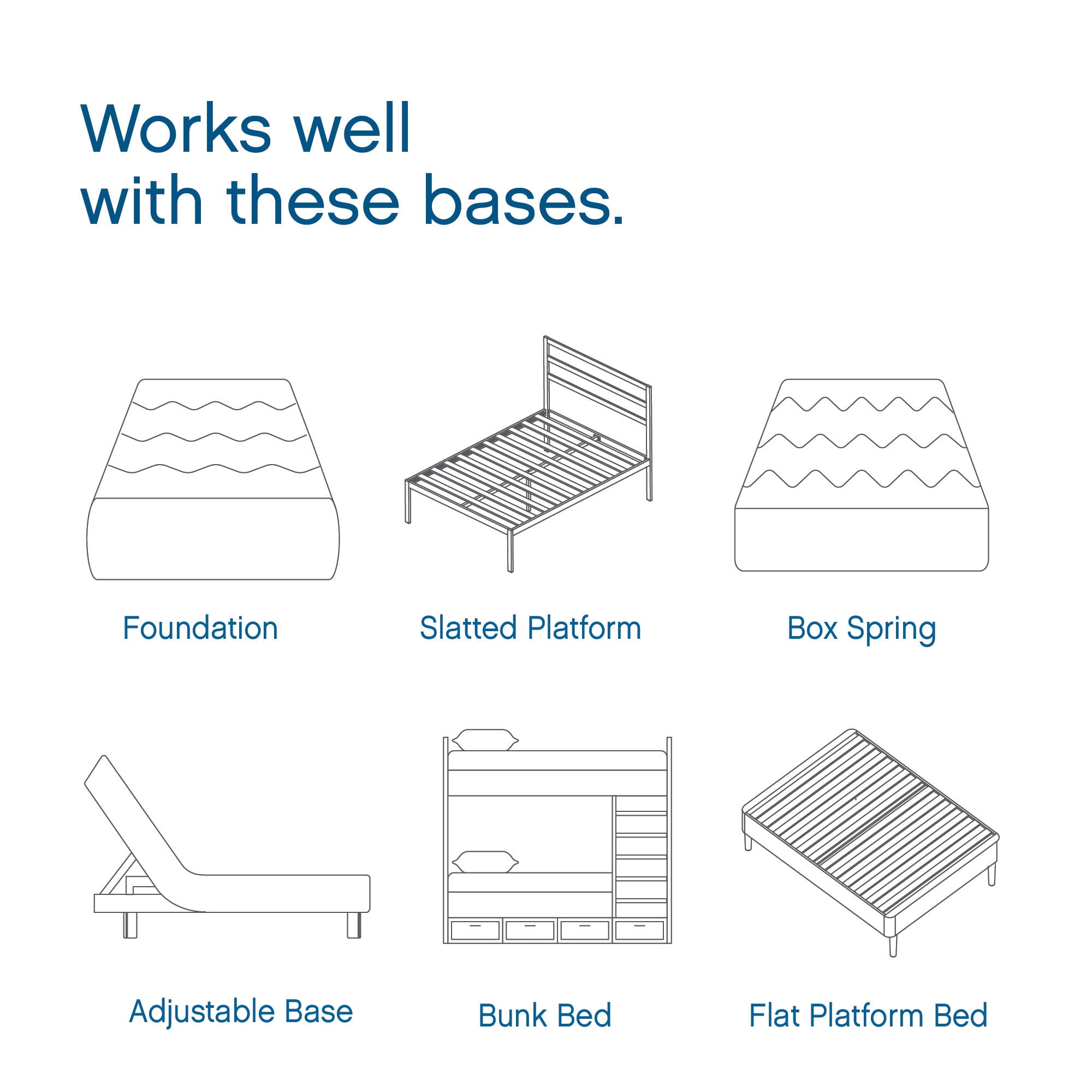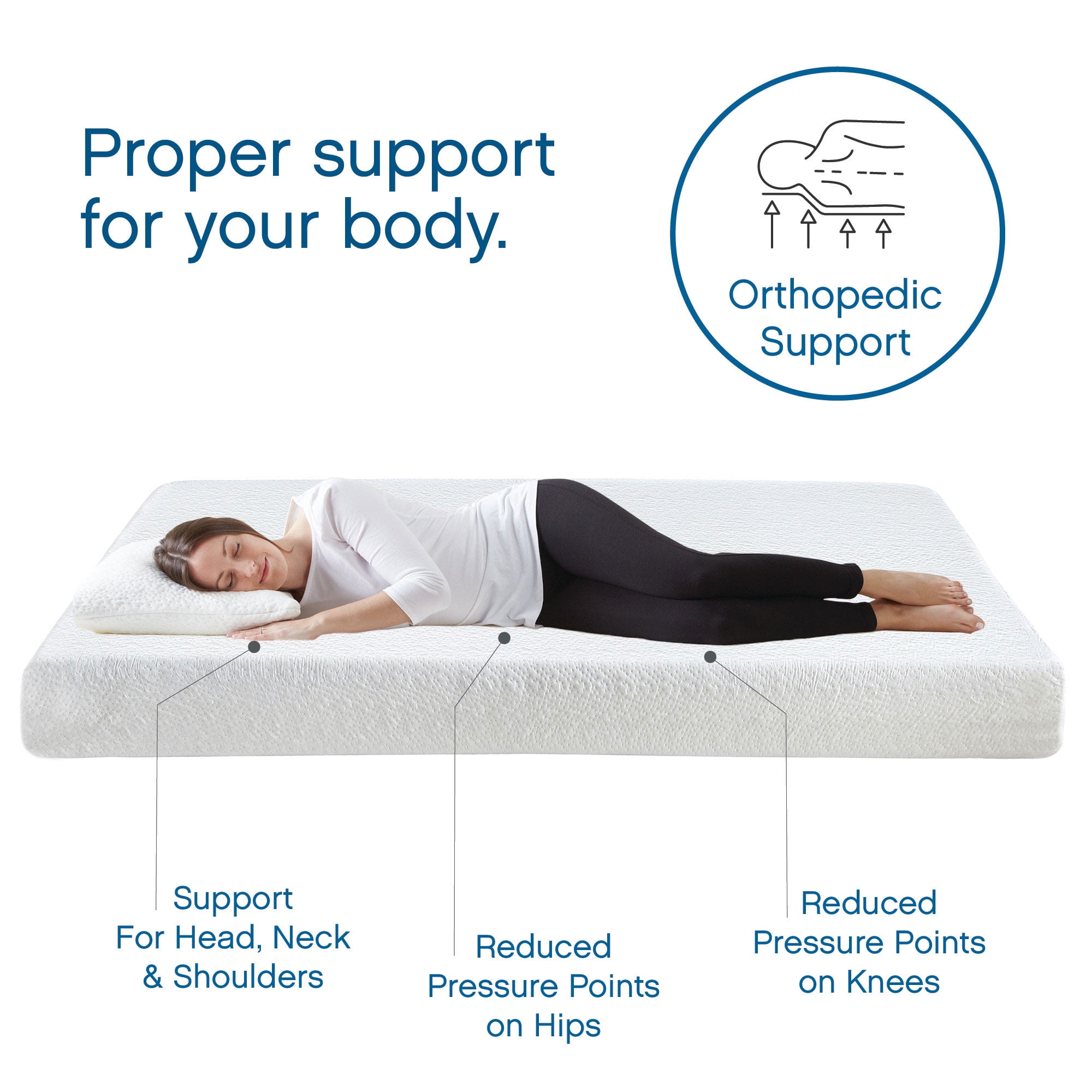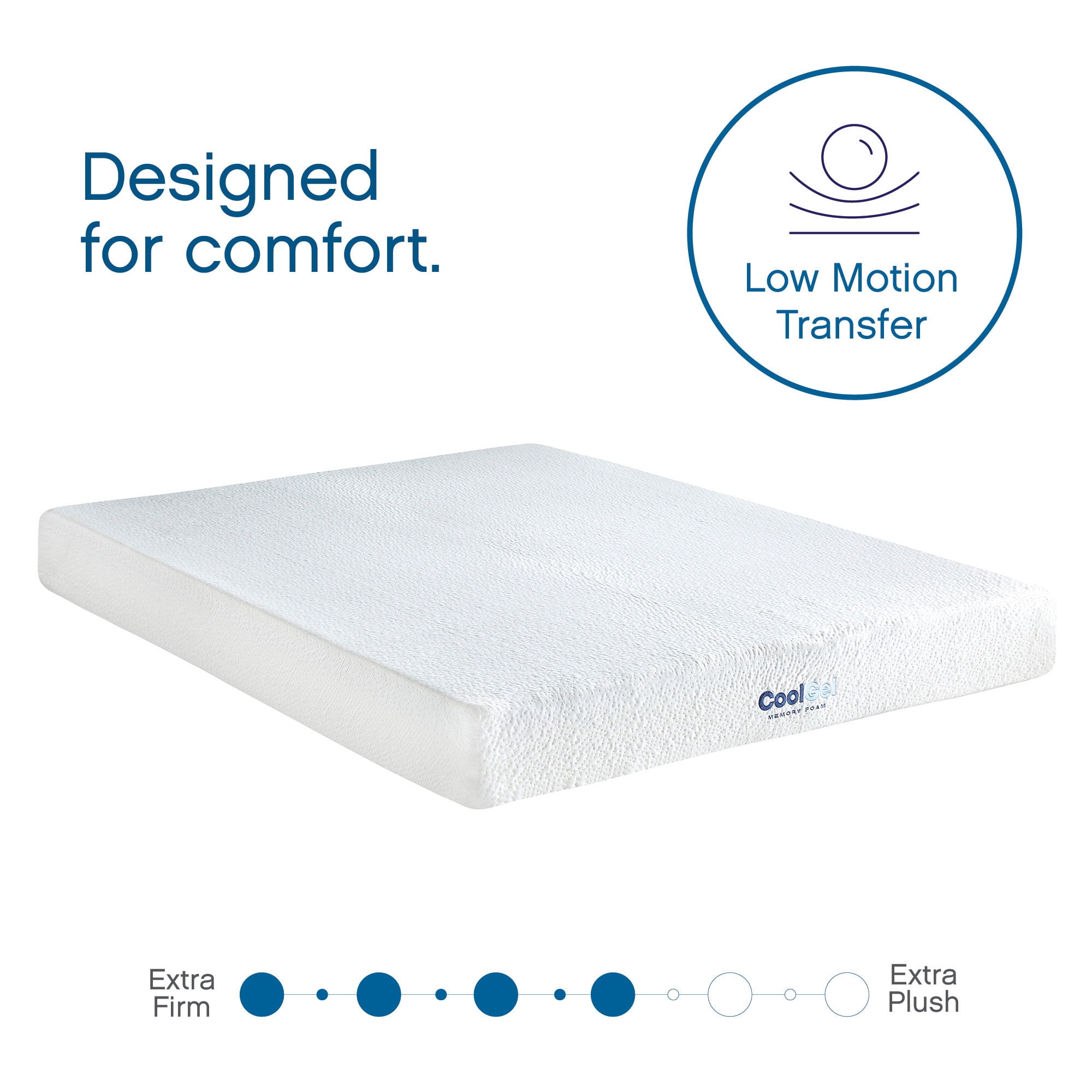 Beautifully detailed all around cover with four-way stretch works with the memory foam to optimize its conforming properties Gel foam draws heat away from the body, keeping you cool while the base foam provides comfort and support for a refreshing night’s sleep Mattress ships compressed, rolled and shipped in a box conveniently delivered to your door for easy set-up; frame/foundation/base not included