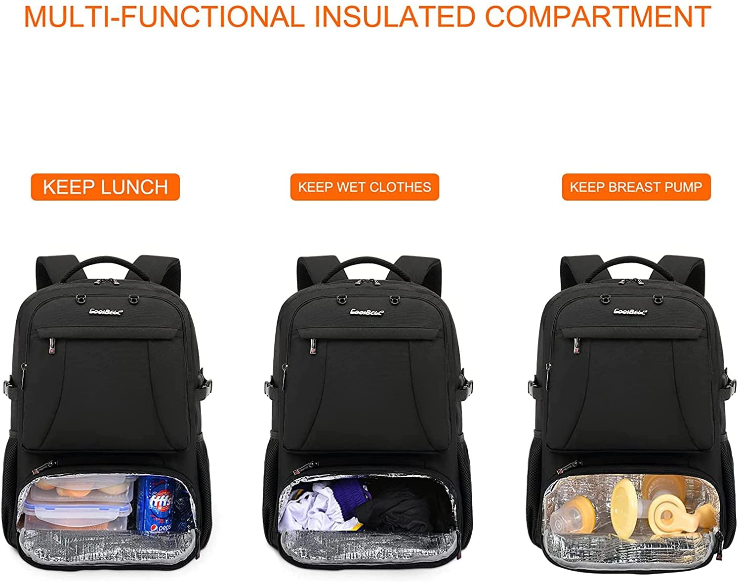 【Laptop backpack with Independent insulated compartment】 This insulated compartment with water-resistant zipper at the bottom of the backpack is roomy and functional, it is made of cleanable aluminum foil, this unique expanded compartment designed for keep 2-3 lunch boxes, drinks or wet dirty clothes. This design can expand it as a lunch backpack function, perfect for more occasions like: work, sport, hiking, fishing, beach time, camping, business trip, school life etc. 【Large capacity with Multi-compartment.】Bag full dimensions: ‎13.3 x 8.0 x 19.2 inches. It is roomy for carrying 17.3 inches laptop, 10+ books, documents, iPad, 2-3 days summer clothes and other items you need. The insulated room can carry 2-3 big lunch boxes, fruits, drinks etc. 【Multi-functional backpack —Hidden basketball net pocket design】This basketball net pocket can be hidden in the middle zipper pocket when you don’t need it, this hidden design keep the backpack in good shape.And also, we can use this net pocket to keep clothes, shoes or Yoga mat! 【USB port + headphone cable hole design】This expandable design provides you a comfortable using experience. Use it to connect the your power bank, then connect your phone with original USB cable to the USB port, you could charge your phone conveniently. Headphone hole help to keep your music player in the backpack to free your hand. 【High quality multi-functional backpack with more compartments】The 2 accessory compartments provides more room to organize your personal items. This ergonomic backpack with more foam padding inside is comfortable to carry for a long time, it is perfect for men, Women, work, sport, hiking, fishing, beach time, camping, business trip, school life etc. Ideal choice as: School backpack, college backpack, business backpack and work backpack.