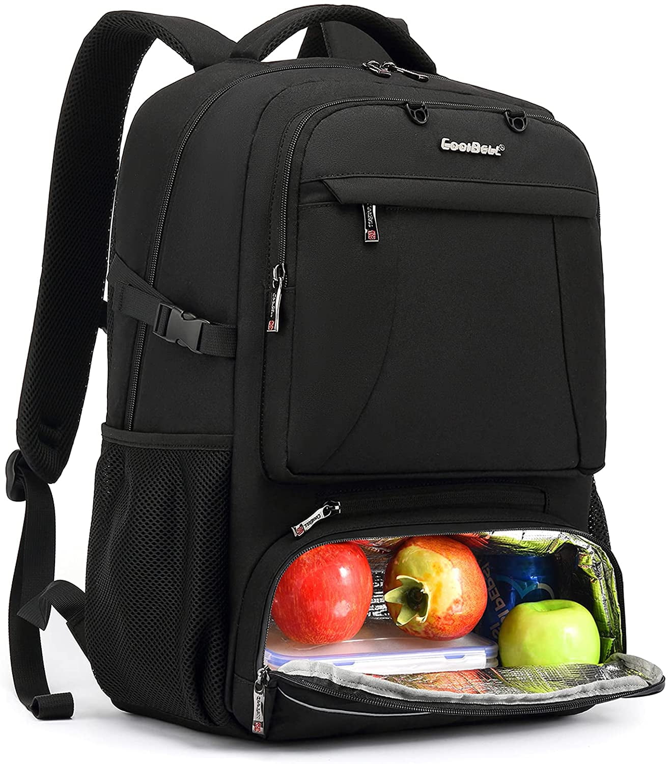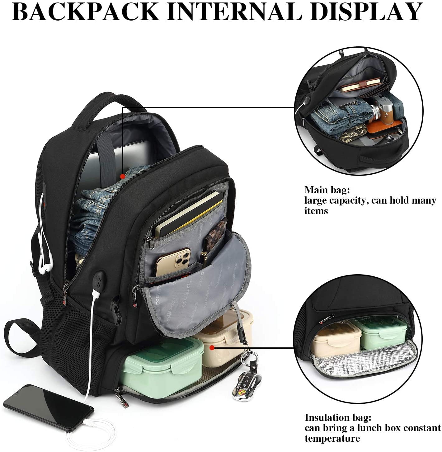CoolBELL Laptop Backpack, 17.3 Inch Laptop Lunch Backpack with USB Port, Work Backpack with Insulated Cooler Lunch Bag, College School Laptop Bookbags for Women and men, Black