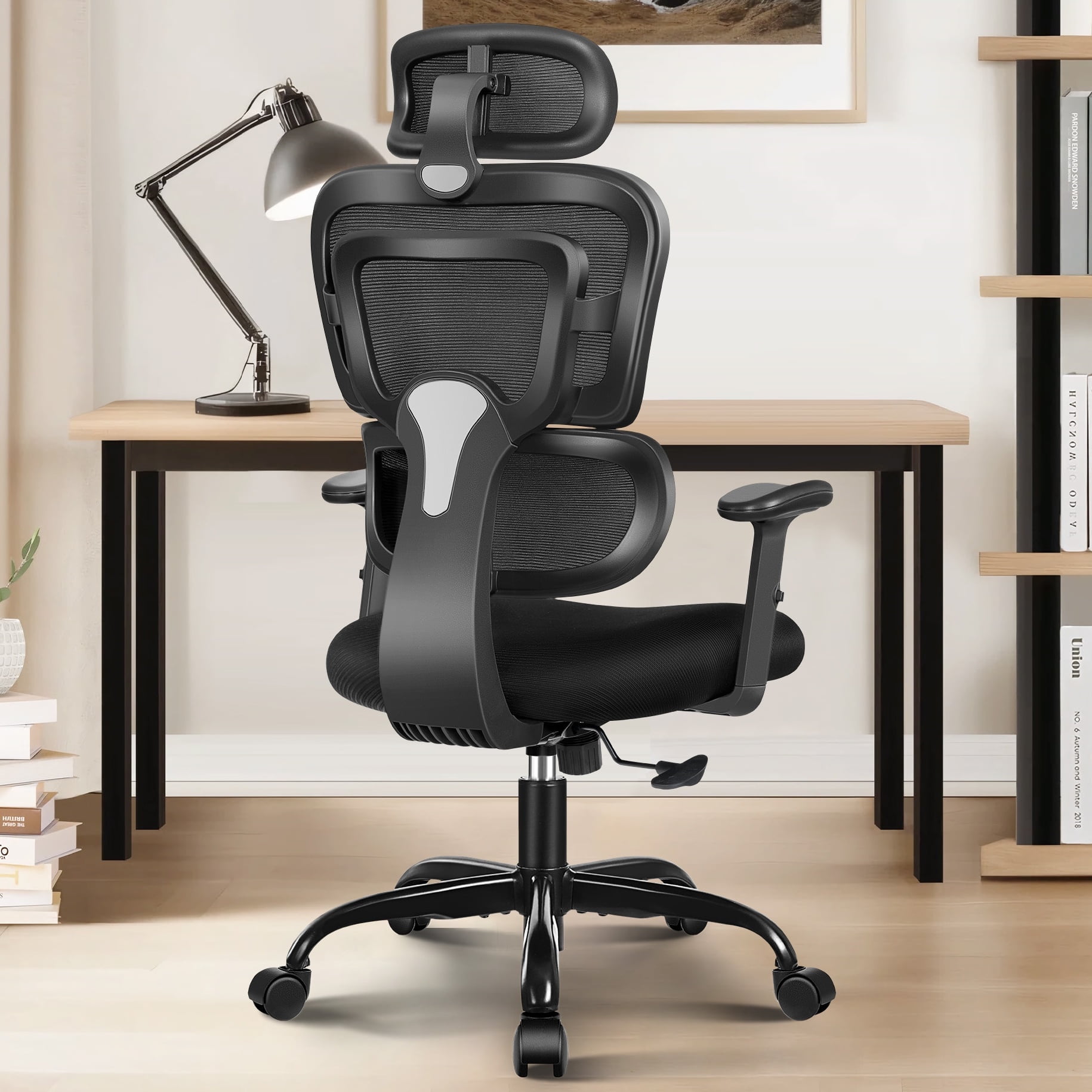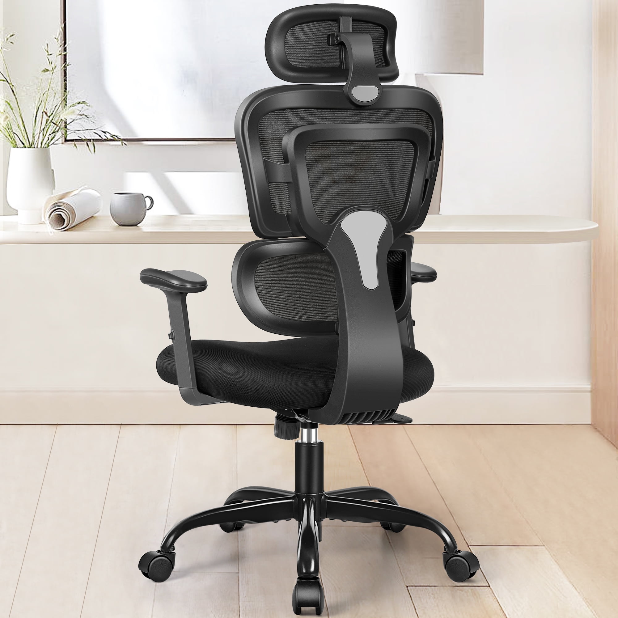 【Ergonomic Office Chair】: Our high back office chair features an ergonomic design with an “S” backrest and independent lumbar support, relieving spinal pressure. The premium mesh lumbar support optimizes ventilation and heat dissipation while offering precise relief for your waist’s pressure, ensuring comfort during prolonged sitting. 【Easy Adjustment】: Our ergonomic chair offers effortless adjustment with one lever for seat height and reclining, with 3 tilt recline angles 90°-120°-145°. Armrests adjust within 3″ in height. The mesh headrest is adjustable up/down and rotating 45 degrees, catering to various needs and occasions. 【Comfort and Cool Sitting Experience】: Crafted from high-quality mesh material, our ergonomic desk chair is supportive, breathable, and long-lasting. Easy cleaning and maintenance ensure it remains reliable for years. The thick cushion seat eases sedentary pressure for comfortable extended sitting. 【Modern Design and Durability: 】: Elegant and versatile, our office desk chair suits any space, office, home furnishing, conference room, etc.. With BIFMA and SGS certifications, it boasts high quality and durability. The heavy duty metal base and legs support up to 300 lbs, ensuring long-lasting stability. 【Worry-free Warranty】: We stand behind our comfortable office chair with a 30-day return policy and 5-years warranty on parts replacement for any quality issues. Our dedicated customer service team guarantees a response within 24 hours for all inquiries. Color: Black/Dark Gray/White Weight Capacity: 300LBS Chair Dimensions: 27.6″ L x 26.8″ W x 36.2-40.2″ H Seat Dimensions: 20.5″ L x 20.5″ W Chair Height: 36.2″-40.2″ Net Weight: 30.8LBS Seat Cushion Thickness: 2.8″ Packing list: 1x mesh office chair, 1x user manual