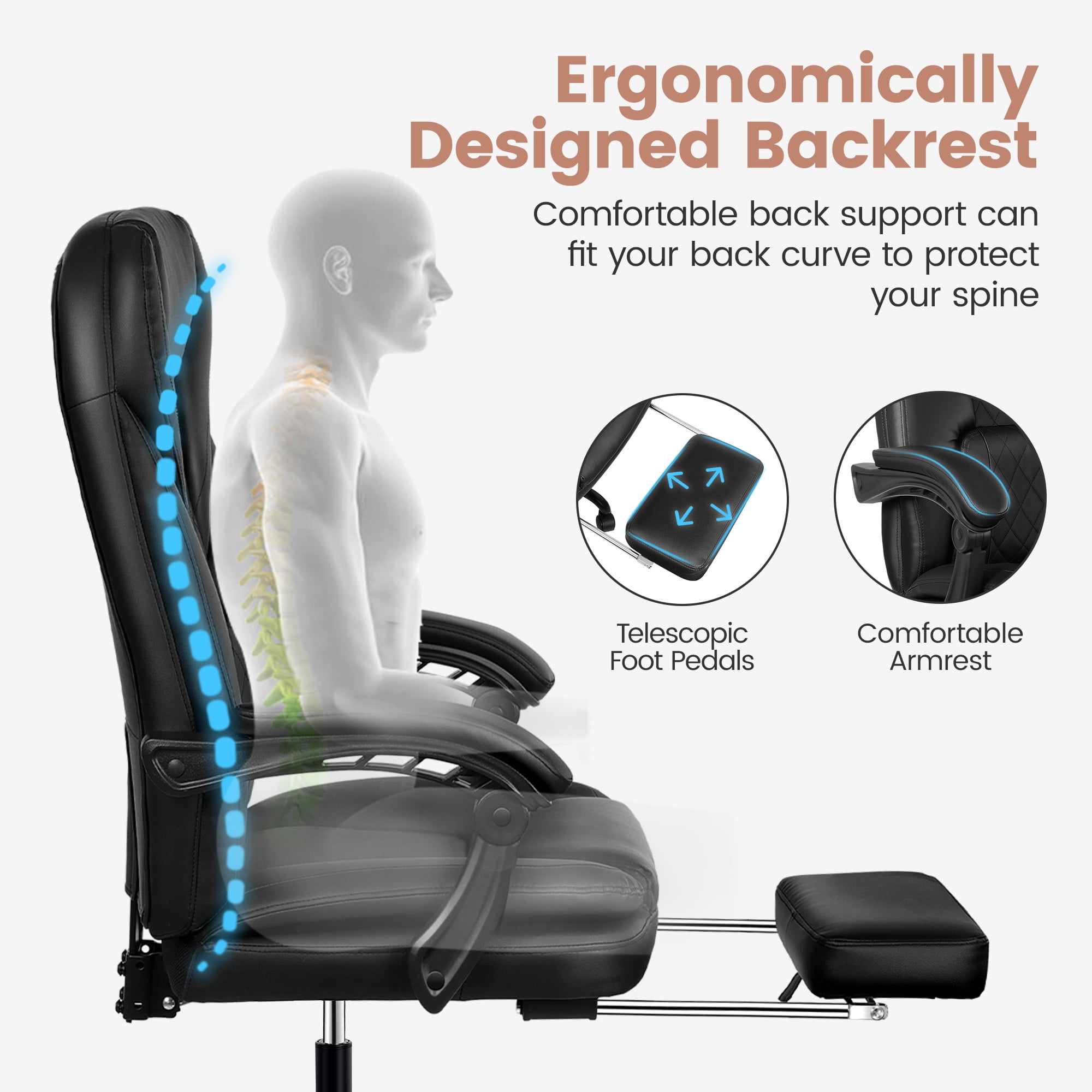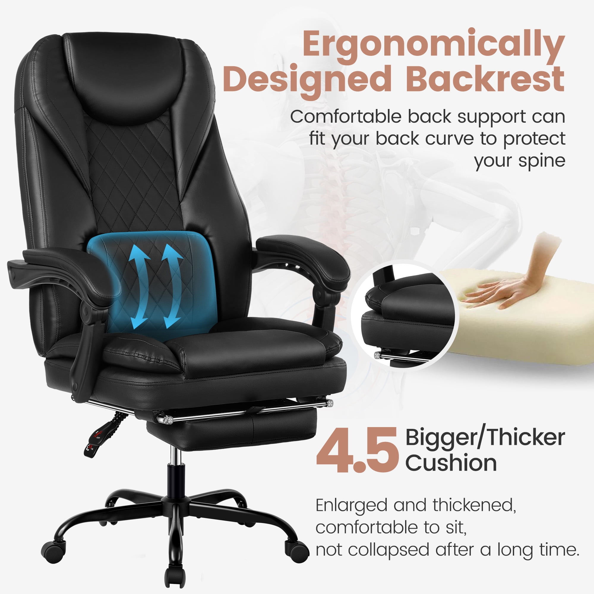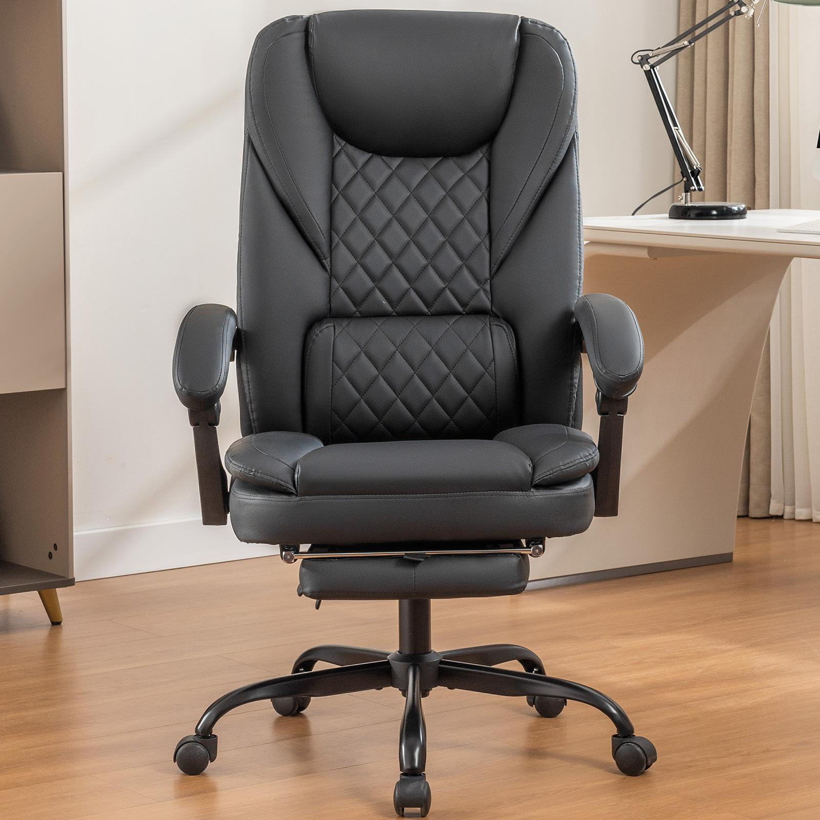 COOLHUT Executive Office Chair, Big and Tall Office Chair with Footrest Reclining Faux Leather Chair High Back Lumbar Support Ergonomic Office Chair with Padded Armrests, Black