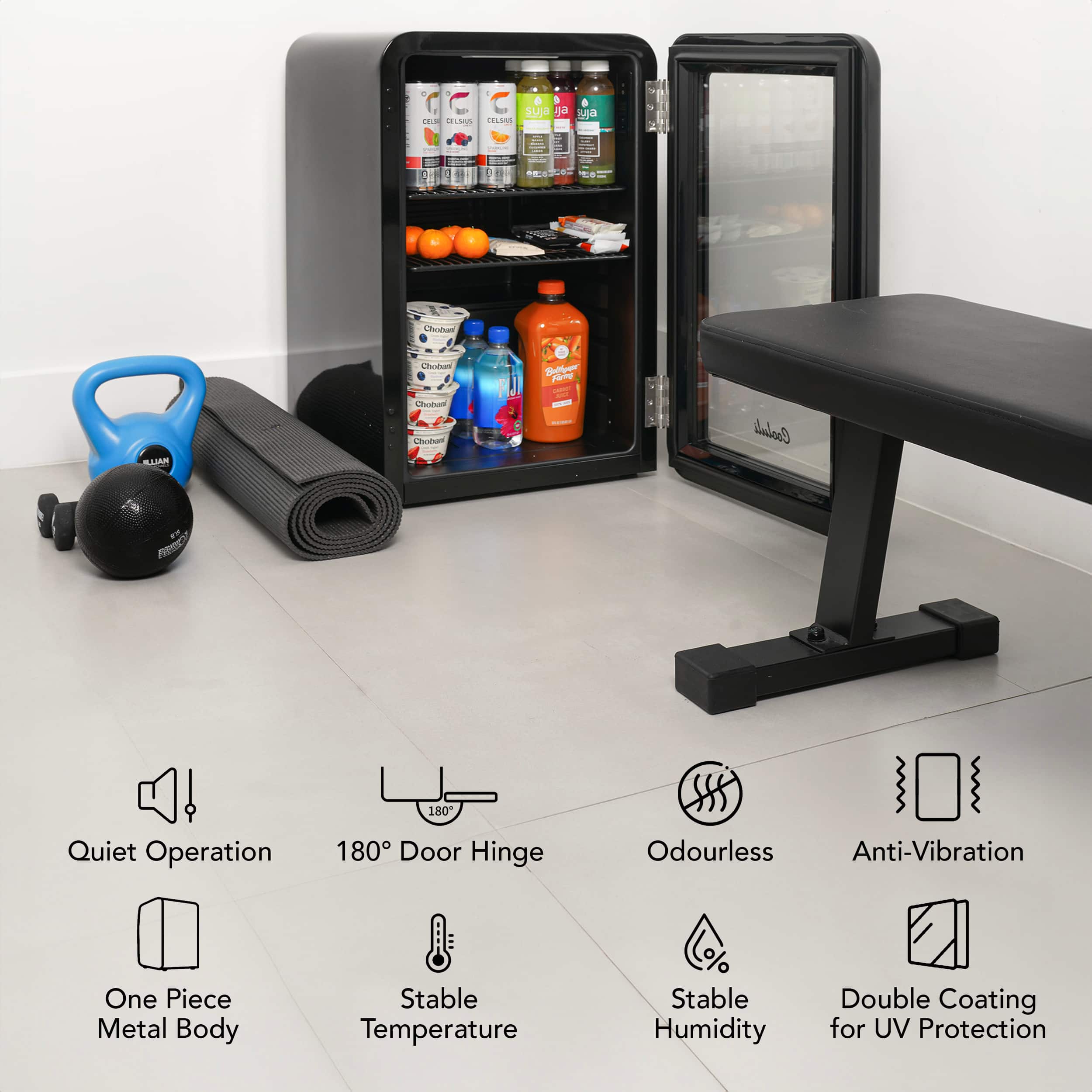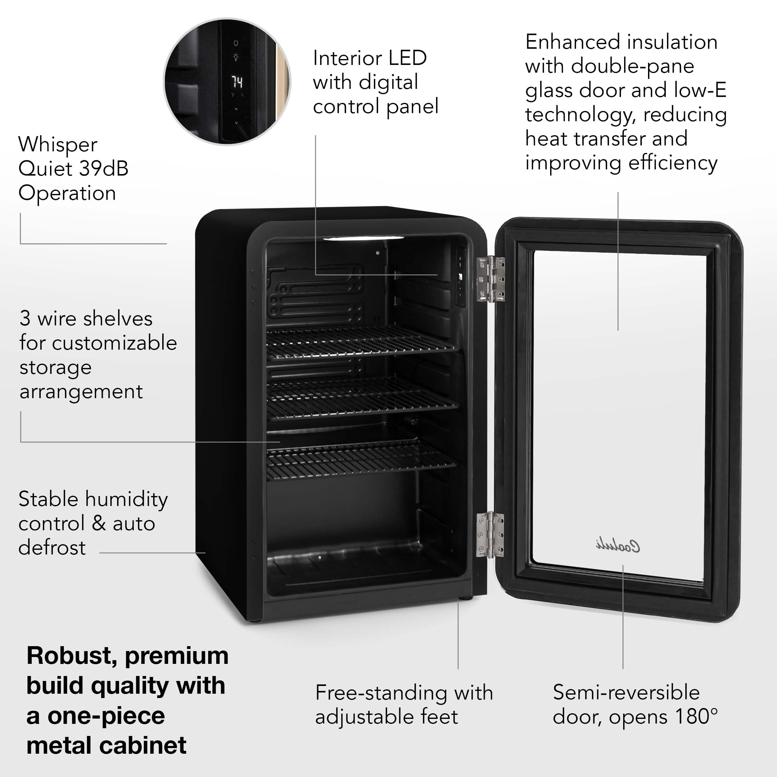 Upgrade your cooling game with the Cooluli Décor 2.4 beverage cooler, where modern elegance meets practicality. Featuring a sleek finish and a double-panel acrylic glass door, this cooler showcases your beverages while conserving energy with low-emissivity technology. With three wire shelves holding up to 80 twelve-ounce cans and 2.4 cubic feet of compact storage, it’s perfect for any space.