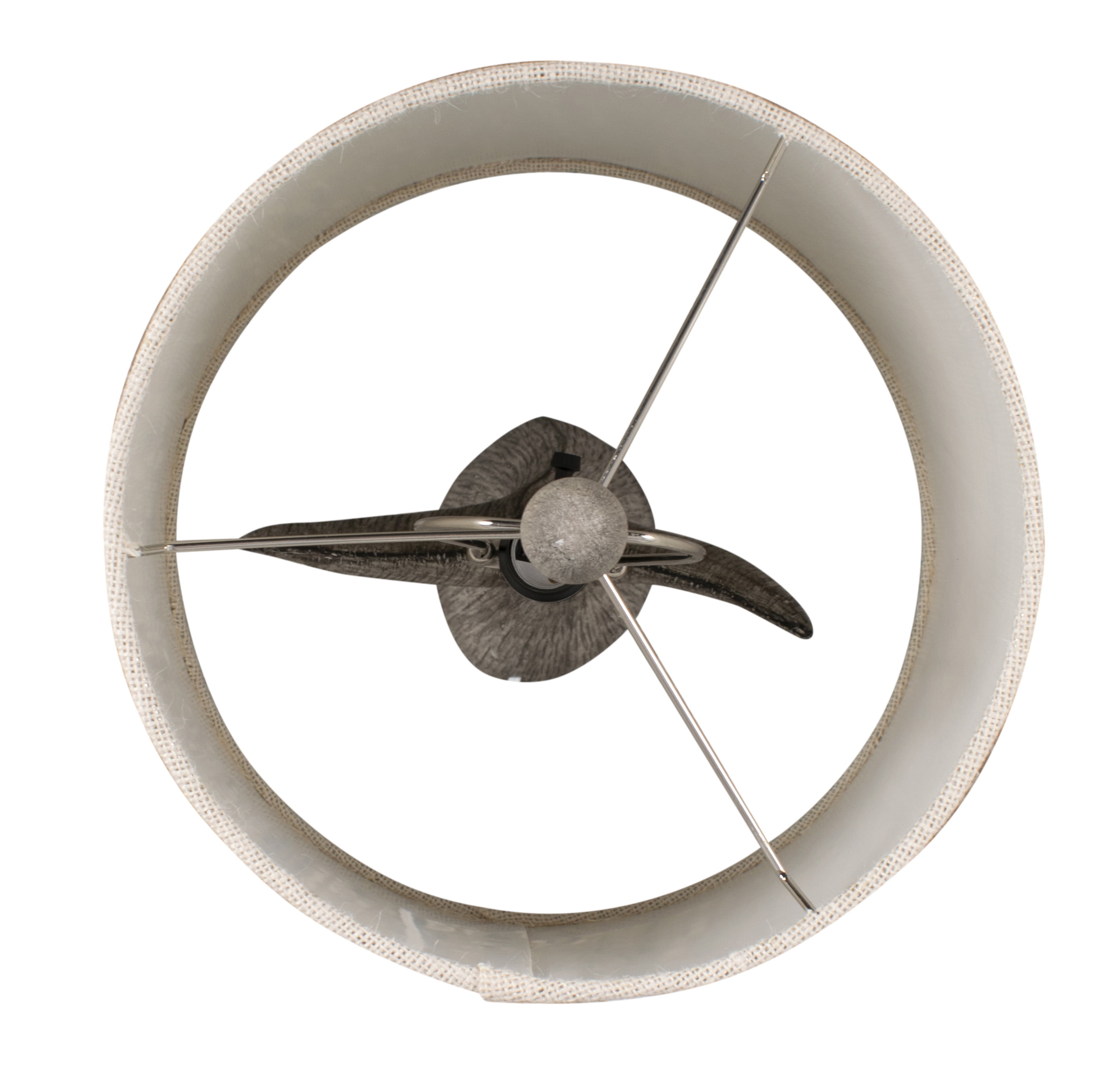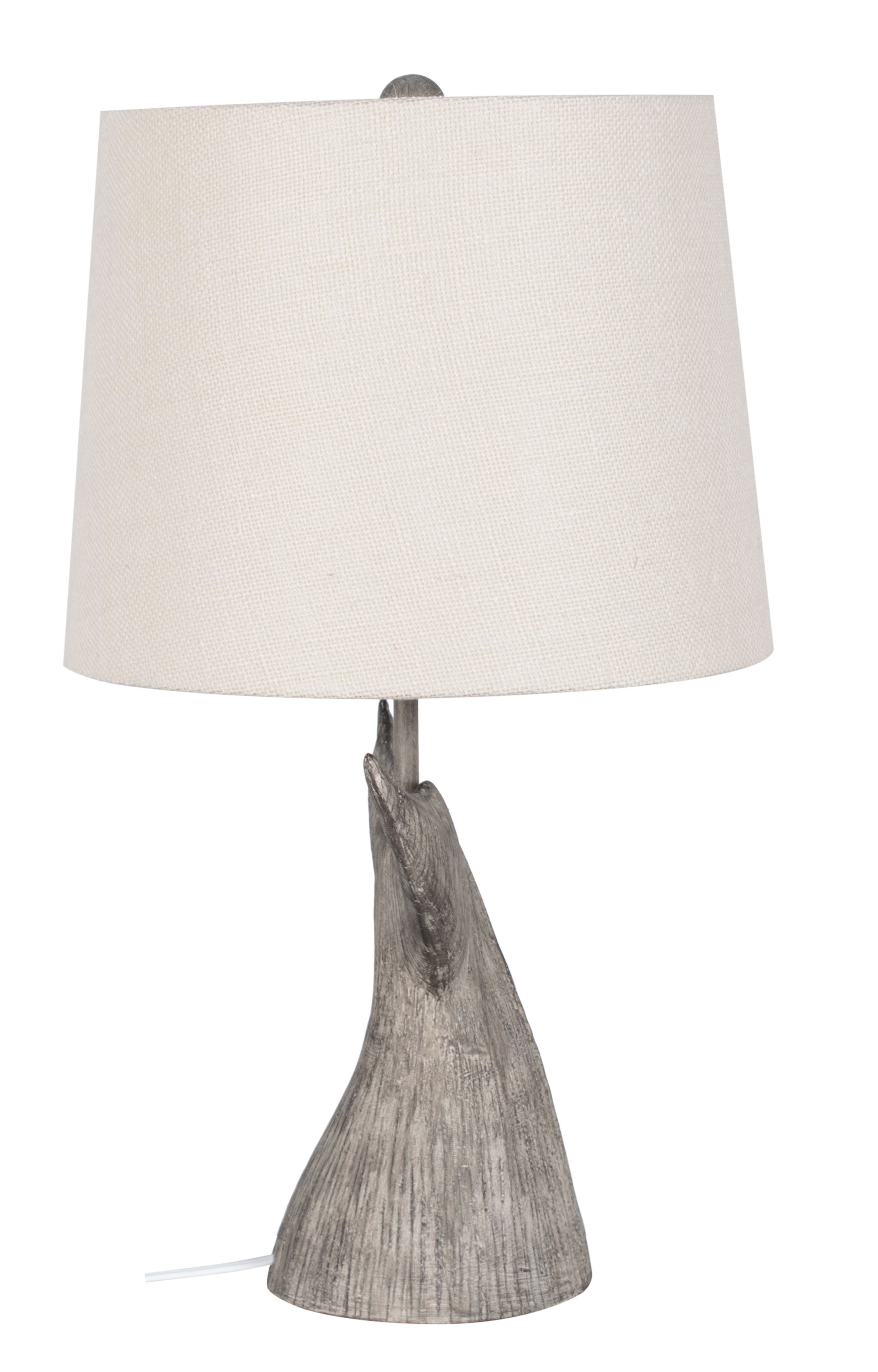 The Cooper Ridge 23″ Gray wood Table Lamp (2 Pack)will add light to your nightstand or homework station with this fun whale tail. Crafted in the shape of a whale tail, the base of this lamp is made of polyresin. Up top a round cream burlap shade and matching finial complete the look. Requires one 60 watt bulb, not included. Measures 13 x 13 x 23″