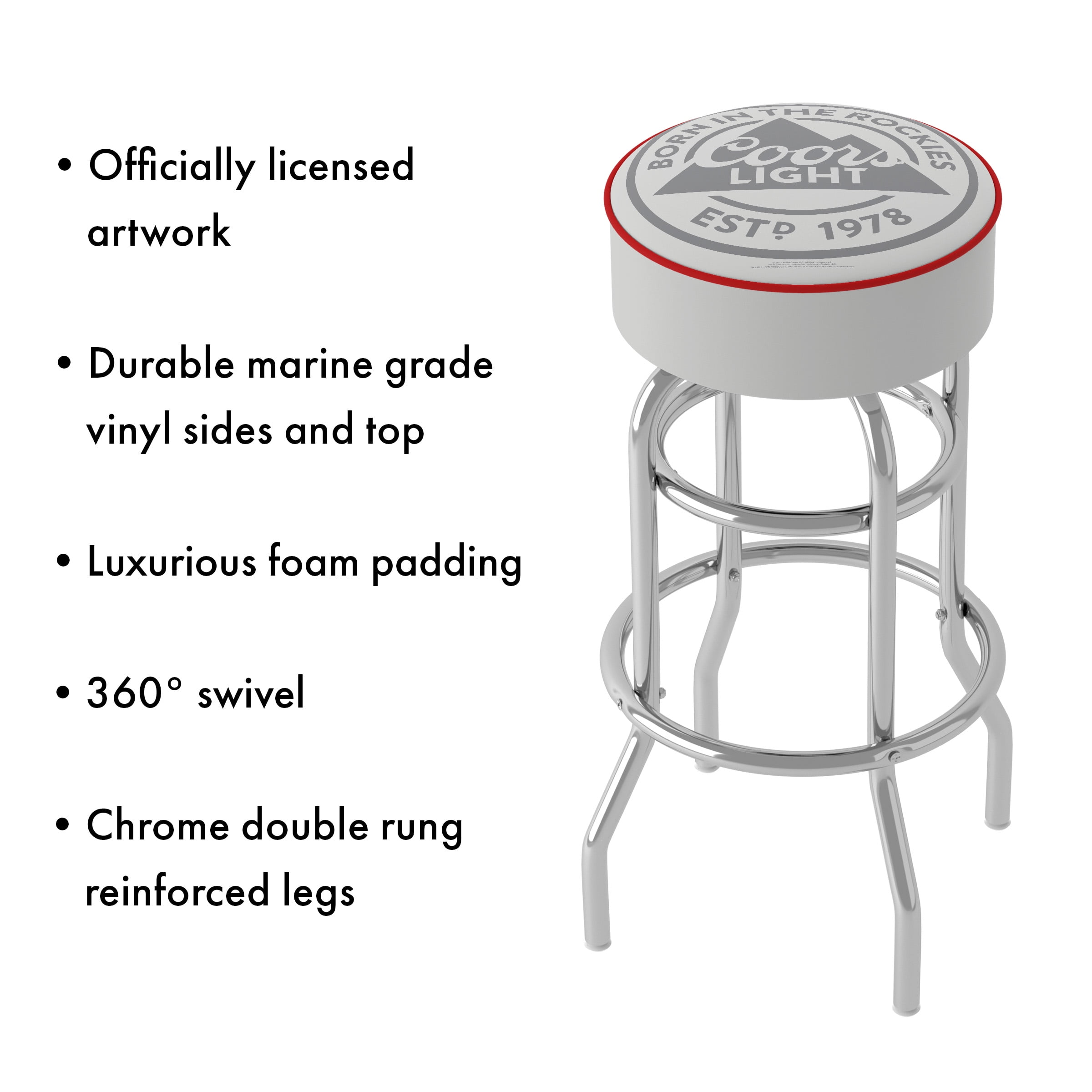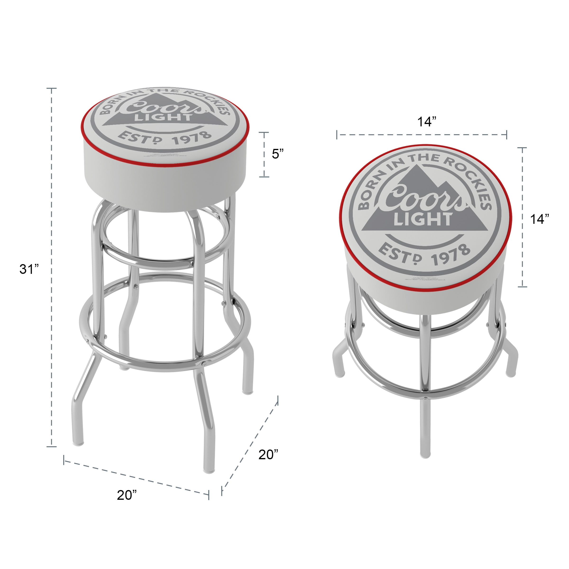 OFFICALLY LICENSED BARSTOOLS – The backless bar stools are sure to bring style to any basement, garage, or man cave with the officially licensed Coors Light logo. FOAM PADDED SEAT – The counter stool is equipped with plush foam padding, while the marine grade vinyl sides and quarter inch vinyl beaded top provide added durability. REINFORCED LEGS – The base of the garage stool is constructed from tubular steel with chrome double rung reinforced legs, making this industrial bar stool both lightweight and supportive. 360-DEGREE SWIVEL – The workbench stool features a 360-degree swivel rotation for added versatility and will make an excellent addition to any area of your home or bar. MATERIALS – Chrome Plated Steel, Marine Grade Vinyl, and Foam Padding. DIMENSIONS – (L) 20″ x (W) 20″ x (H) 31″; Seat: (L) 14″ x (W) 14″ x (H) 5″; Vinyl Beading: 0.25″.
