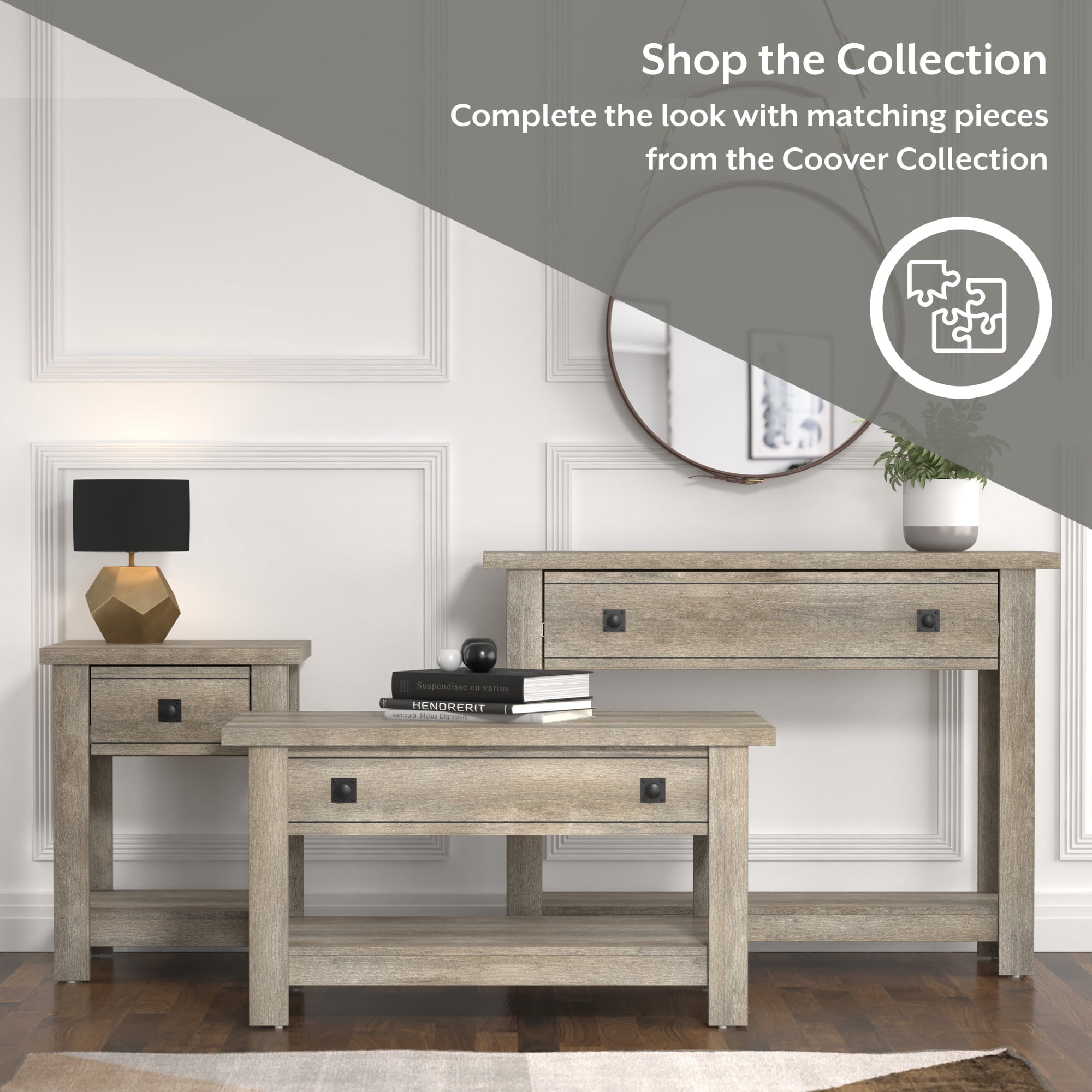Coover Wood Rectangular End Table with 1 Drawer, Driftwood Gray