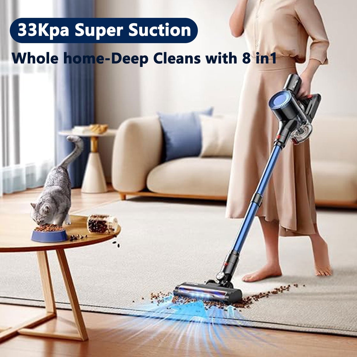 Cordless Stick Vacuum Cleaner, 450W 38kPa, 55min Runtime, Smart Display, for Carpet & Pet Hair, Blue