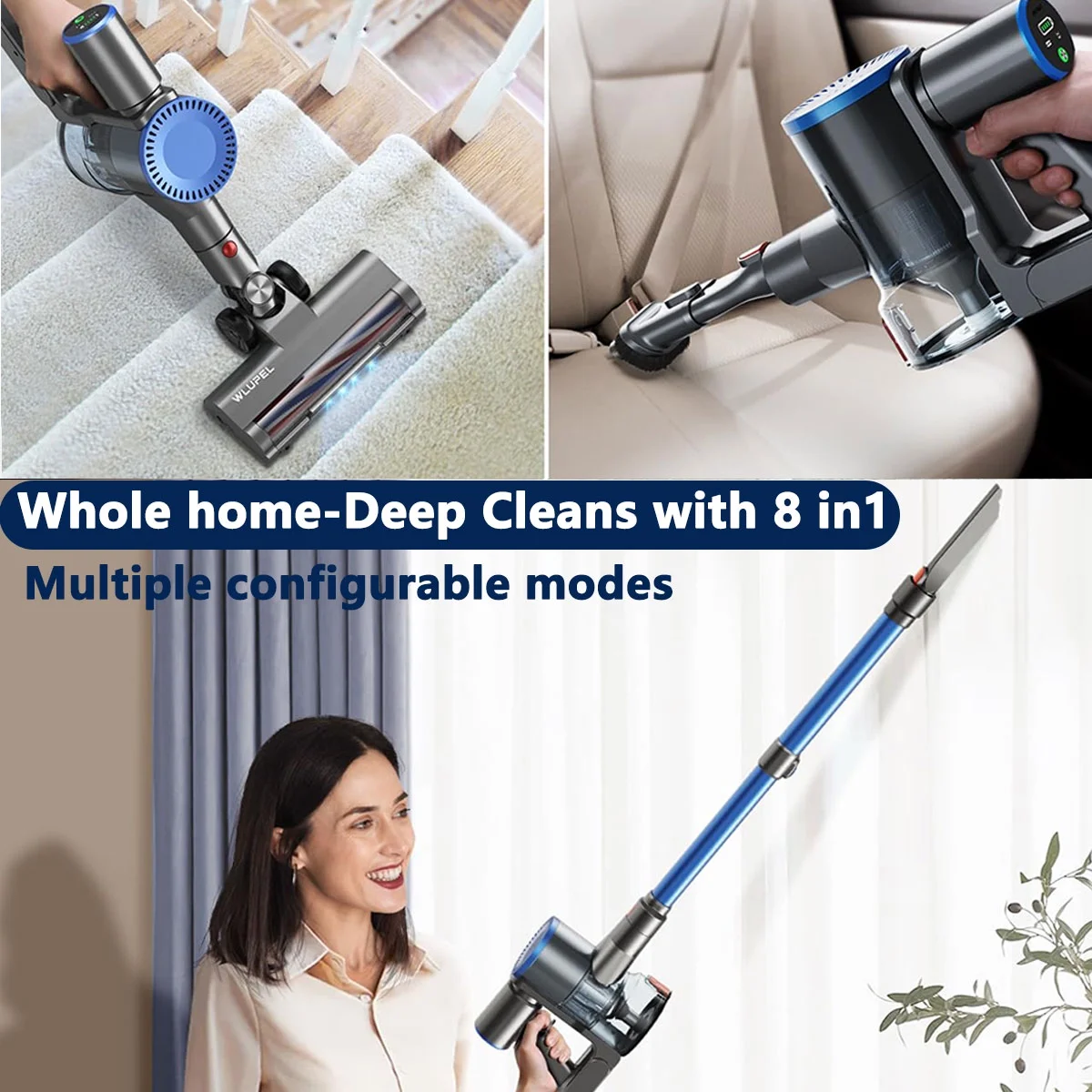 Effortless Clean for a Healthier Home – With 450W 38Kpa suction and a 7-stage filtration system, you’ll capture 99.99% of dust, allergens, and pet hair, helping create a cleaner, healthier environment for your family.Smart, Real-Time Monitoring – The IQ LED display shows battery life and brush status, so you can focus on cleaning instead of worrying about power. Smart alerts keep you informed for a seamless experience.Tackles Every Surface with Ease – Whether it’s carpets, hard floors, or hidden debris under furniture, the 180° rotating brush and LED headlights ensure every inch is spotless without any hassle.Long-lasting Performance – With a removable 2500mAh battery, enjoy up to 45 minutes of continuous cleaning. No more interruptions—just powerful suction to tackle your entire home, all in one go.Quick, Easy Maintenance – The 1.5L dust cup with one-click emptying means no mess on your hands, while washable HEPA filters save you money and effort. Just clean, recharge, and you’re ready to go! Effortless Clean for a Healthier Home – With 450W 38Kpa suction and a 7-stage filtration system, you’ll capture 99.99% of dust, allergens, and pet hair, helping create a cleaner, healthier environment for your family. Smart, Real-Time Monitoring – The IQ LED display shows battery life and brush status, so you can focus on cleaning instead of worrying about power. Smart alerts keep you informed for a seamless experience. Tackles Every Surface with Ease – Whether it’s carpets, hard floors, or hidden debris under furniture, the 180° rotating brush and LED headlights ensure every inch is spotless without any hassle. Long-lasting Performance – With a removable 2500mAh battery, enjoy up to 45 minutes of continuous cleaning. No more interruptions—just powerful suction to tackle your entire home, all in one go. Quick, Easy Maintenance – The 1.5L dust cup with one-click emptying means no mess on your hands, while washable HEPA filters save you money and effort. Just clean, recharge, and you’re ready to go!