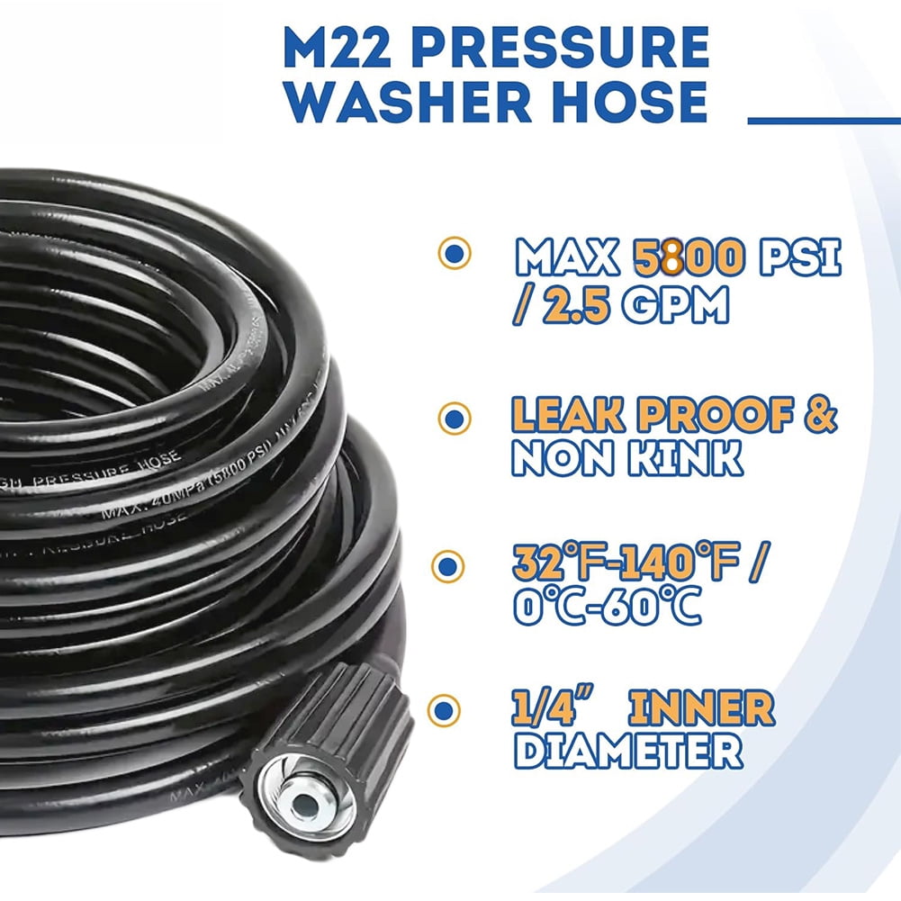 High Pressure Washer Hose 32FT M22 Brass Fitting Power Washer Hose Replacement Extension Tube for Car, Motorcycle, Driveway & Garden Cleaning, Pressure Washer Accessories