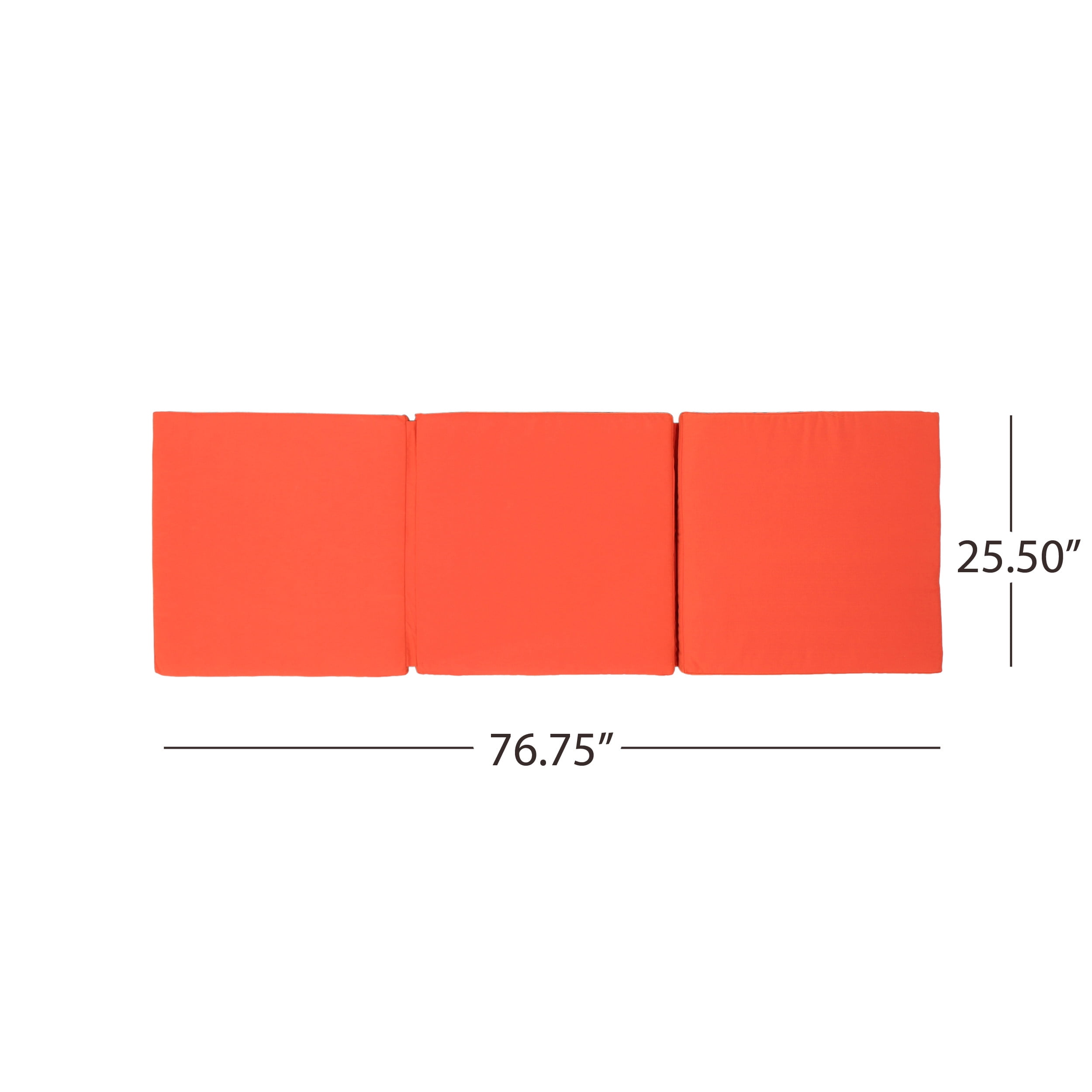 Includes: One (1) Cushion Material: Water Resistant Fabric Composition: 100% Polyester Color: Orange No Assembly Required Dimensions: 76.75 inches deep x 25.50 inches wide x 2.00 inches high
