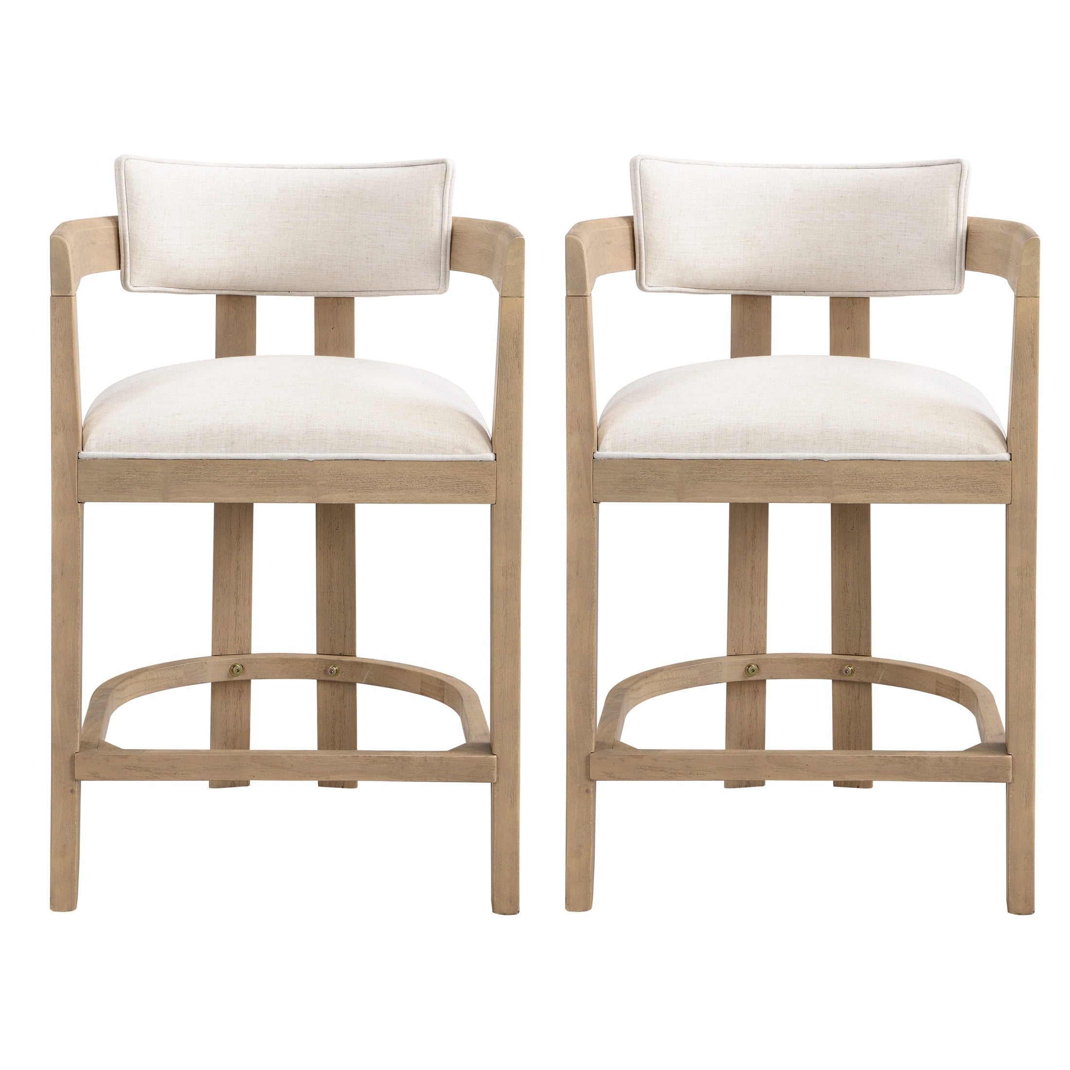 Corlas 26″ Seat Height Medieval Modern Fabric Upholstered Counter Stools with Footrest, Rubber Wood Frame, Natural + Beige, Set of 2