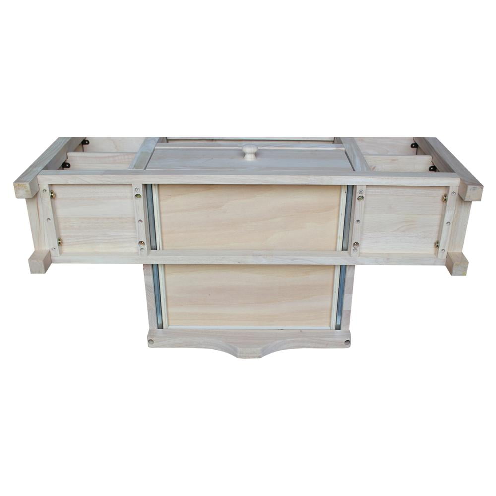 International Concepts home furniture is for those who appreciate high quality, wood furniture with a traditional and elegant look. This piece will beautifully complement any décor in your home. Features: Dimensions: 39″W x 18″D x 28″H Made from solid hardwood Inside dimension of drawer: 15.98W X 14.80″D X 4.60″ H Distance from floor to bottom of front rail: 1.96 Dimensions of center shelf: 17.91 w x 16.14d” Distance between center shelves: 6.49