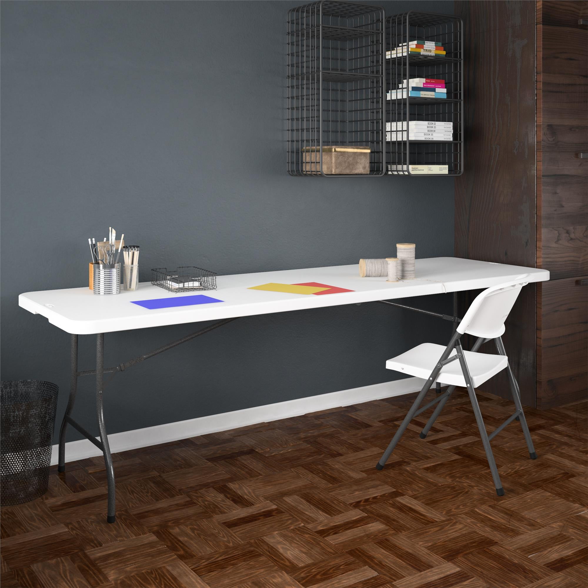 The Cosco 8′ Centerfold Table is a practical and attractive item to have on hand. This high-quality table caters to most any occasion. Dress it up for the holidays or bring it outside for a barbecue. It also works for hobbies such as painting and crafts. Use is for yourself or make it a play station for kids. This Centerfold Table features a waterproof top that resist spills and weather. It is easy to clean up so it is worry-free. This versatile piece saves space and time. The legs fold in and a center folding feature makes transport and storage virtually effortless. Just fold it up and bring it with you. When you are finished, it folds away out of sight in your basement, garage or closet. This 8′ white table provides additional seating at both ends of table, so there is room for everyone to sit and enjoy. It has a heavy duty strong steel frame, steel legs and a low maintenance.