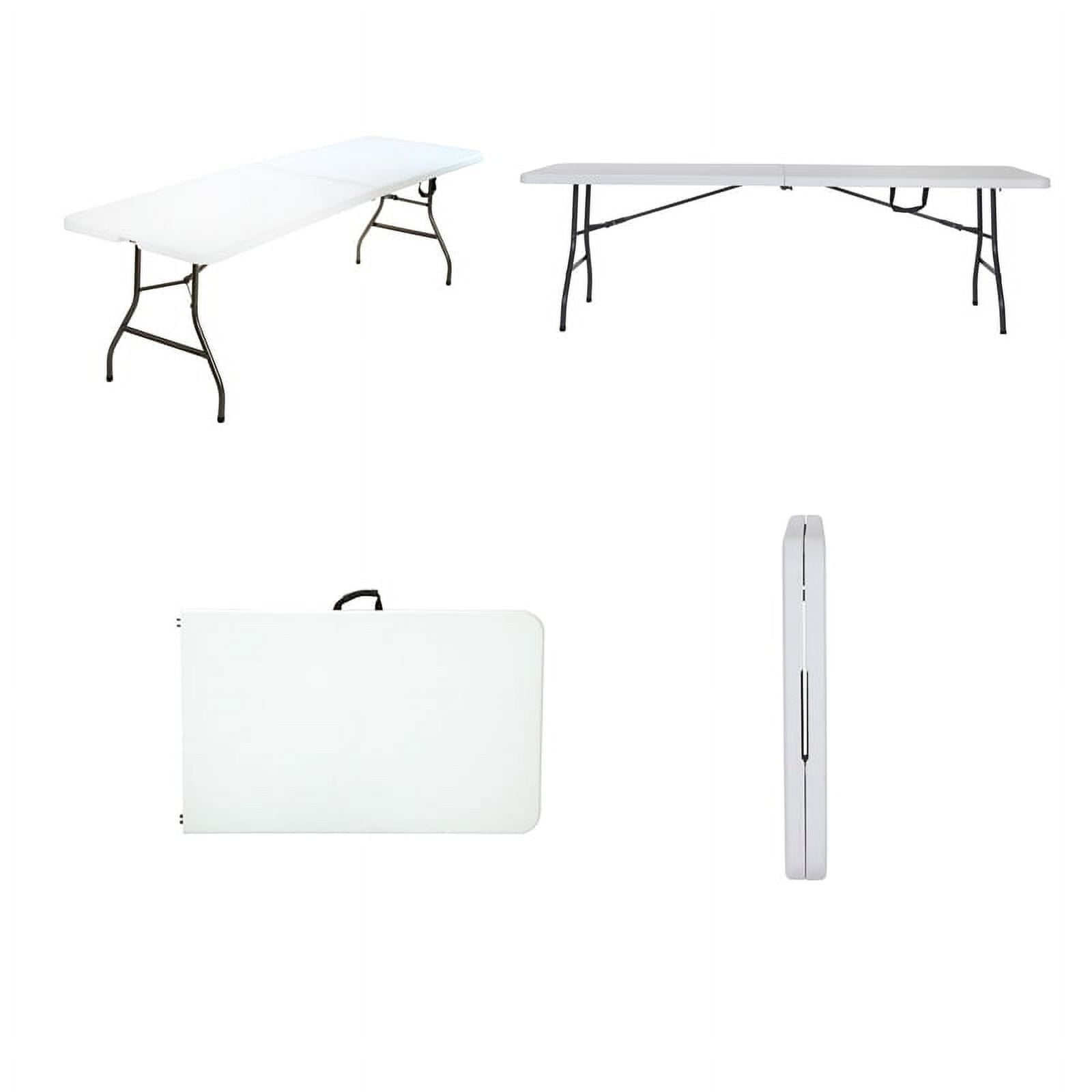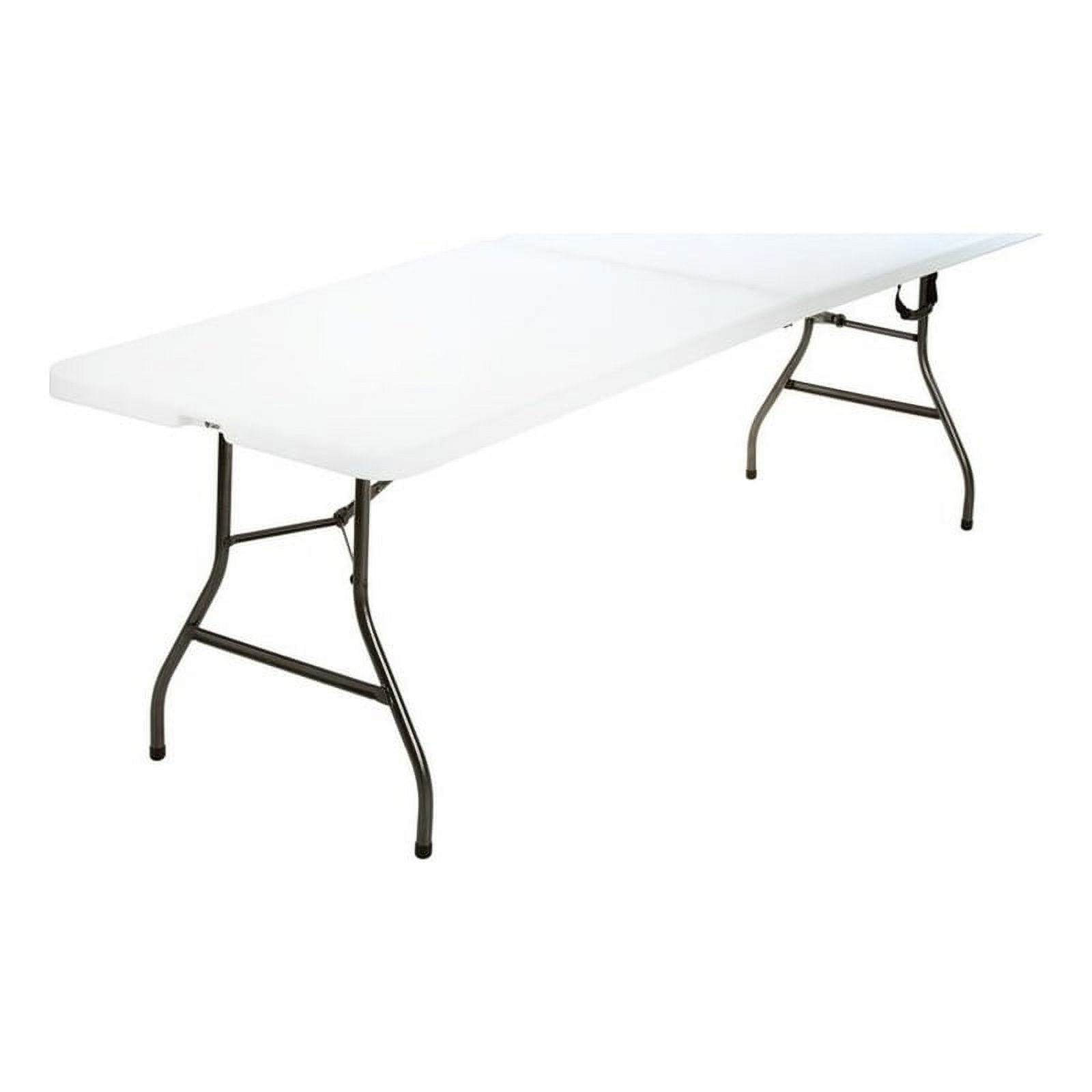COSCO deluxe 8 foot x 30 inch fold-in-half blow molded folding tables cater to any event including birthday parties, holiday gatherings or outdoor barbecues in the summer. They can be dressed up or dressed down depending on your specific needs, making them a multipurpose and versatile product! This table features a waterproof top that resists all manners of messes and elements of weather. When it’s time to take down the table, the efficient features save space and time with legs that fold in and a center folding feature that makes storage virtually effortless! The plastic handle included in the frame make this light weight product easy to carry and transport from place to place. Non-marring leg tips complete this table to ensure floors are not scratched or scrapped during use. The heavy duty strong steel frame, steel legs, and a low maintenance, sturdy easy to clean top will make your next events stress free and ones to remember as you enjoy the moment!