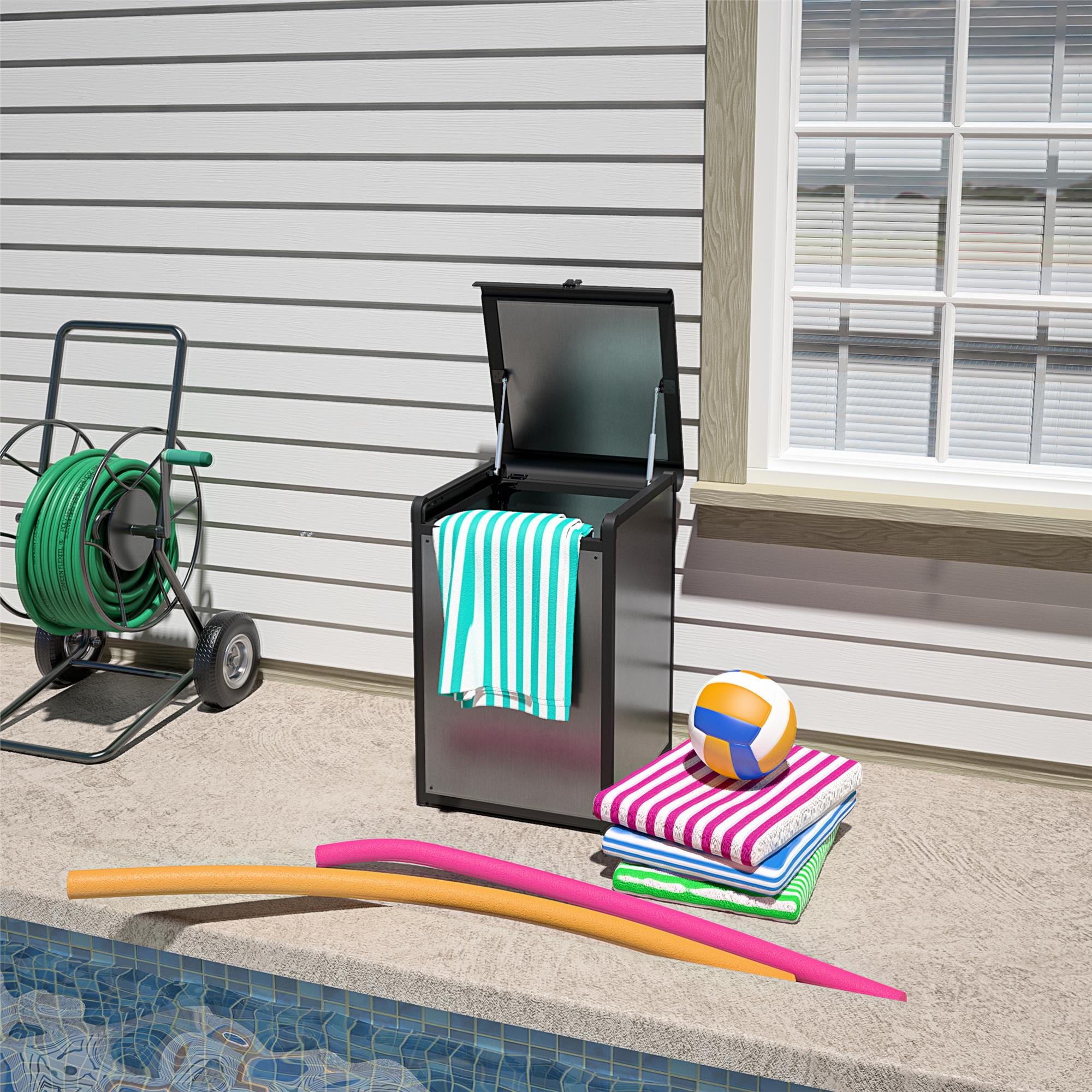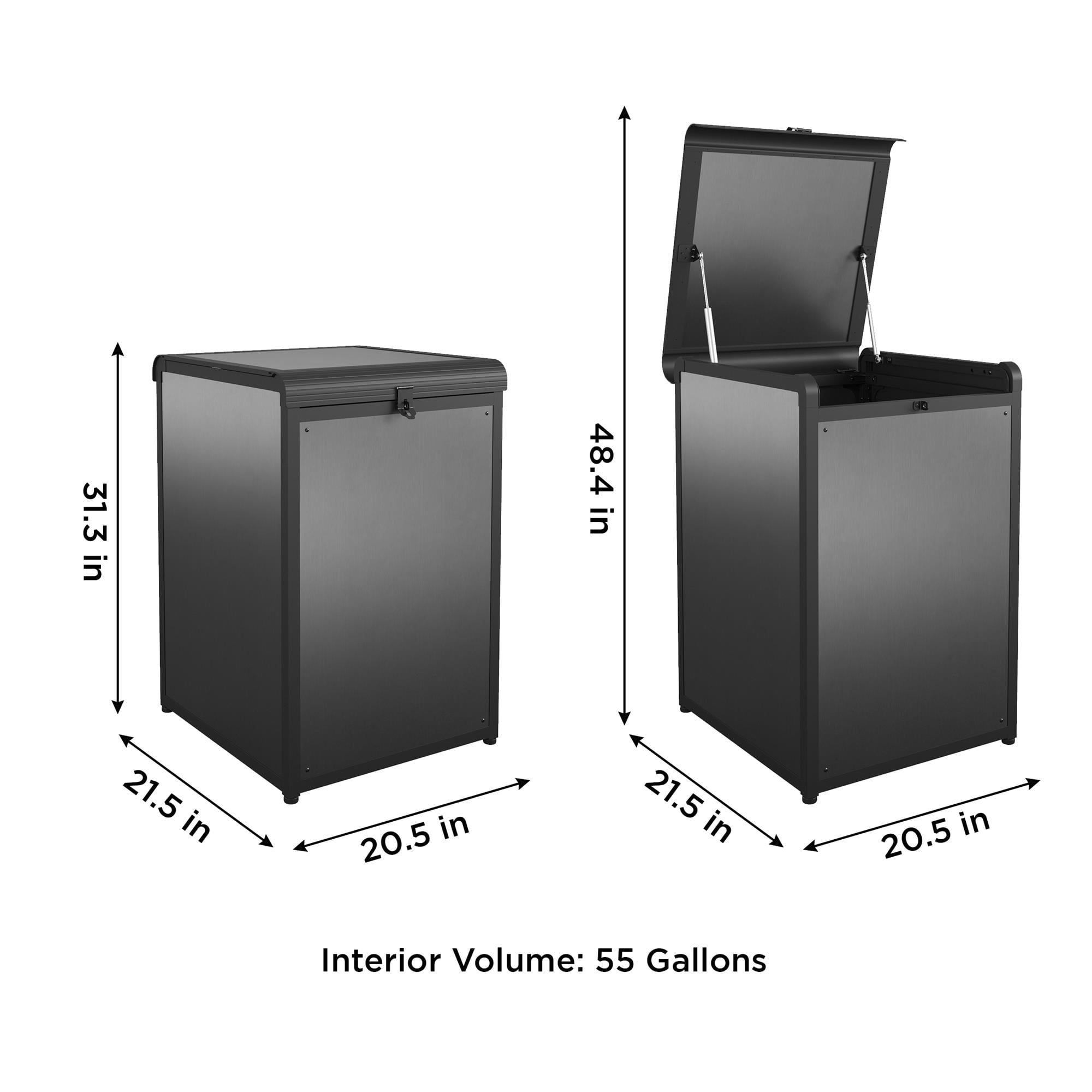 BoxGuard(r)? is a trusted solution for protecting packages from thieves, weather, stray animals, and curious neighbors. BoxGuard(r)? is multi-purpose. Use it as safe storage space in your garage for tools & sports equipment, poolside for toys & towels, or backyard for gardening supplies. Large storage space with 55 gallon interior volume. May hold multiple large package deliveries, mail, food, laundry, or other common shipments Durable aluminum material featuring black frame and gray panels that will compliment a wide range of home exteriors. Two hydraulic hinges hold lid upright to make it easy to place and remove items. BoxGuard(r)? prevents porch theft with option to lock (lock not included). Keep deliveries private, hidden and protected. Designate your package box as your preferred delivery location for mail delivery companies (optional)