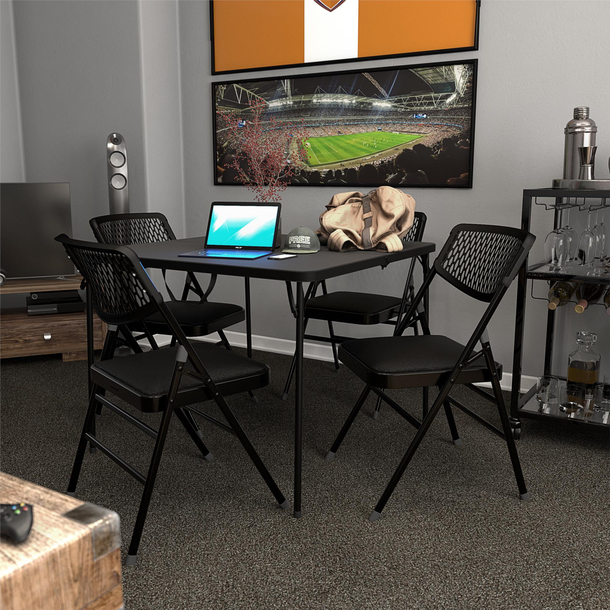 COSCO Commercial Fabric Padded Seat Folding Chair with Resin Mesh Back, Black, 4-pack