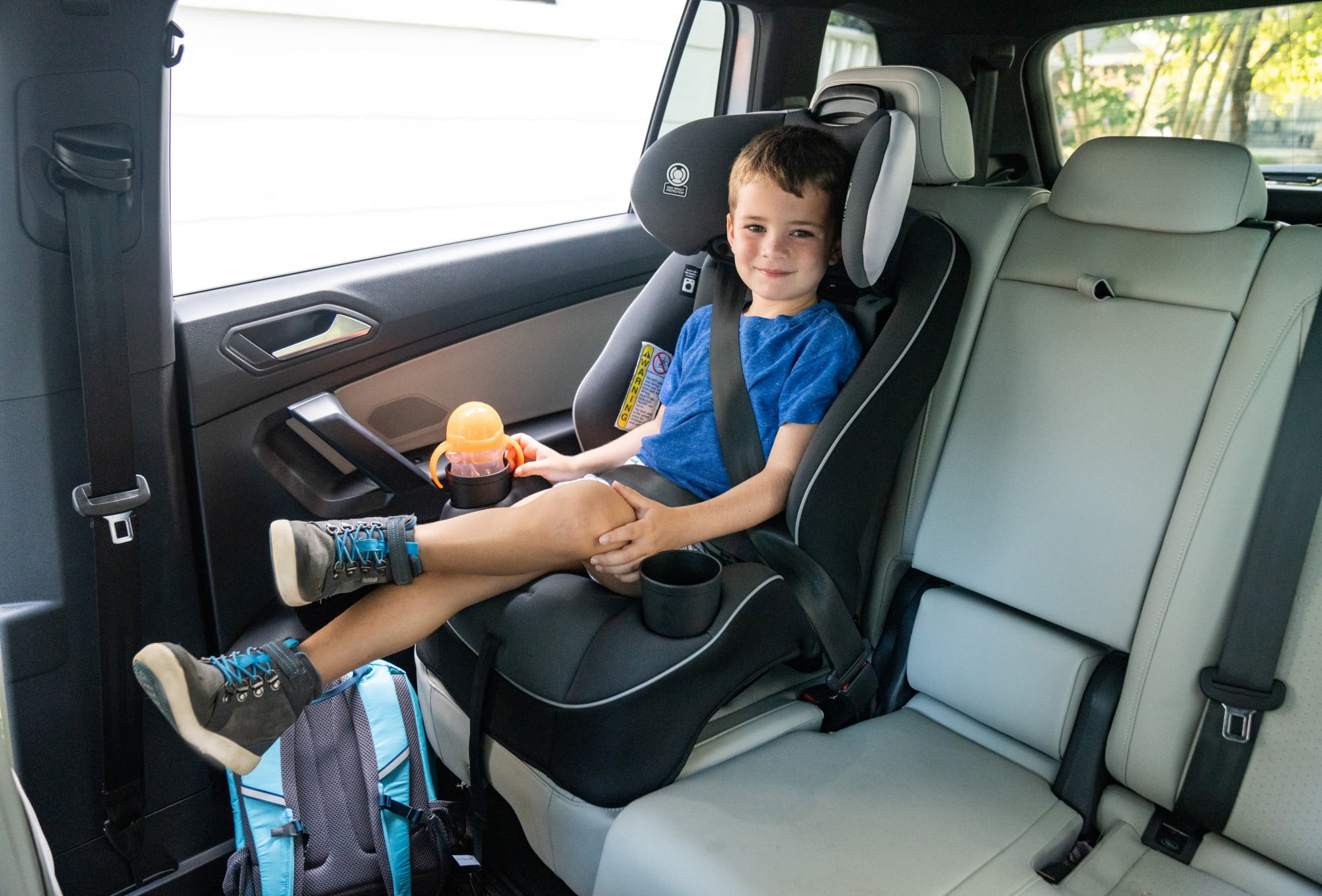 All-in-One Car Seat: Rear-facing 5–40 pounds, Forward-facing harness 30–50 pounds, and Belt-positioning 40–80 pounds Side Impact Protection 5-point harness with easy up-front adjustment Easy-to-use headrest and harness adjust quickly and easily with one hand Fits 3 across the back seat in most cars Body pillow gives a snug fit to smaller babies Machine washable, dryer seat pad 2 removable, dishwasher safe cup holders Recline for a better fit to your car Exceeds Federal Safety Standards