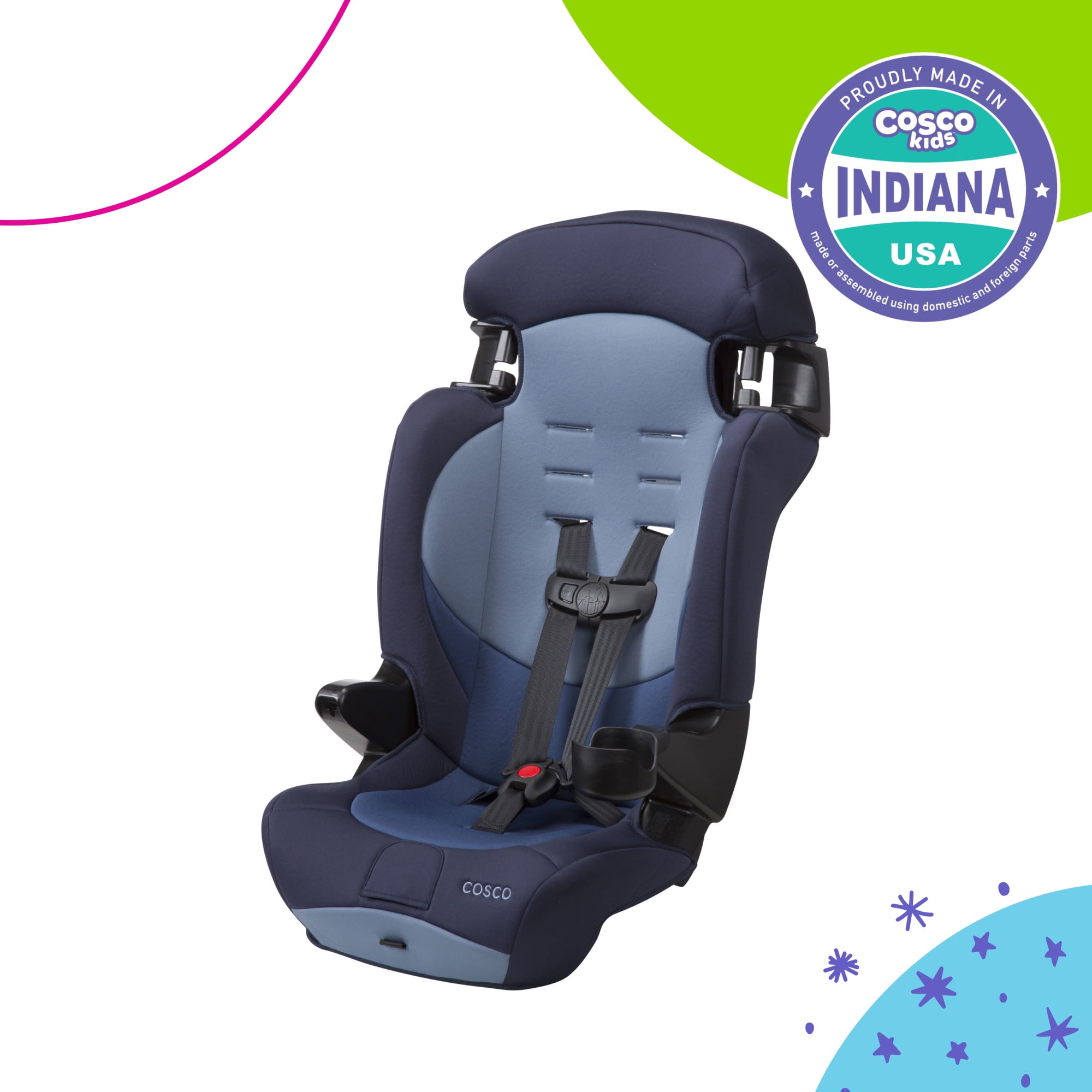 The Cosco Kids Finale DX 2-in-1 Booster Car Seat may be the last car seat you’ll ever need! It features 2 modes of use: forward-facing harness booster with 5-point safety harness (30–65 lbs., and 34.4″–49″), and belt-positioning booster (40–100 lbs. and 43.4″–52″). This booster car seat is lightweight and easy to move from car to car––perfect for carpooling and families on the go. The narrow design fits 3 across in the back seat of most vehicles, making it a smart choice for growing families with multiple kids in car seats at once. Removable seat pad is both machine-washable and dryer-safe. Proudly made in Columbus, Indiana.