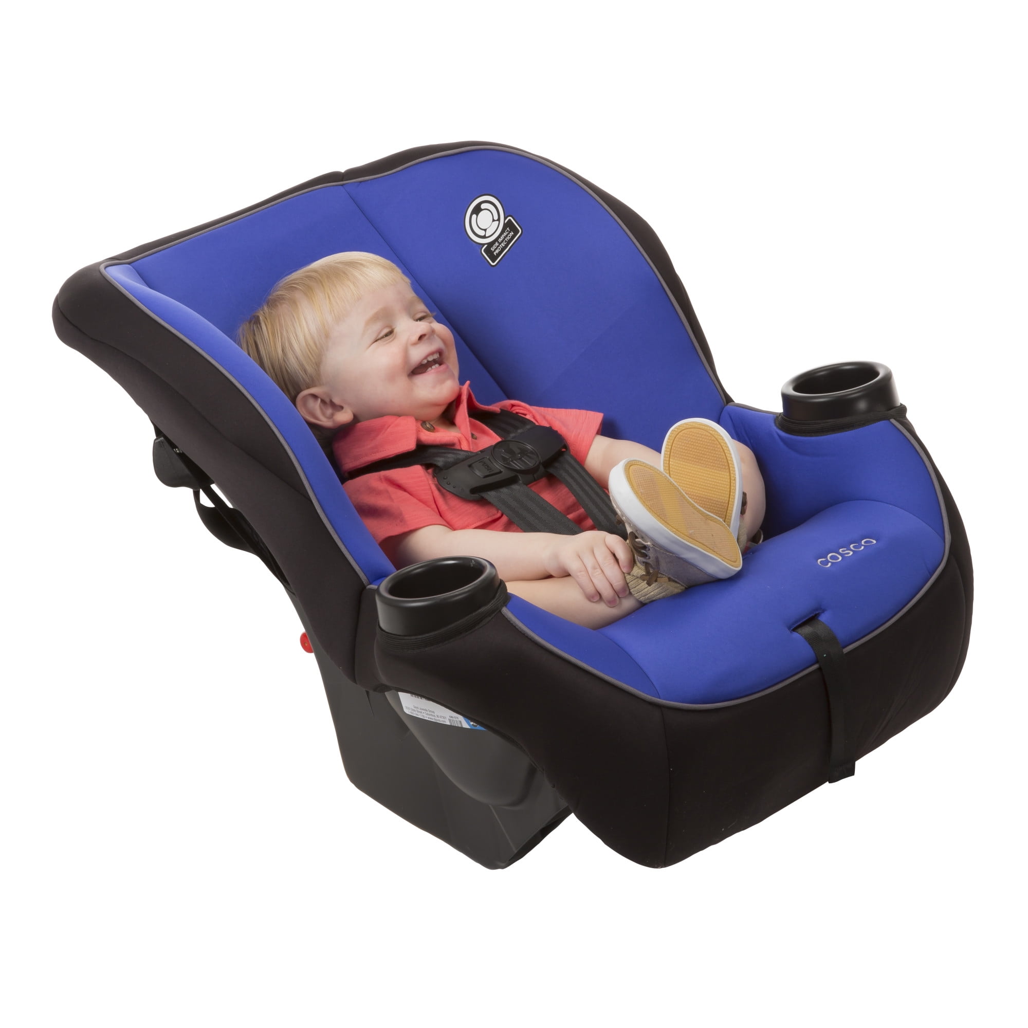 Give your child a comfy rear-facing ride with solid value and smart design… all the way up to 40 pounds! With two modes of use, this LATCH-equipped Cosco Kids™ car seat allows babies to remain in a safer rear-facing position up to 40 pounds. Accommodating your toddler, it can then change to forward-facing position 22 to 40 pounds and 43 inches in height. The five-point harness adjusts easily from the front of the seat and features six heights and three buckle locations. In both the rear-facing and forward-facing modes, built-in side-impact protection keeps your little one extra secure. Easily remove the machine-washable and dryer-safe car seat pad to clean. Perfect for travel, the seat is certified for use on aircraft and gives your child a familiar seat during a flight. This car seat meets or exceeds federal and ASTM safety standards and includes a one-year limited warranty. For more than 70 years, Cosco Kids™ has been a leading children’s products brand recognized for its dedication to safety and value. From bouncers to car seats, swings to strollers, and high chairs to play yards, Cosco Kids™ essential baby products feature solid value and smart design. (Actual fit may vary. Not all children will comfortably fit in the sear for the full weight and height ranges listed.)