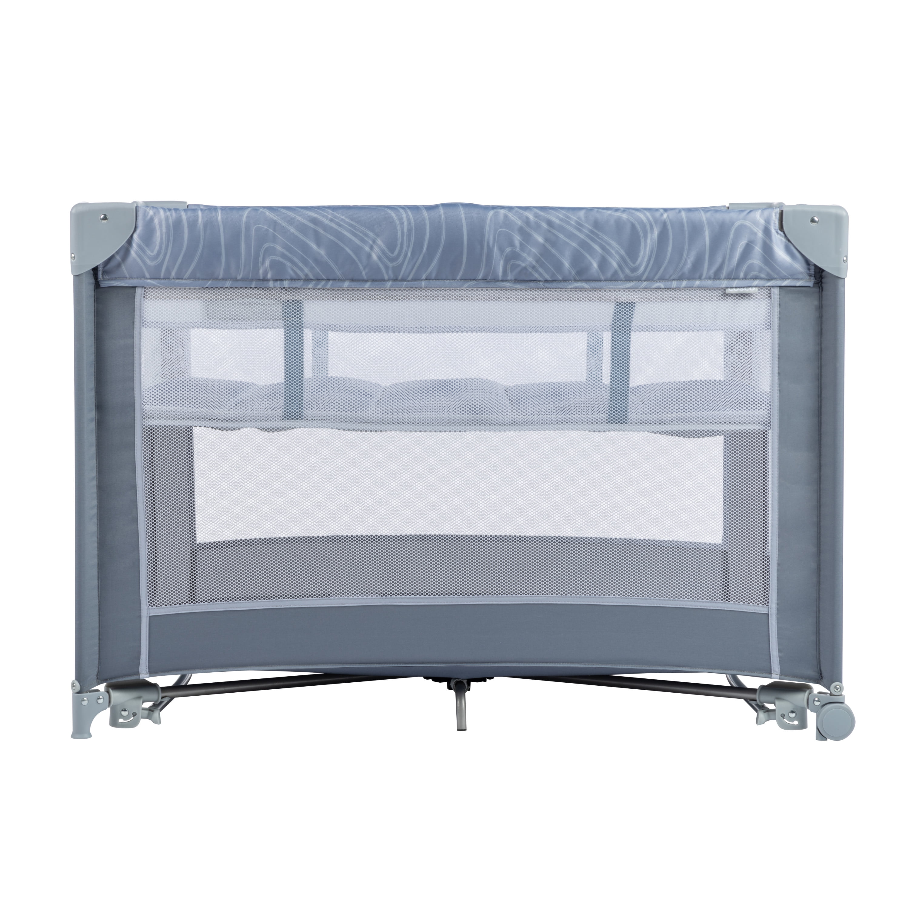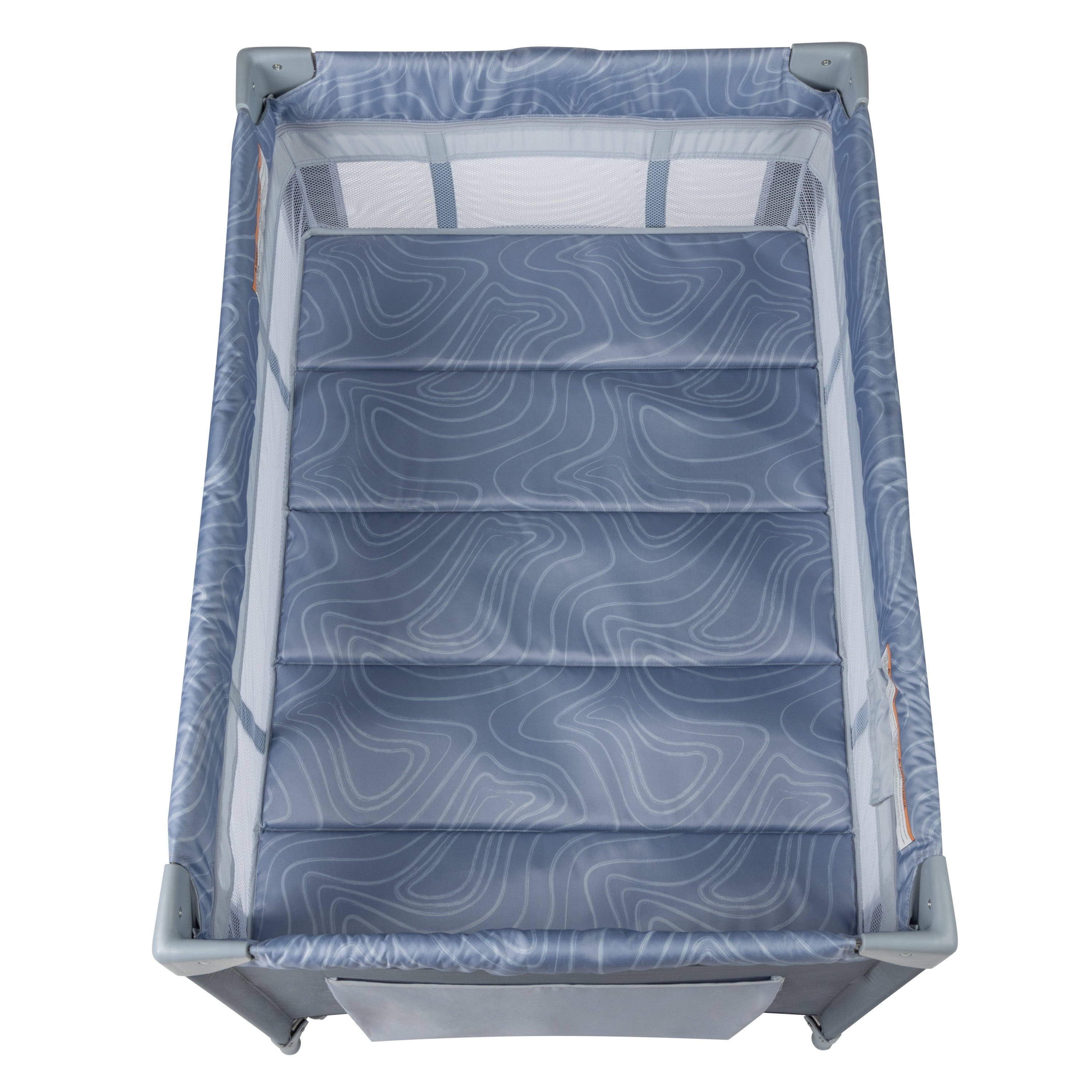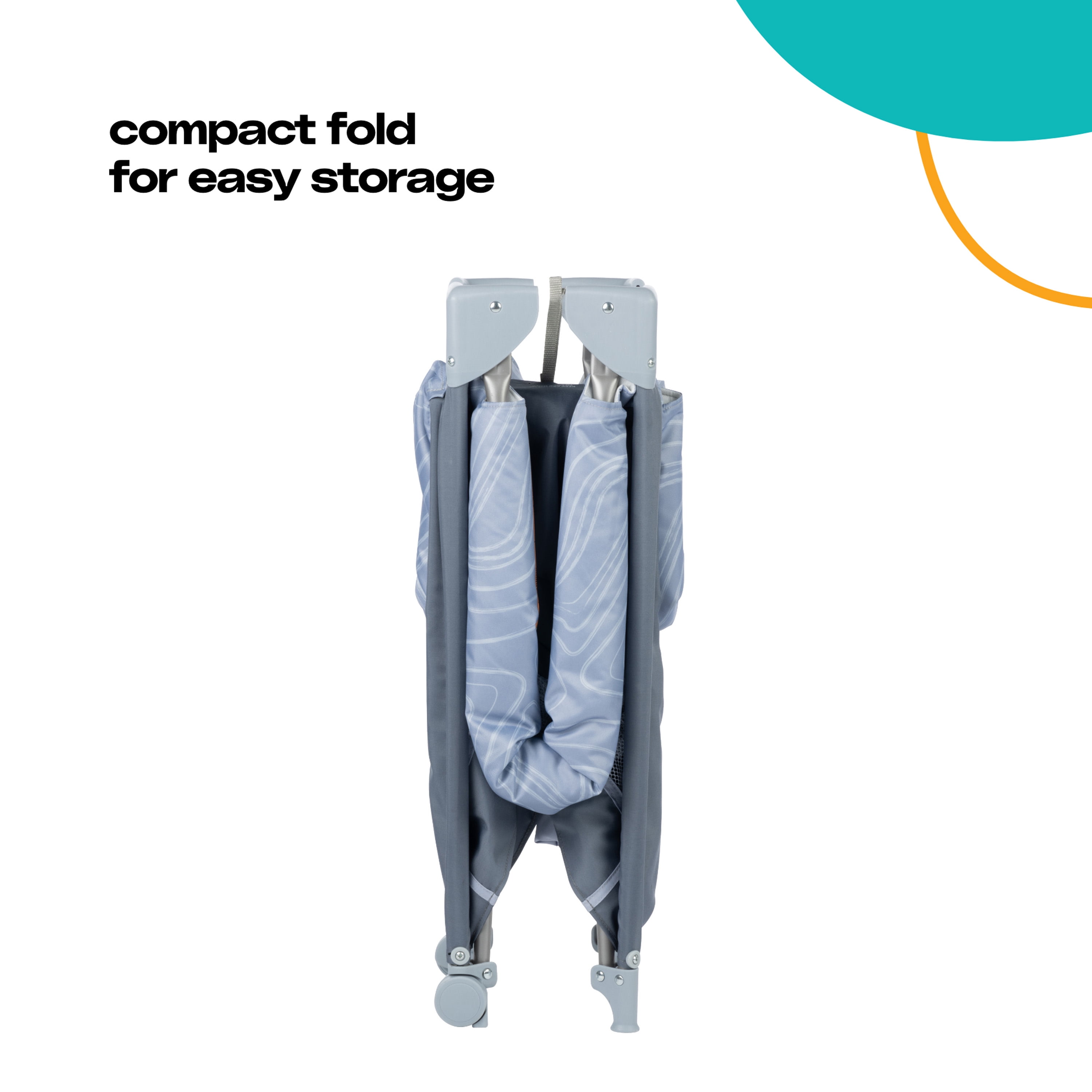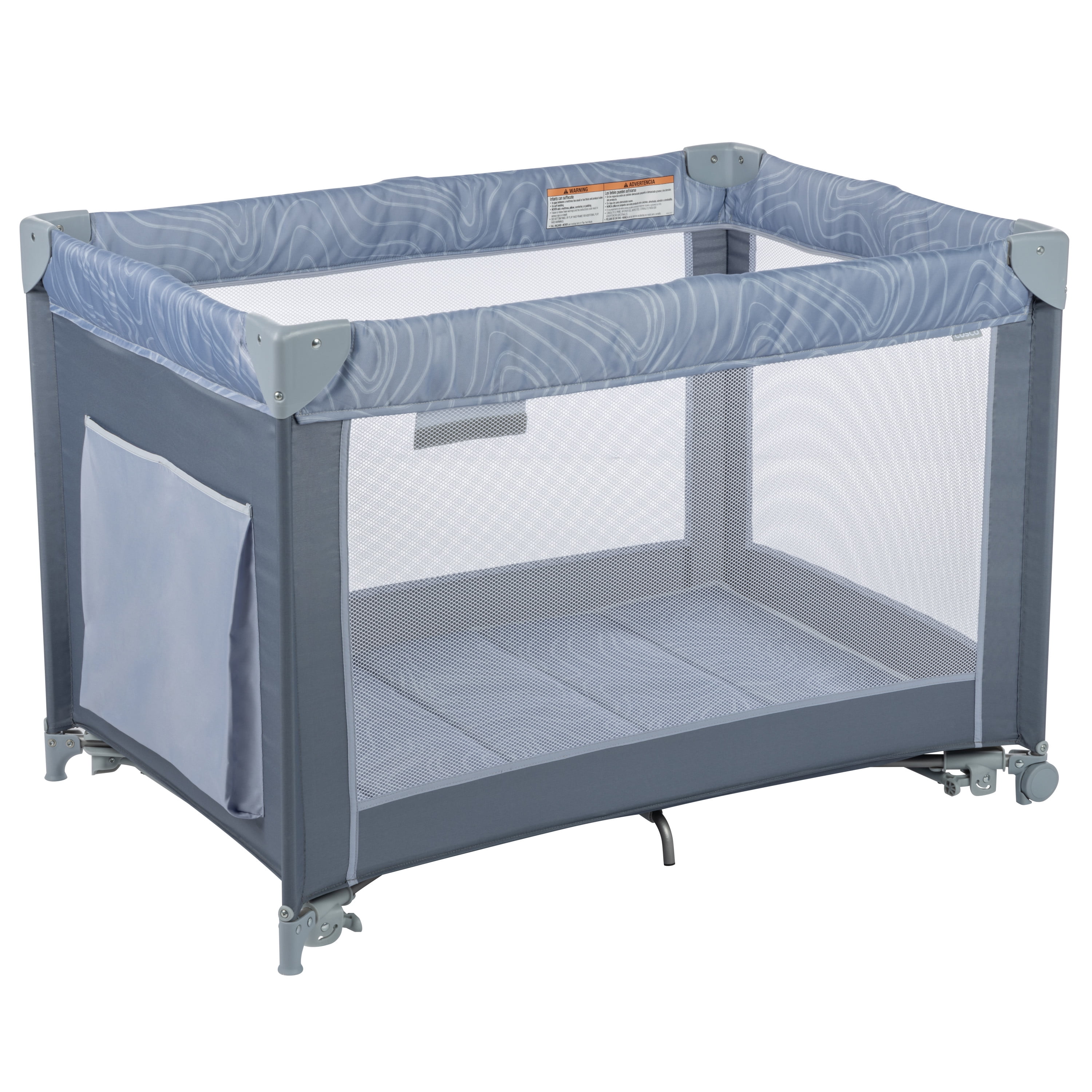 Cosco Kids Rocking Bassinet with Play Yard, Organic Waves 2 bassinet modes of use: gently calm your baby using rocking mode or secure in place in stationary mode Compact fold for easy storage Zip-on infant bassinet Storage compartment for accessories Carry bag for taking on the go Padded floor mat provides extra comfort 3 mesh sides for increased air flow (with the 4th side being a storage pocket) Suitable for babies up to 15 lbs. in bassinet mode and children up to 35” tall when used as a play yard Designed with fabrics made using recycled materials Designed with a firm, flat sleeping surface that meets the Consumer Product Safety Commission’s recommendations for safe sleep