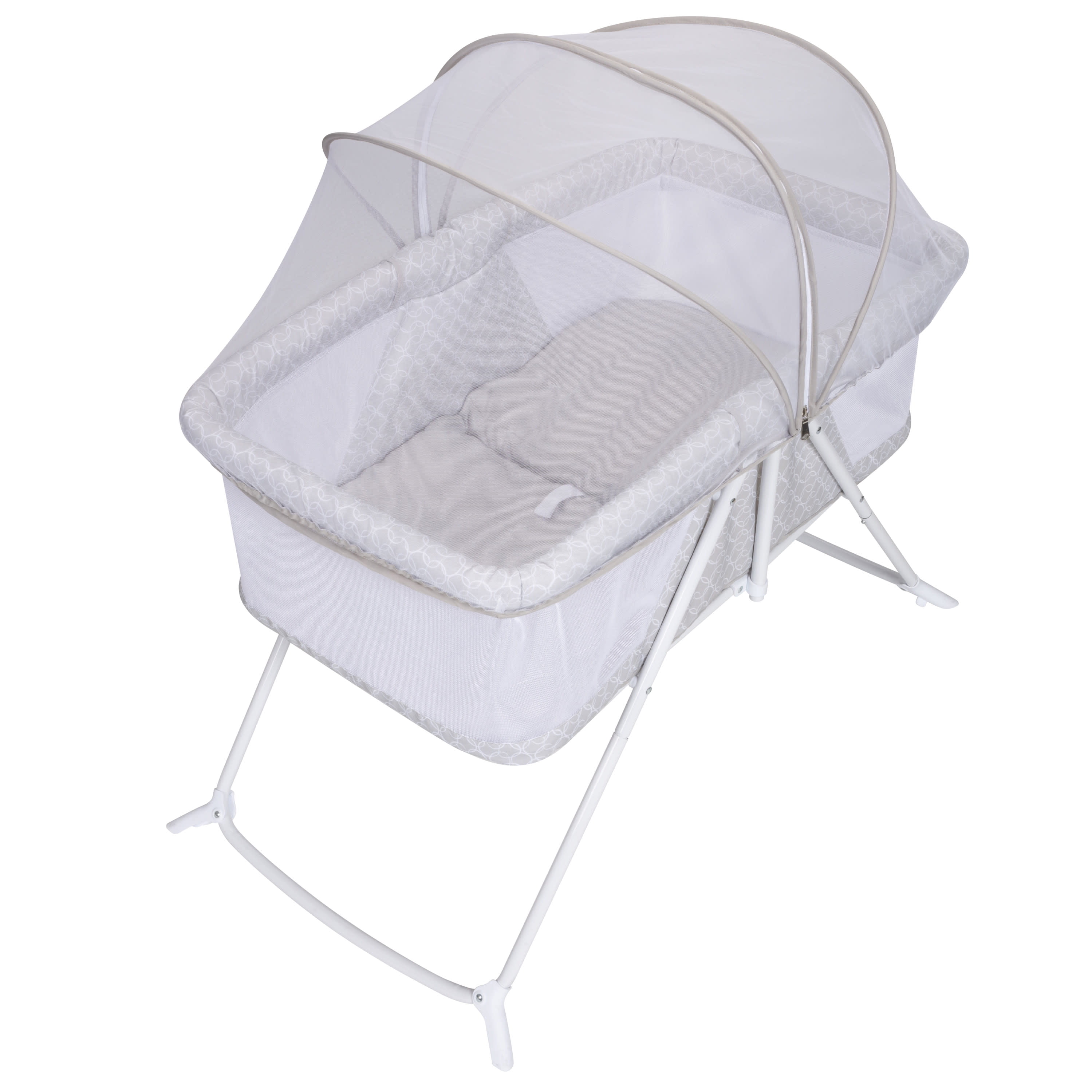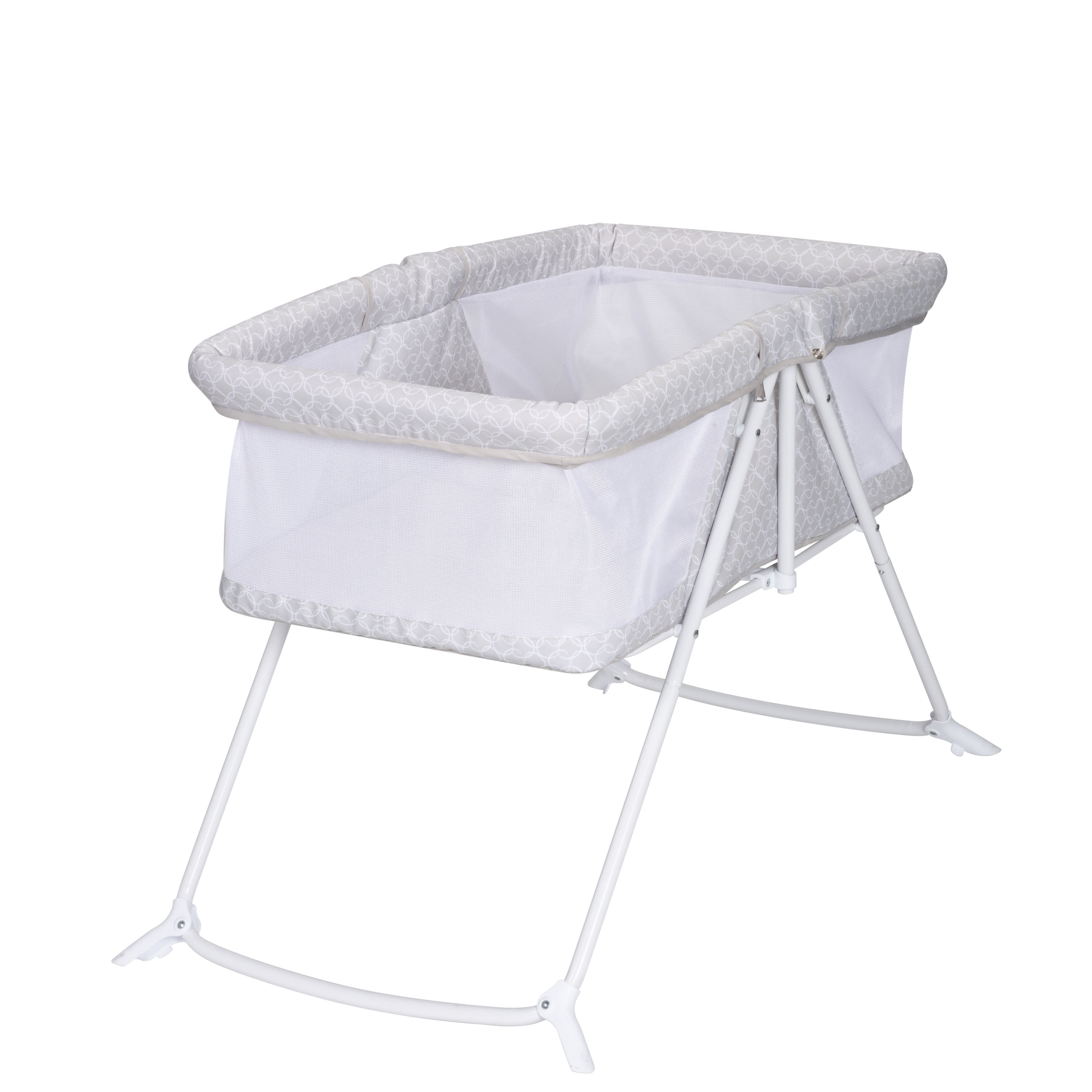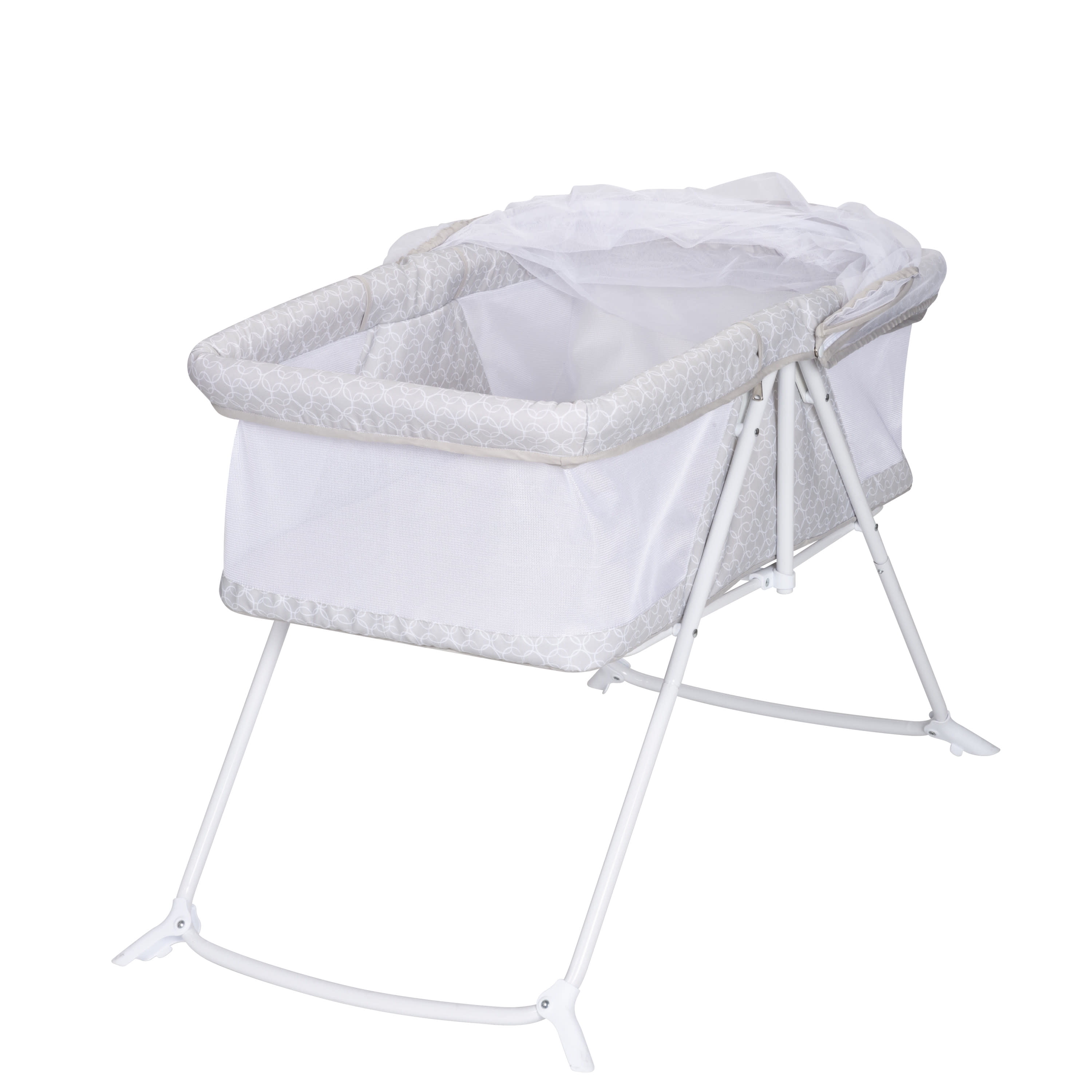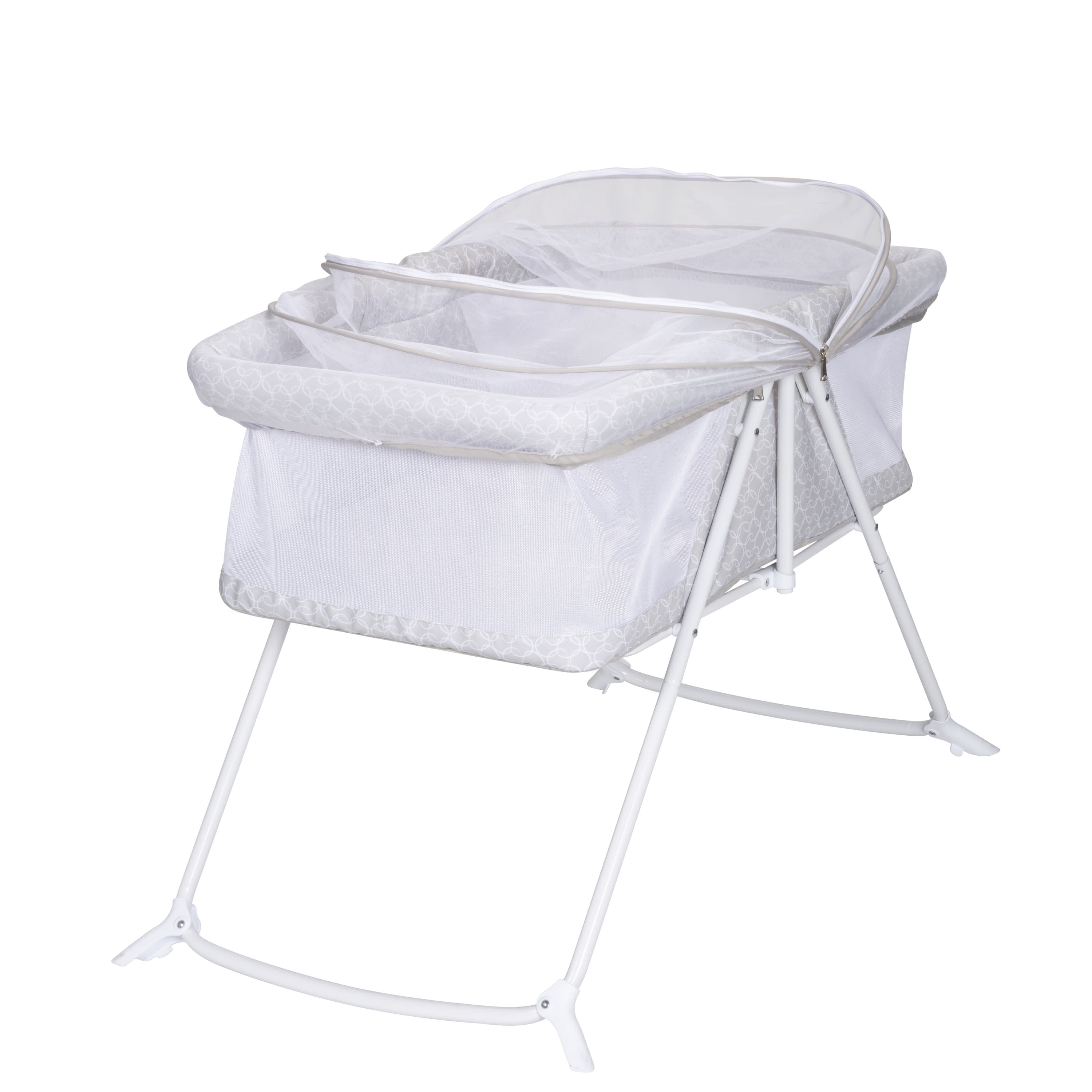 Cosco Kids Sleep Spot Travel Baby Bassinet, Cirque Folds quickly to stow or take on the go Full of breathable mesh on the top and sides Designed for restful sleep Canopy provides extra protection outdoors Rocking mode helps soothe baby Maximum weight limit: 20 lbs. Color Category: Beige Designed with a firm, flat sleeping surface that meets the Consumer Product Safety Commission’s recommendations for safe sleep