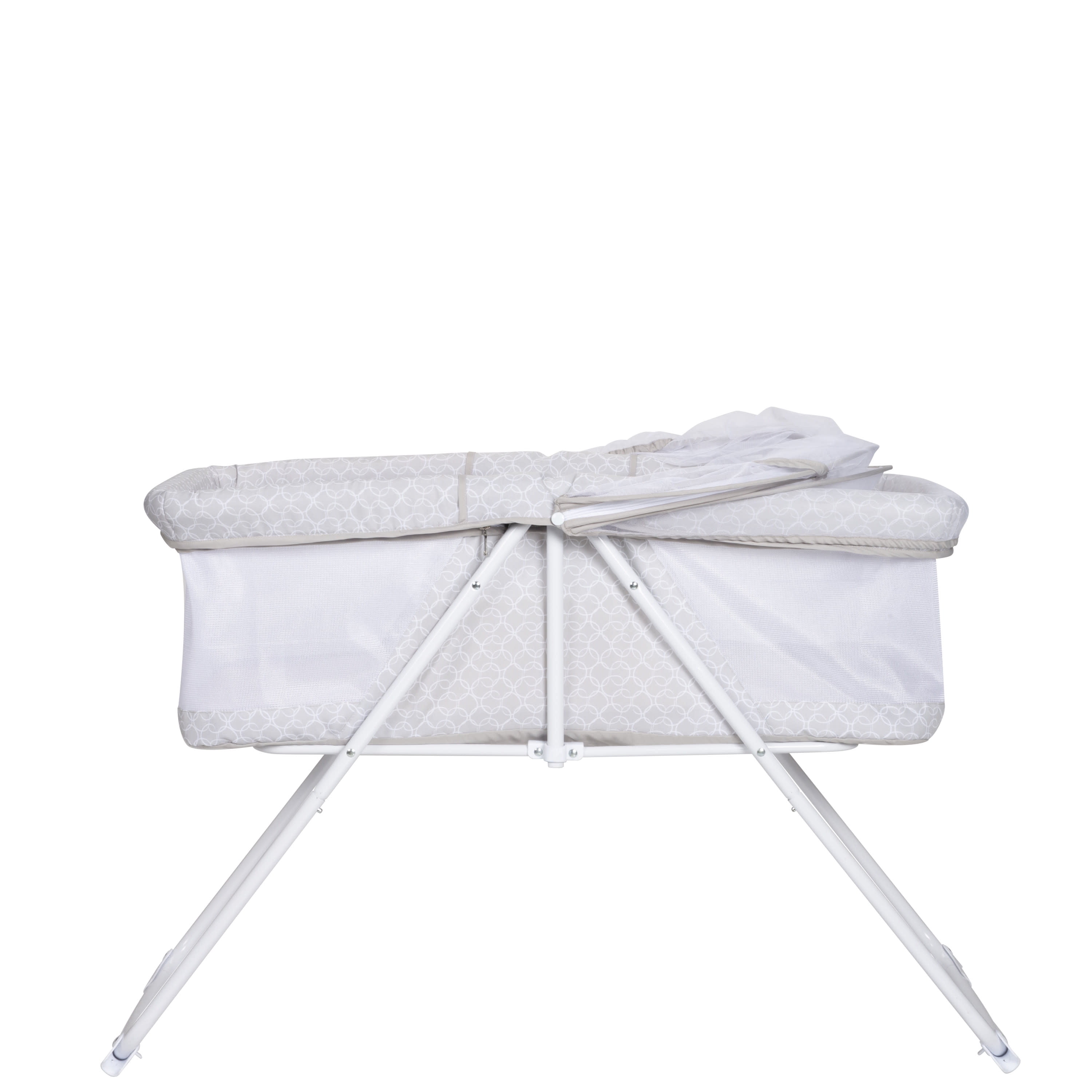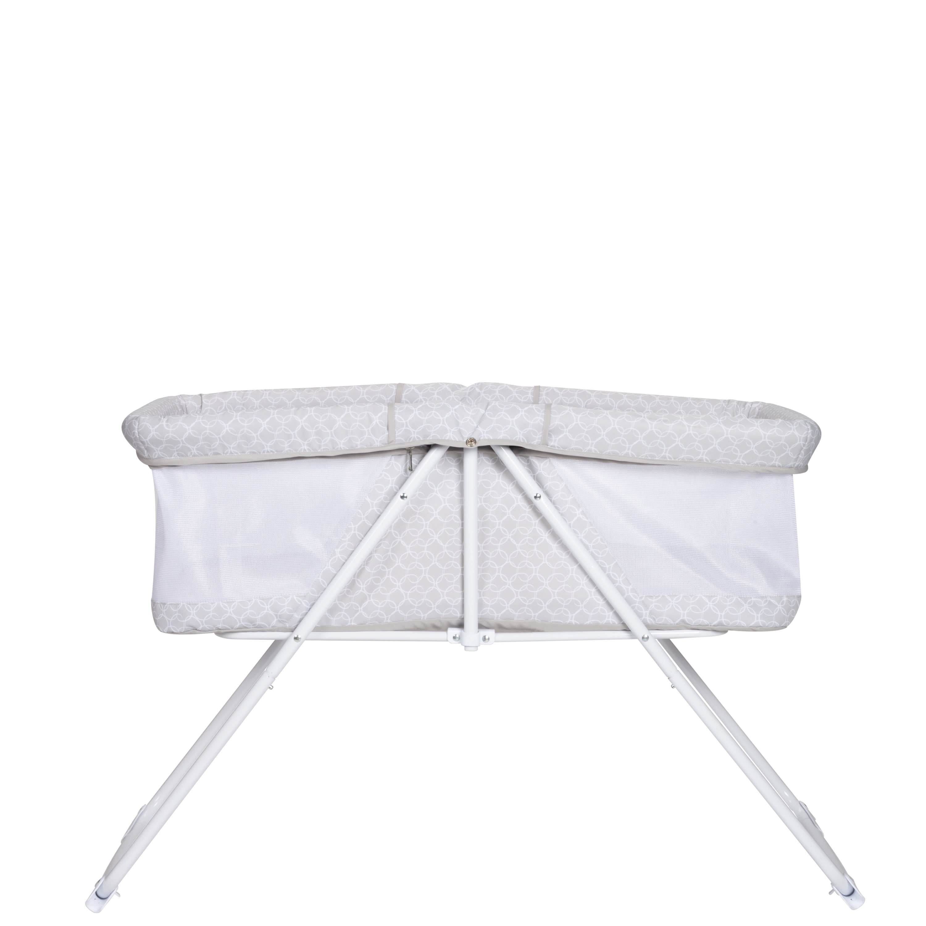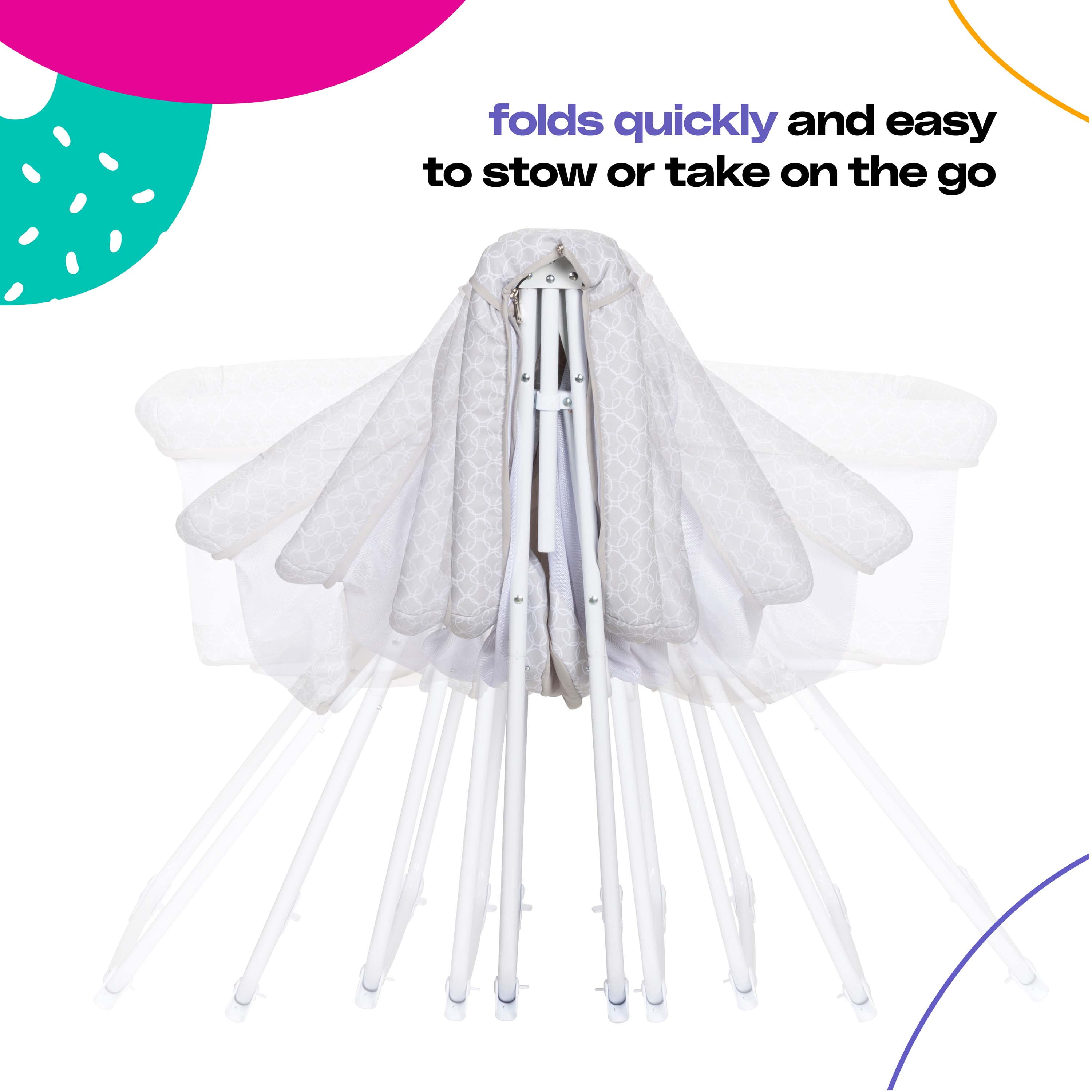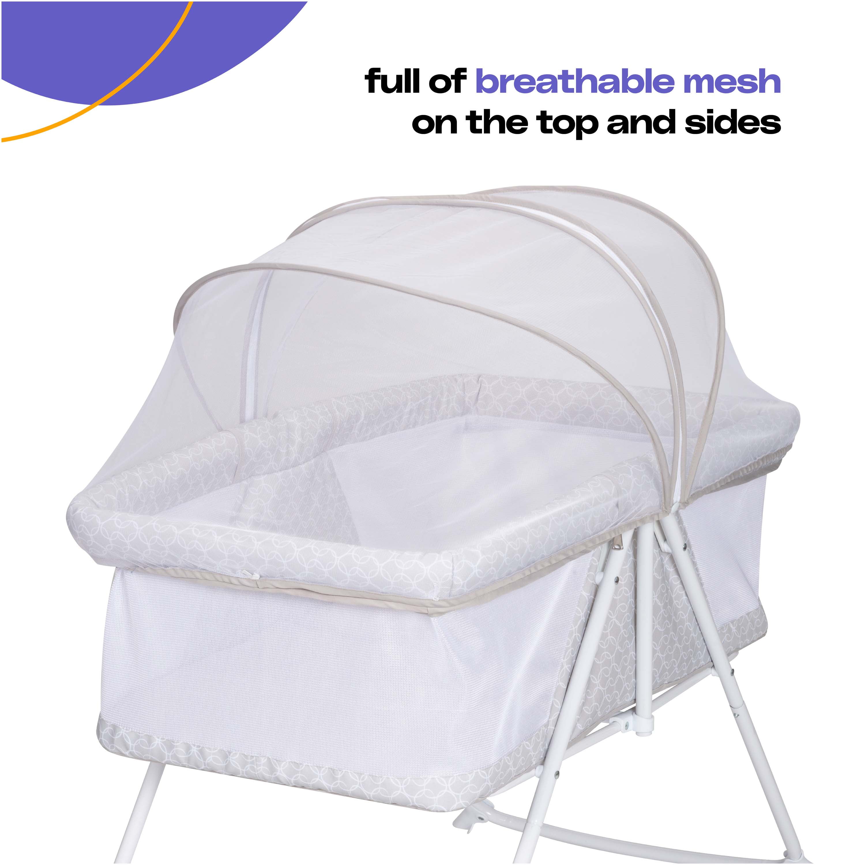 Cosco Kids Sleep Spot Travel Baby Bassinet, Cirque Folds quickly to stow or take on the go Full of breathable mesh on the top and sides Designed for restful sleep Canopy provides extra protection outdoors Rocking mode helps soothe baby Maximum weight limit: 20 lbs. Color Category: Beige Designed with a firm, flat sleeping surface that meets the Consumer Product Safety Commission’s recommendations for safe sleep