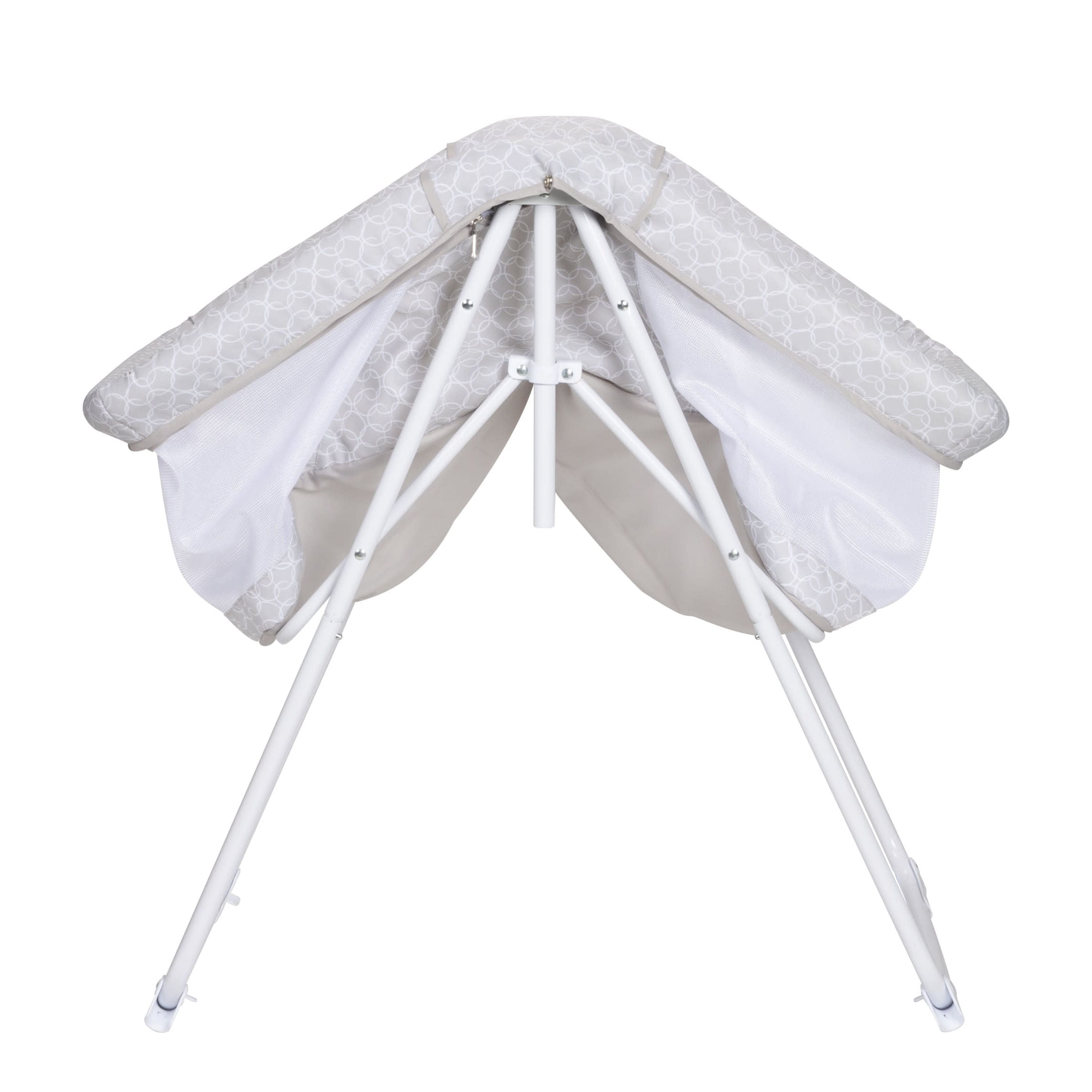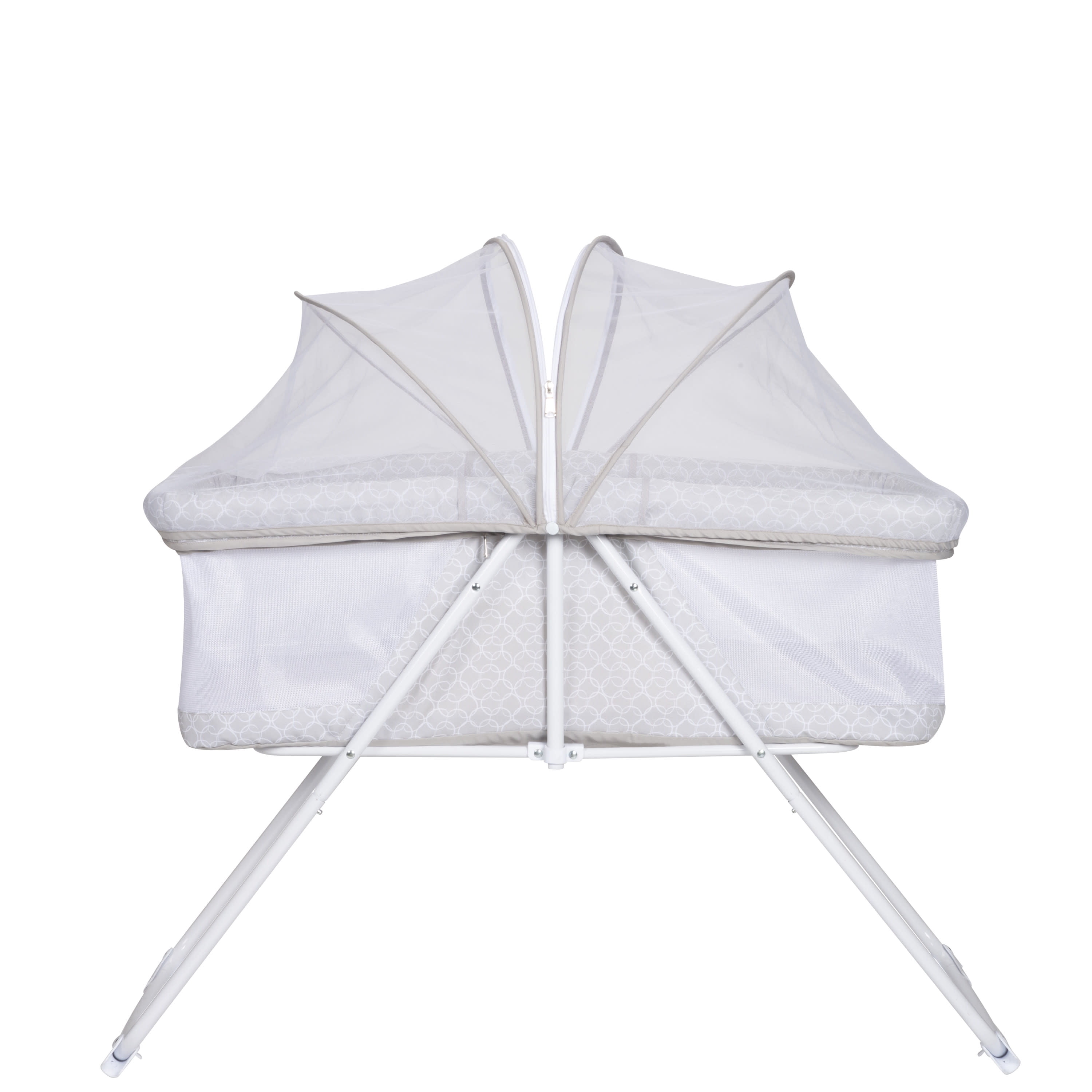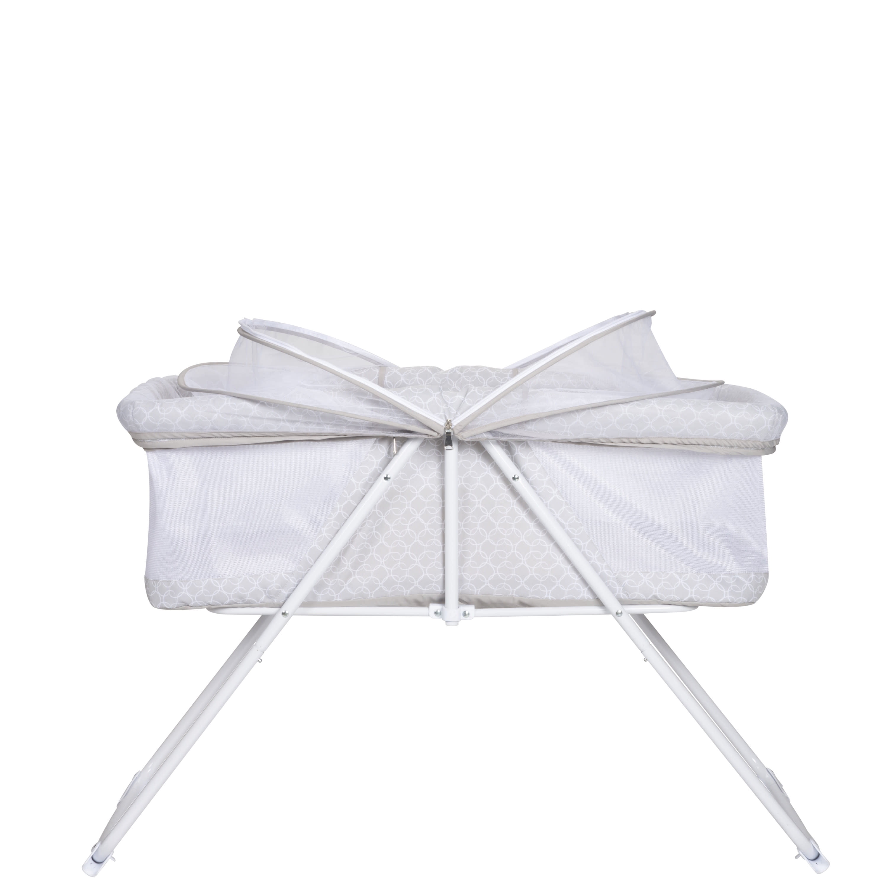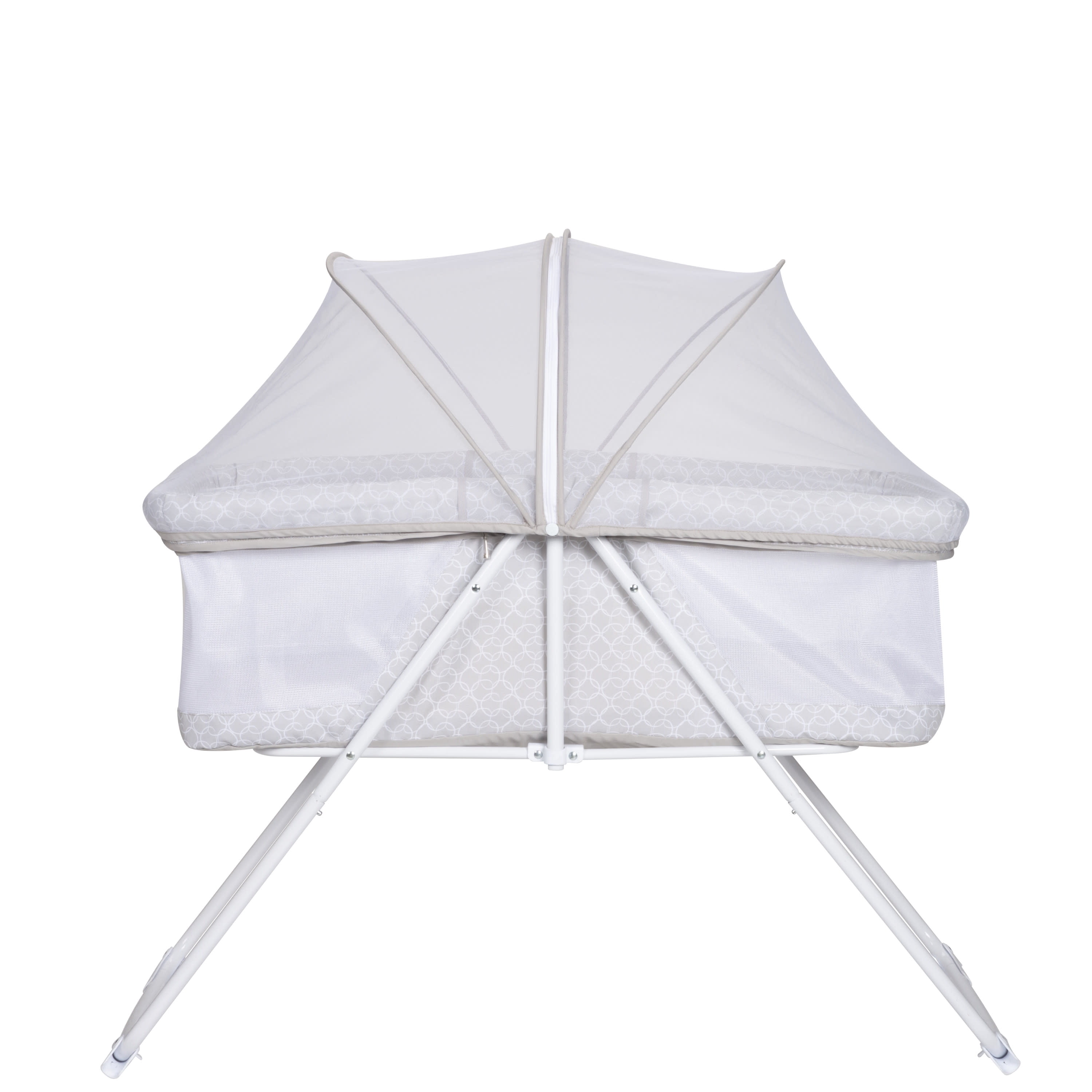 Cosco Kids Sleep Spot Travel Baby Bassinet, Cirque Folds quickly to stow or take on the go Full of breathable mesh on the top and sides Designed for restful sleep Canopy provides extra protection outdoors Rocking mode helps soothe baby Maximum weight limit: 20 lbs. Color Category: Beige Designed with a firm, flat sleeping surface that meets the Consumer Product Safety Commission’s recommendations for safe sleep