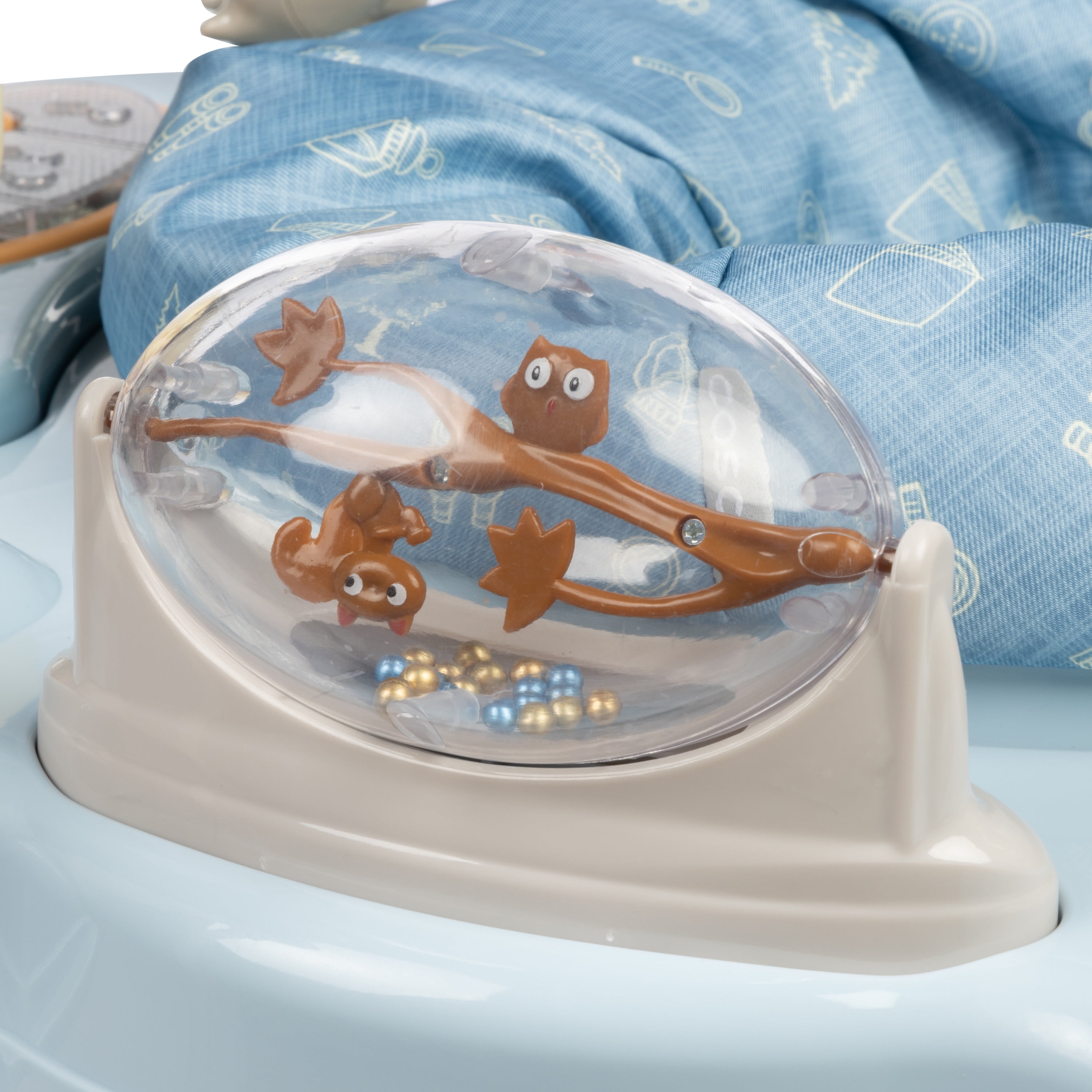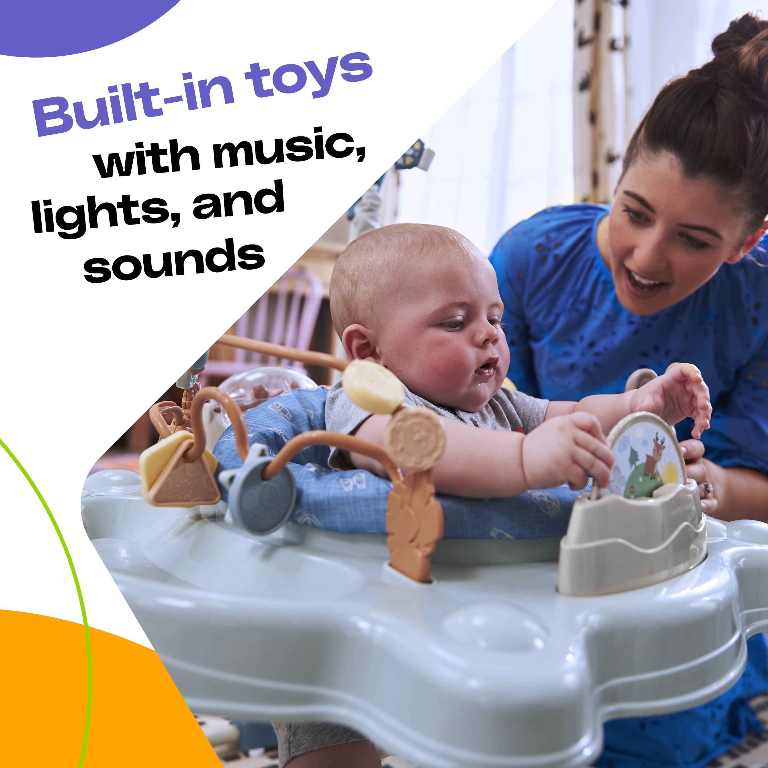 Cosco Kids Twirl-and-Bounce Activity Center, Forest Friends 3-in-1 play center, bouncer, and jumper Legs detach for compact storage Built-in toys with music, lights, and sounds Seat spins 360° 3-position adjustable height Removable, machine-washable seat Assembled Dimensions: 34.45 in x 34.45 in x 38.39 in
