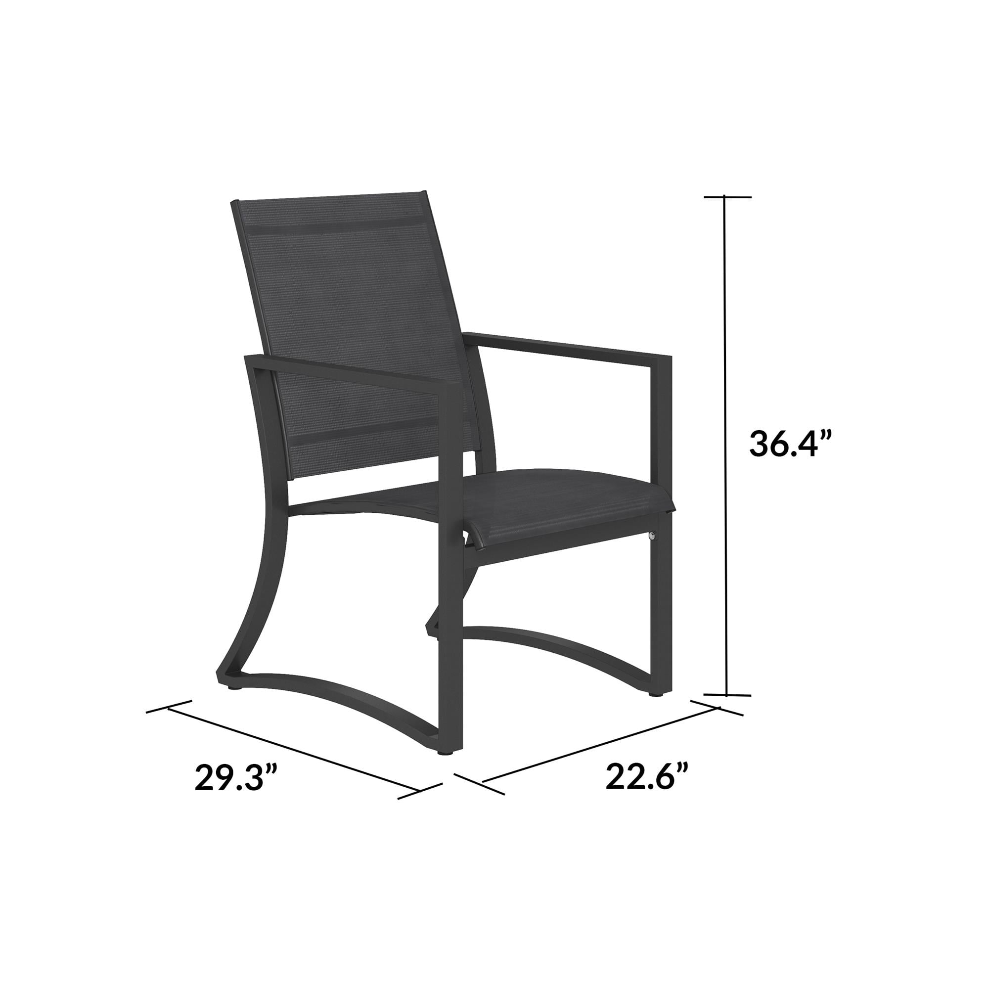 COSCO Outdoor Furniture, Patio Dining Chairs, 6 pack, Steel, Navy Sling Cosco’s Capitol Hill outdoor furniture collection features 6 chairs with an innovative leg design Patio chair’s thoughtfully designed flat leg base and convenient back carrying bar allow you to confidently relax in your lawn without sinking in Dimensions- Patio Chair: 22.64″ W x 29.33″ D x 36.42″ H and 15.84 lbs per chair Durable, weather-resistant powder coated charcoal steel frame and stylish deep navy sling Seating weight capacity of 250 lbs