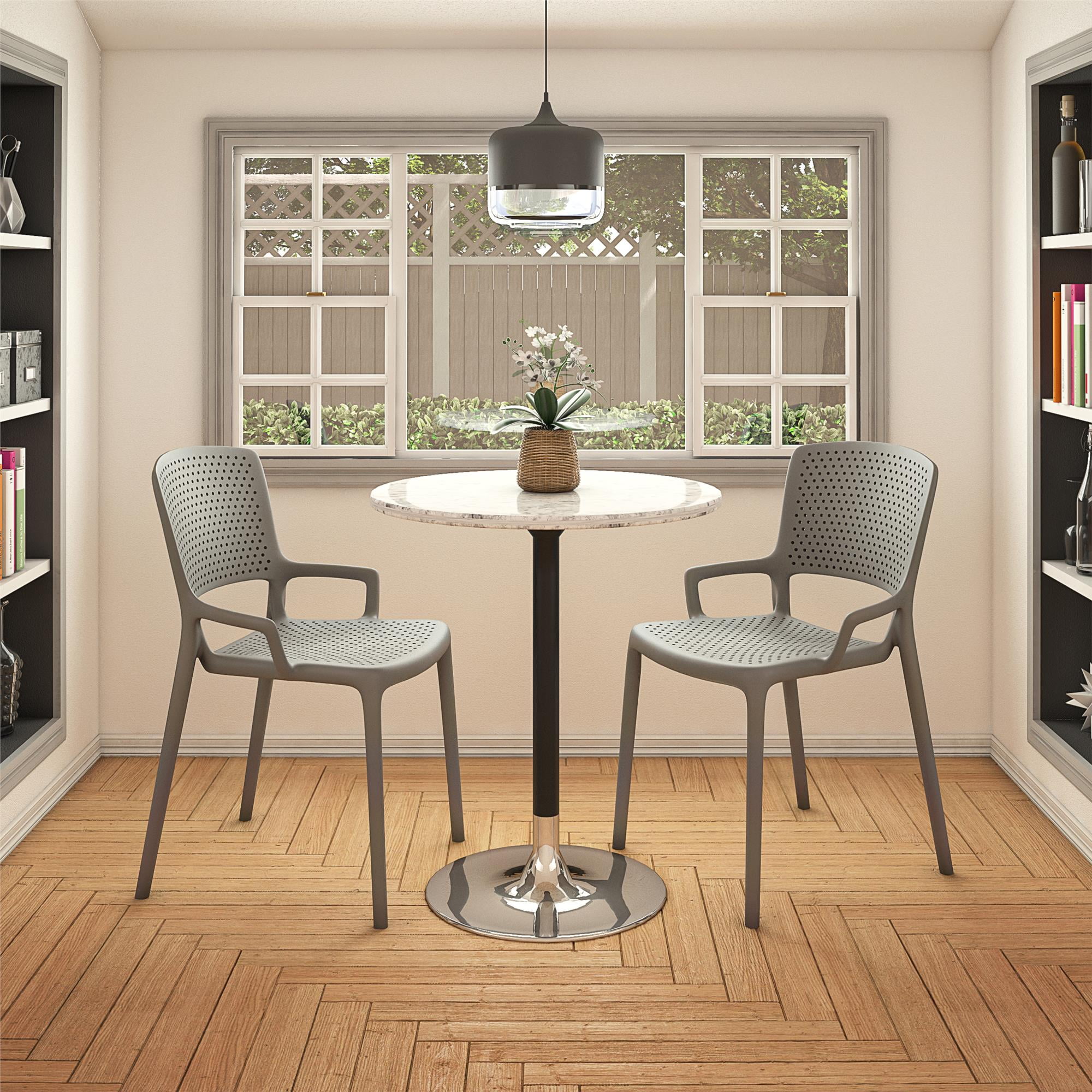 Ideal for both indoor and outdoor use, making it great for dinner parties or backyard barbecues. Available in a trendy gray color to update your dining aesthetic. With no assembly required, these chairs easily stack and store. Easy to clean and constructed using durable and weather resistant materials to withstand the outdoor elements. Designed with small holes in the back of the chair for ventilation and arm rests for added comfort. Features a 250lbs. weight capacity rating.