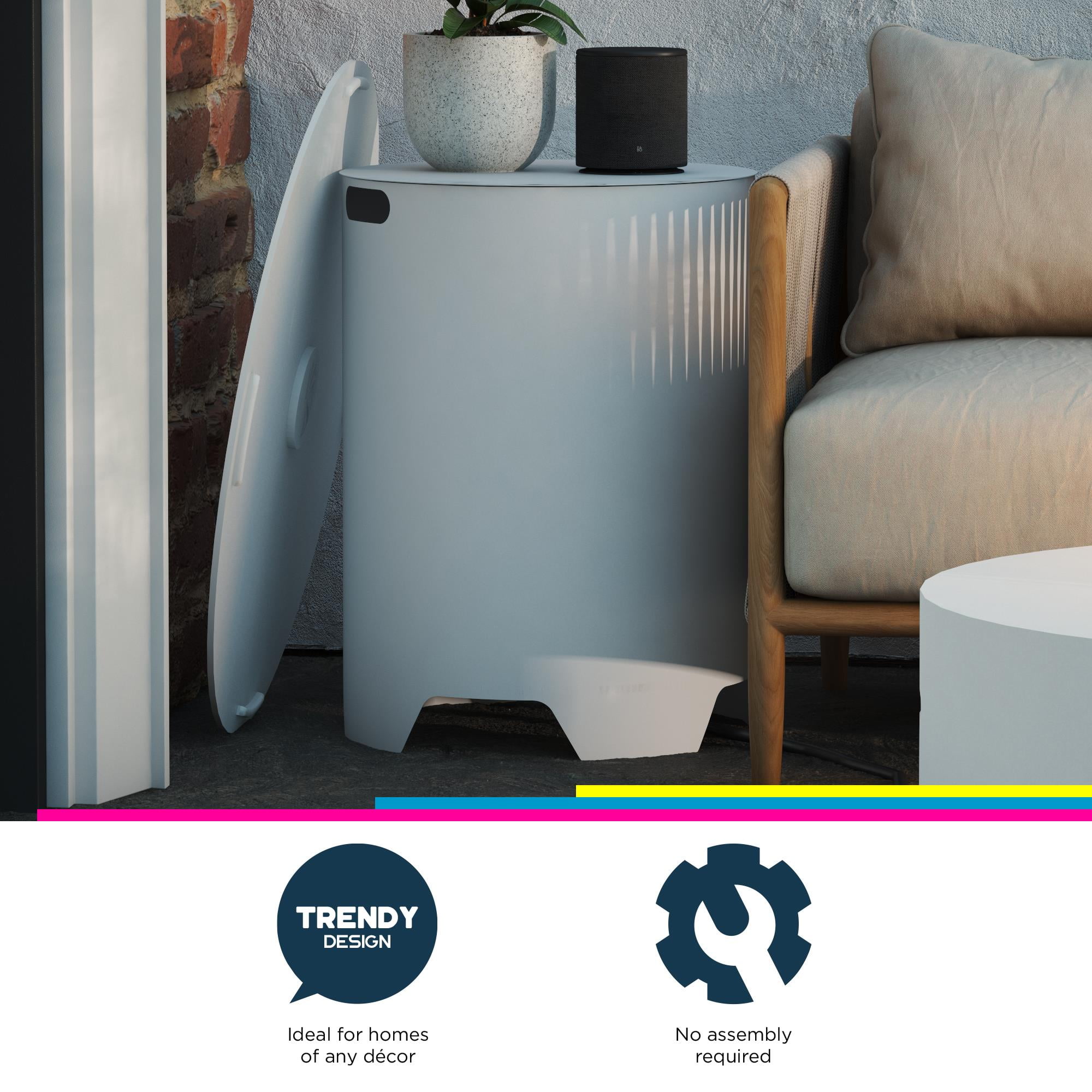 All-steel construction and durable classic white powder coating provides year-round enjoyment Simple, clean lines translate into a modern piece of decor Protect your fuel tank from the outside elements and prying eyes with this tasteful and purposeful hideaway The lid fits snugly into the propane tank housing and voila…instant accent table or plant stand! Tank dimensions: 14.6″ diameter x 20.1″ H. Fire pit sold separately