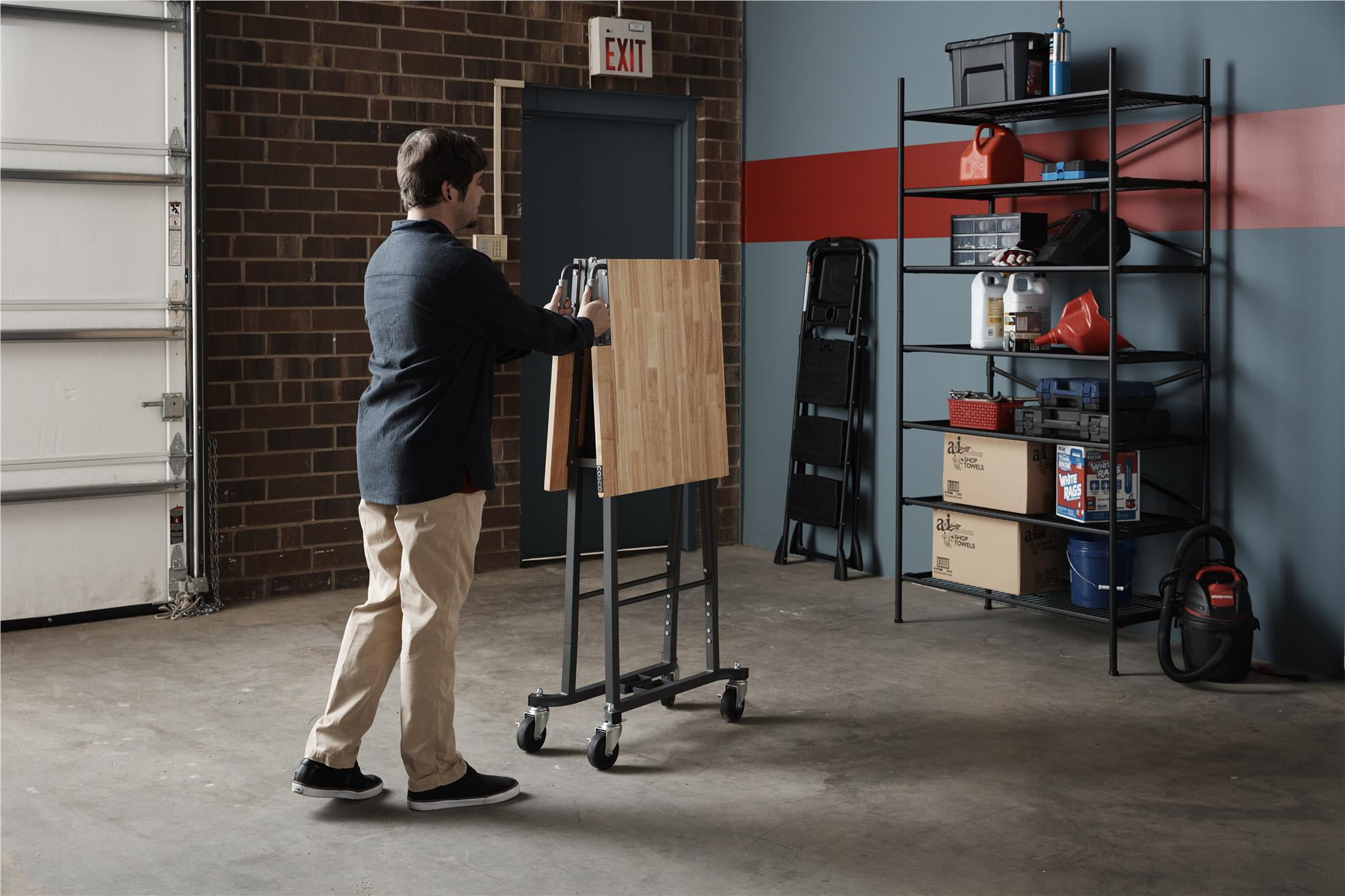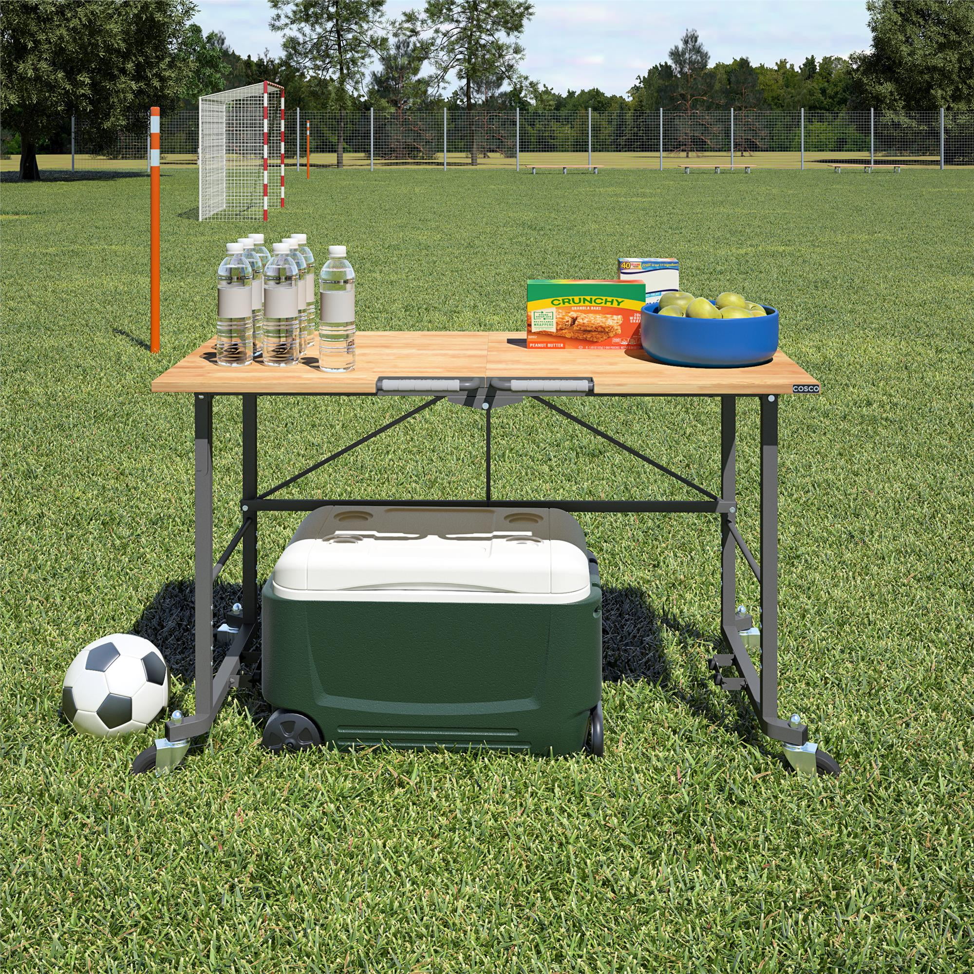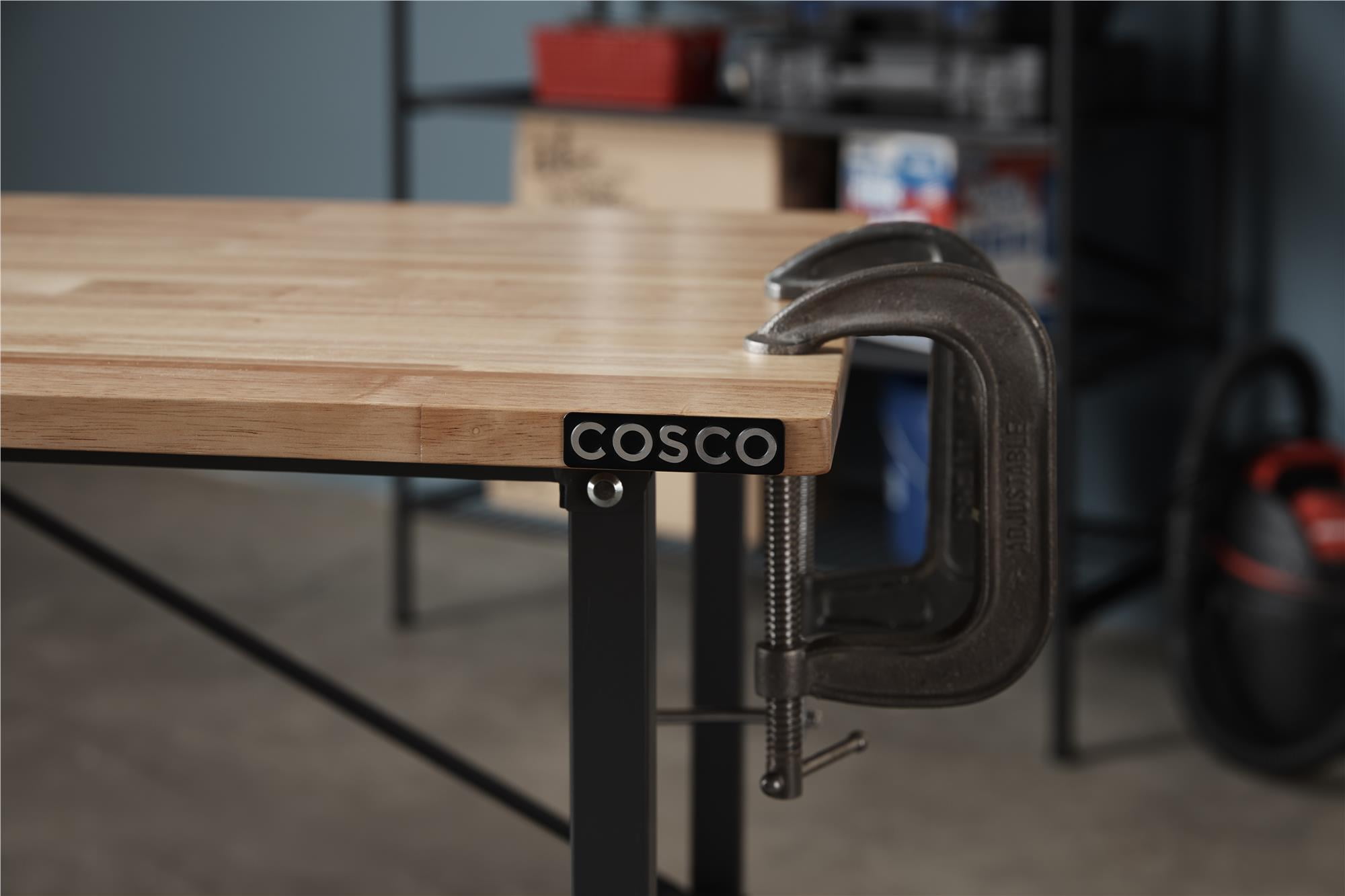 Take the SmartFold portable work desk anywhere the work is. When your work is done, simply fold and store away. Made with industrial-strength steel, this utility table has a weight capacity of 400 pounds on the Hardwood top shelf. The two locking casters allow you to keep it in place while you work. Folds in seconds, saving you time and storage space. With plenty of leg room under the desk top and a large working surface, this versatile work desk is ready to handle any DIY project. For generations, COSCO has been your source for Trusted Solutions(tm).