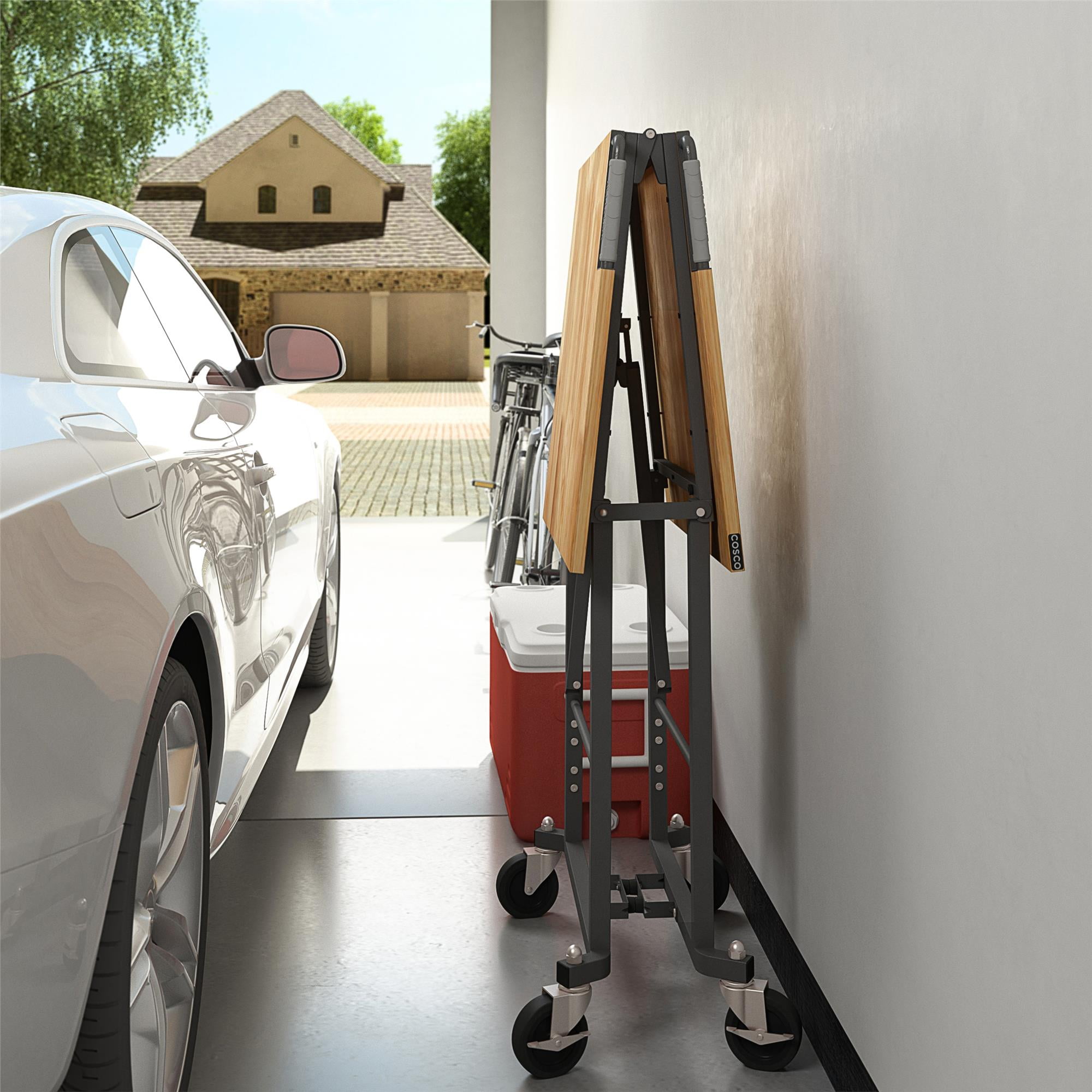 COSCO Smartfold Portable Folding Workbench, Hardwood Top (400 pound weight capacity, Dark Gray)