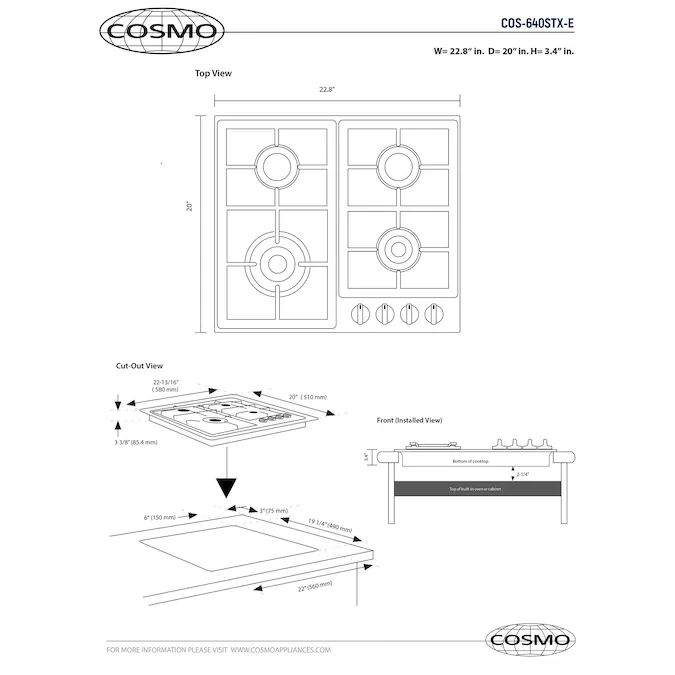 Create meals like a professional chef in your own home without worrying about space. All the power and control of a full-size cooktop is packed into this compact yet efficient 24 inch stainless steel cooktop from Cosmo appliances. The cos-640STX-E has 4 sealed burners, which allow you to cook multiple dishes at once with precise control over temperature, from a 16,000 BTU super rapid for boiling, frying or searing to a 5,000 BTU low simmer burner for delicate sauces. This drop in cooktop also delivers advanced safety features such as electronic ignition for maximum protection and worry-free operation.
