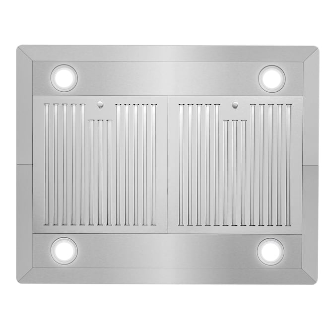 - Stainless steel range hood equipped with four energy efficient LED cooktop lights for your convenience and a 2 year limited warranty
